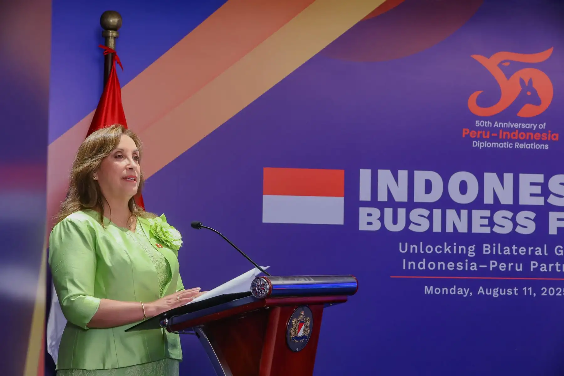 10/08/2025 Presidenta Dina Boluarte participa en el Foro de negocios Perú - Indonesia “Unlocking Bilateral Growth: Strengthening Indonesia-Peru Partnership through CEPA”.