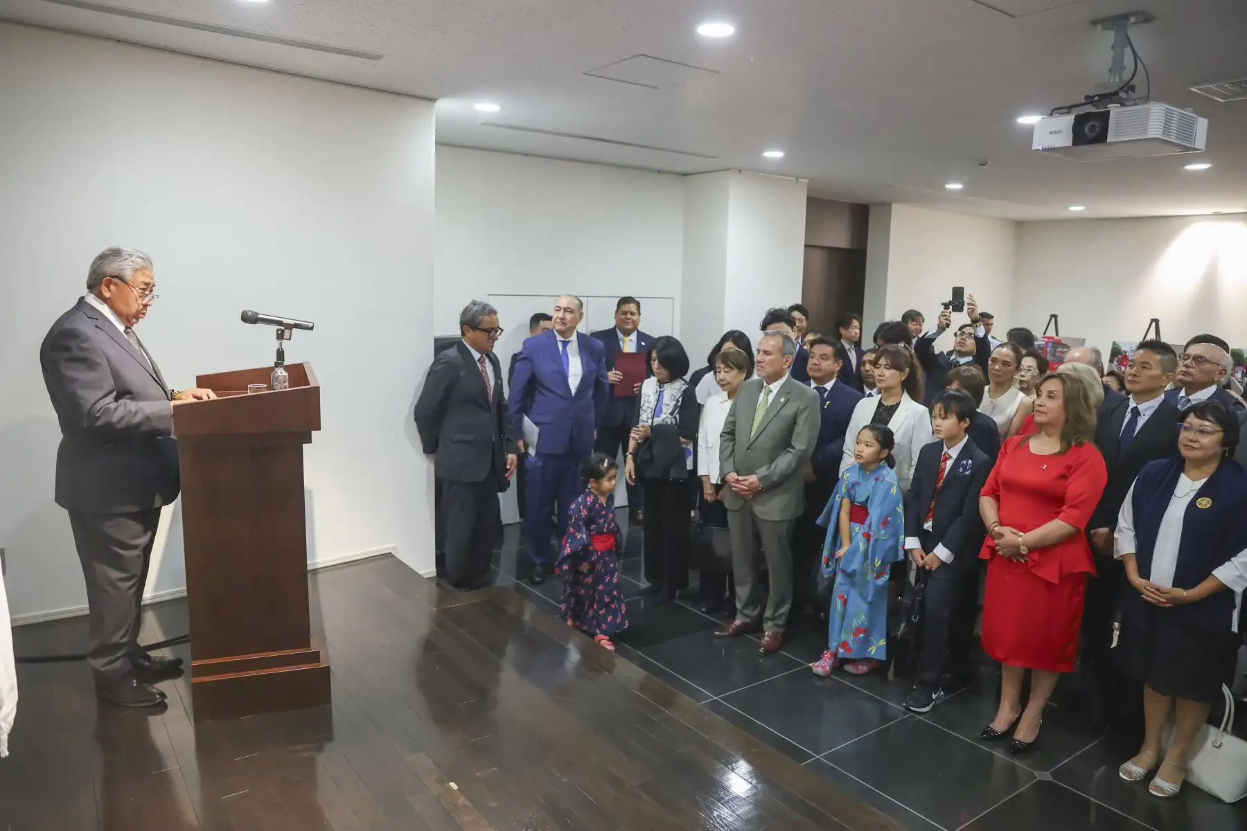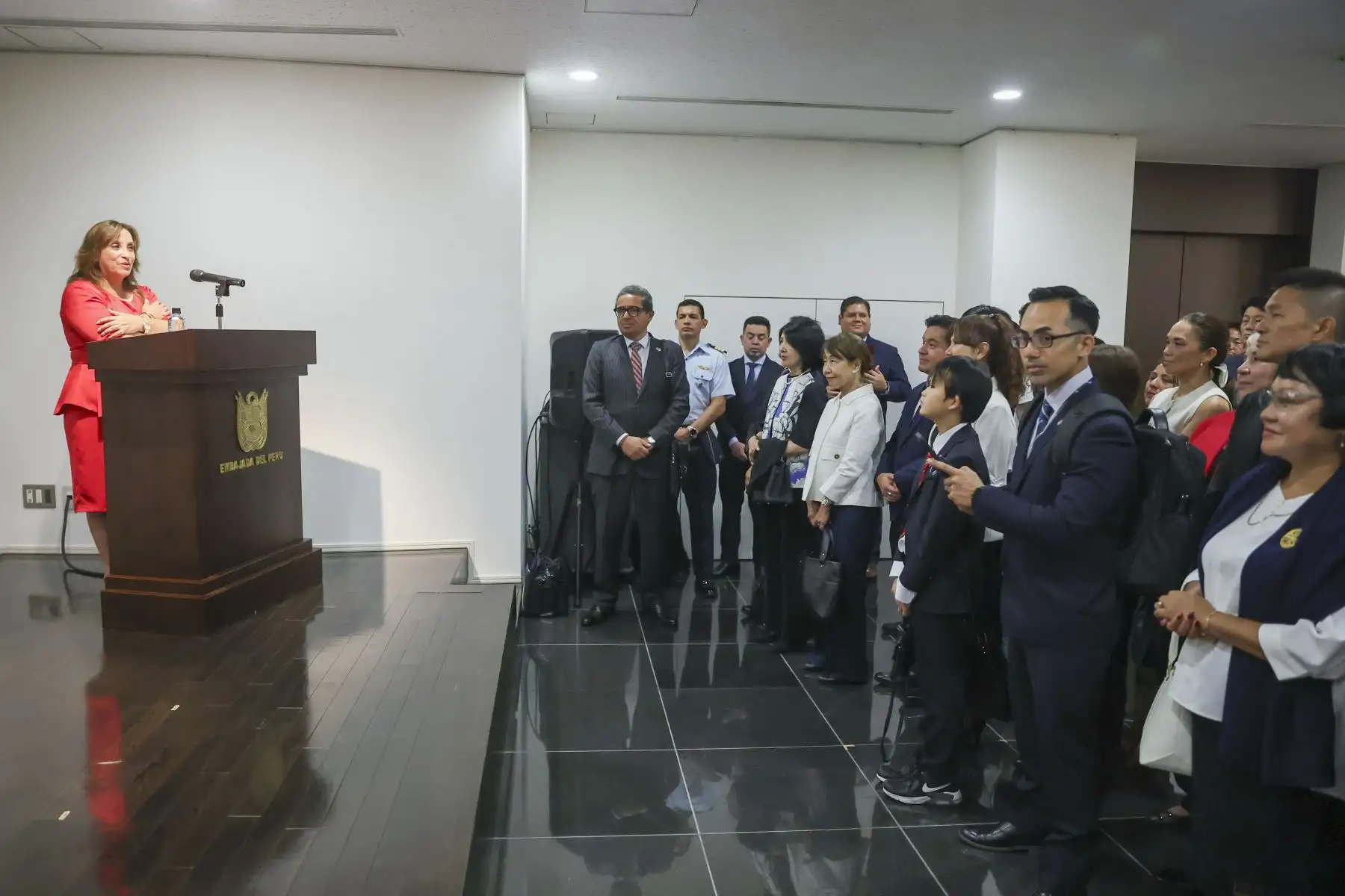 06/08/2025 La presidenta de la República, Dina Ercilia Boluarte Zegarra, tuvo un encuentro oficial con la comunidad peruana residente en Japón, el cual se realizó en la Embajada del Perú en Tokio. Foto: ANDINA/Presidencia