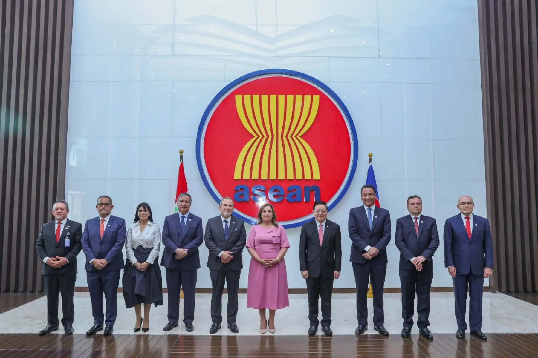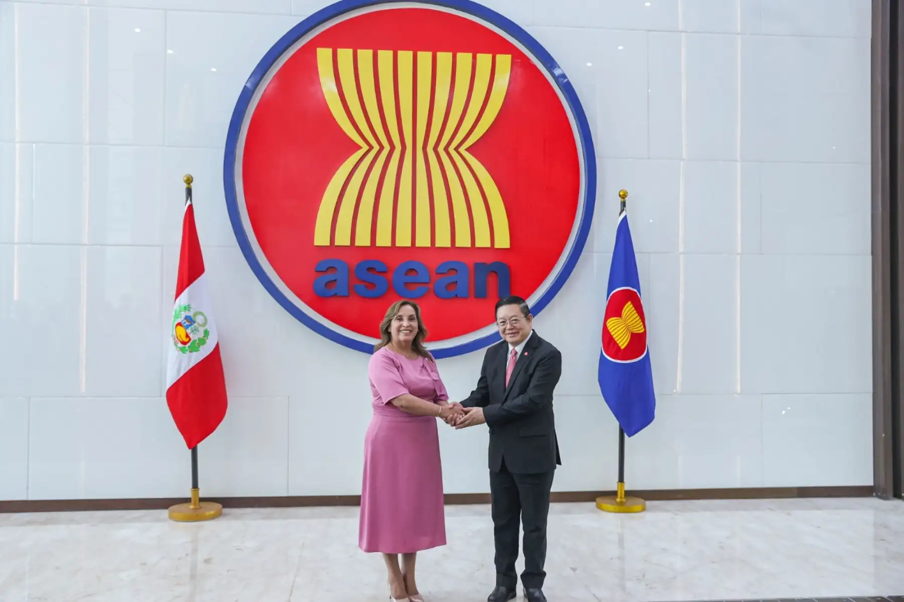 11/08/2025 La presidenta de la república, Dina Boluarte, se reunió con el secretario general de la Asociación de Naciones del Sudeste Asiático (ASEAN), Kao Kim Hourn, donde resaltó la importancia que representa para nuestra nación ser considerados como socios cooperantes de la organización intergubernamental, promover la posición de nuestro país como un destino seguro para las inversiones y el desarrollo de la región. Foto: ANDINA/ Prensa Presidencia