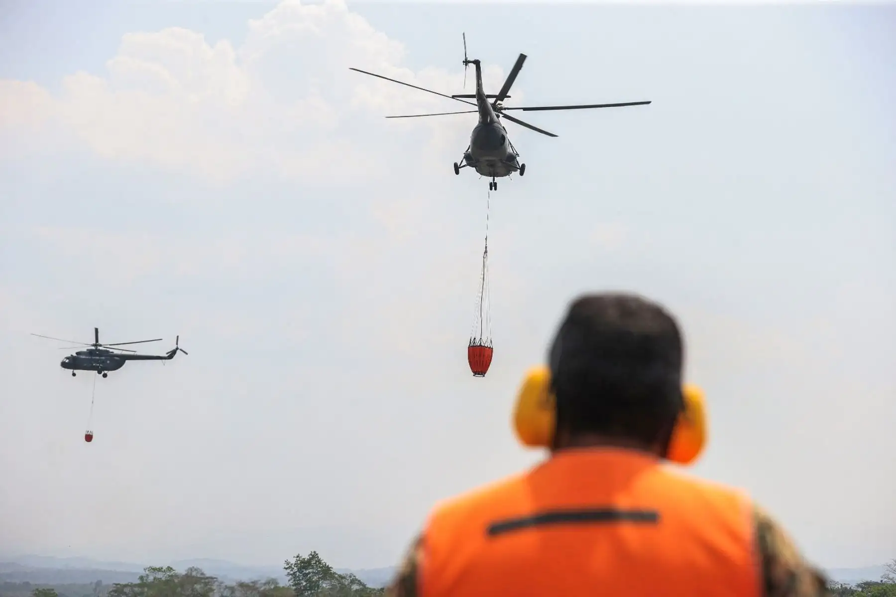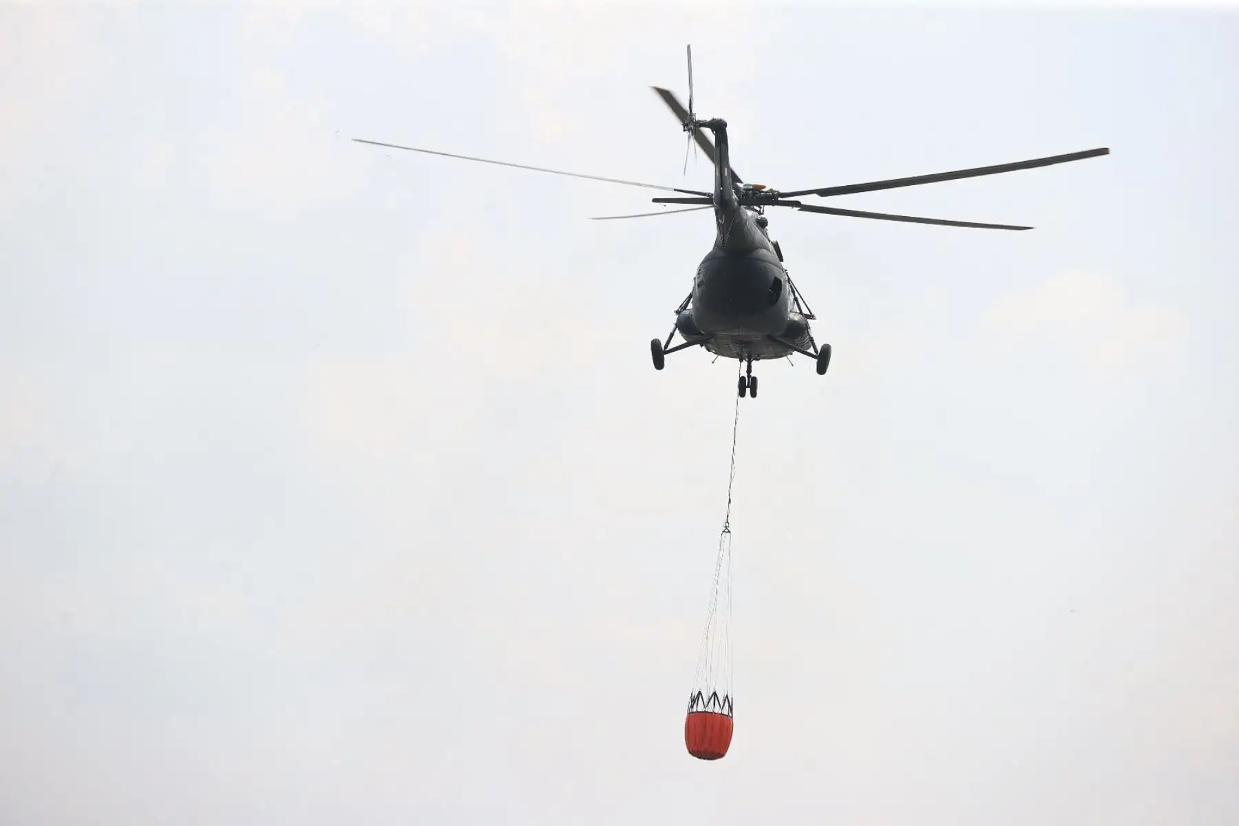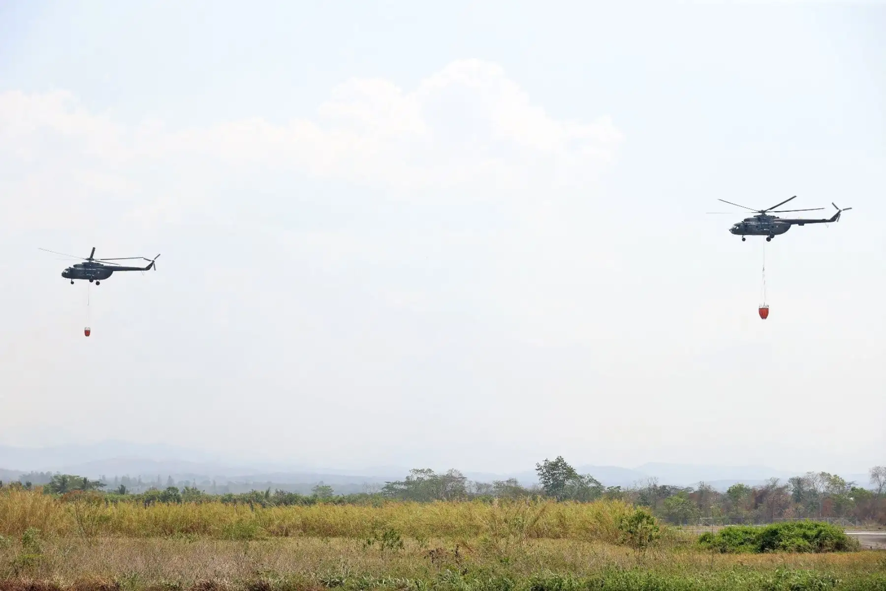 19/09/2024 Presidenta Dina Boluarte, supervisa el despliegue de aeronaves que utilizan el sistema Bambi Bucket que irán inmediatamente a sofocar los incendios de los distritos afectados en la zona. Foto: ANDINA/ Prensa Presidencia