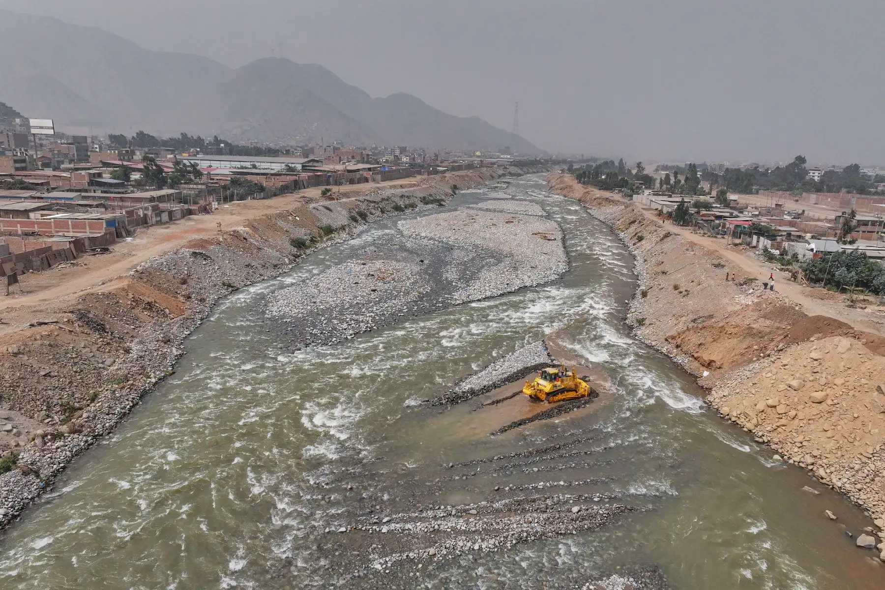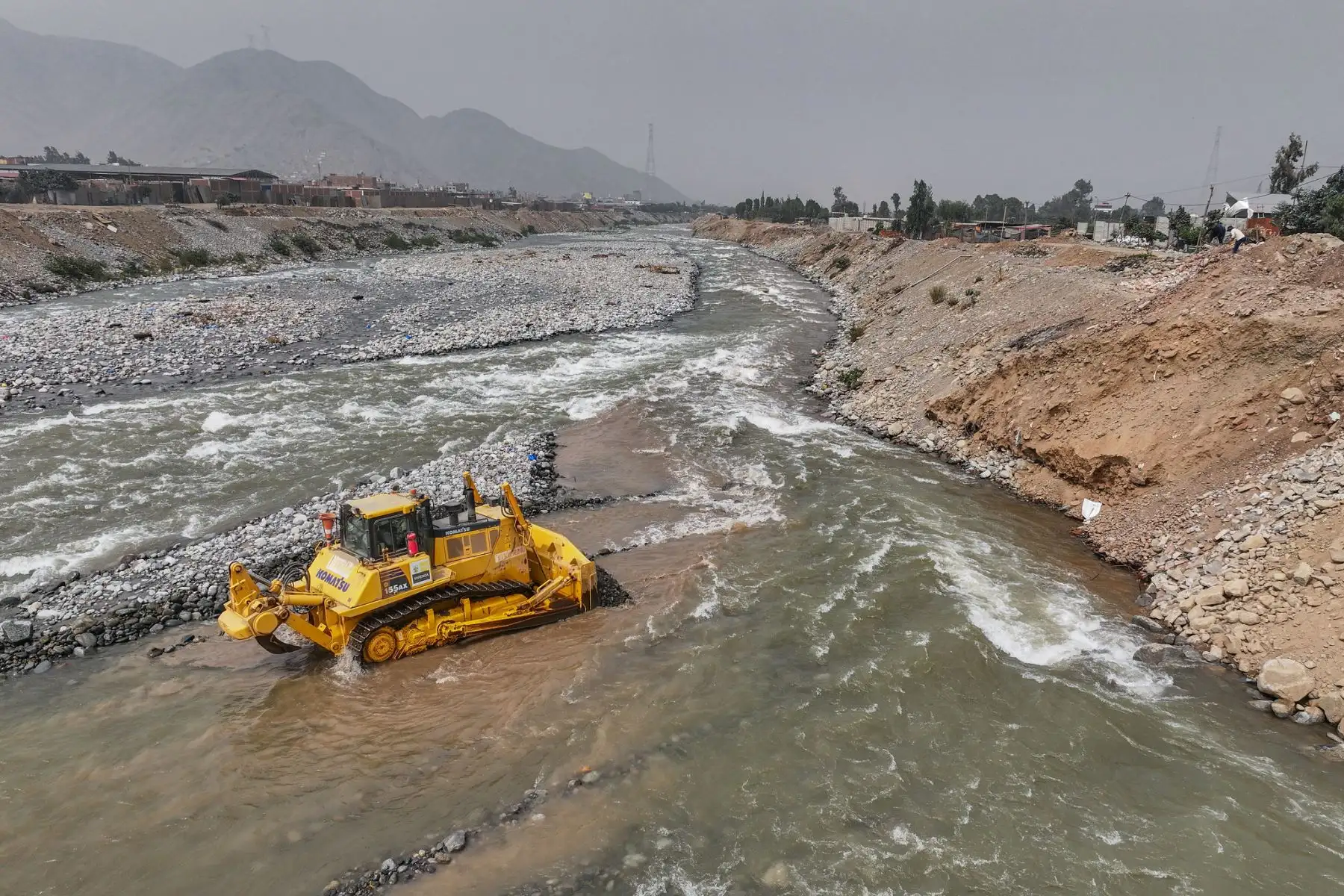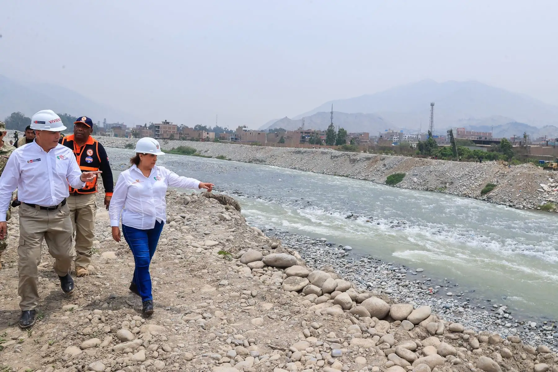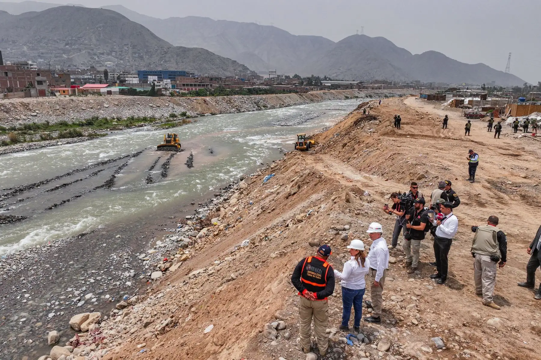Presidenta Dina Boluarte supervisa limpieza y descolmatación de riberas del río Rímac en Carapongo