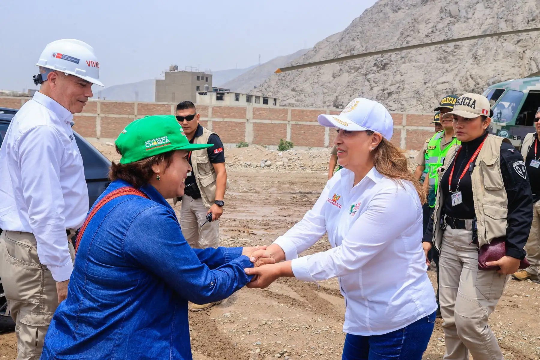 09/01/2025 La presidenta de la república, Dina Boluarte, supervisa esta mañana los trabajos de limpieza y descolmatación de la ribera del río Rímac en la zona de Carapongo (Lurigancho - Chosica), como parte de las acciones que realiza el Gobierno para prevenir emergencias ante el incremento de las lluvias. Foto: ANDINA/Prensa Presidencia