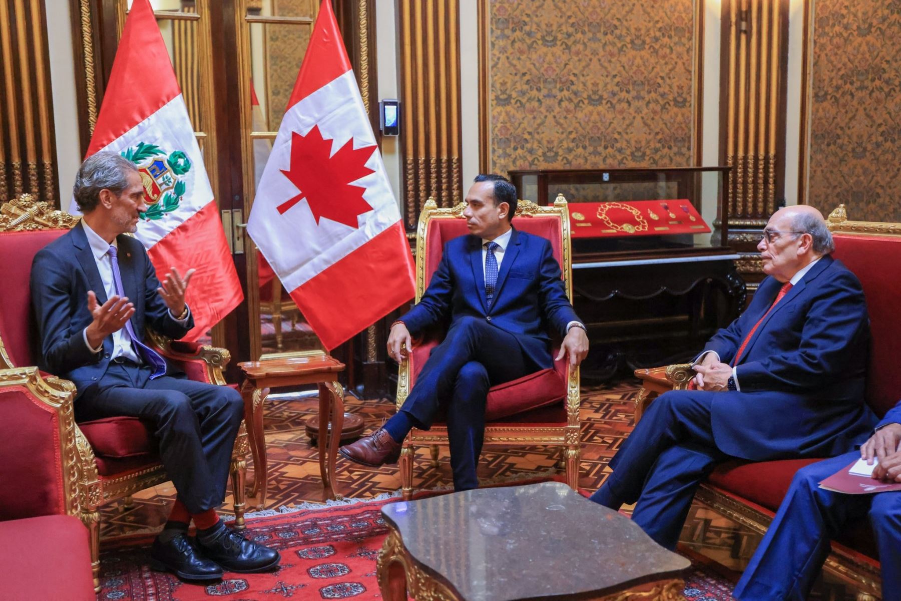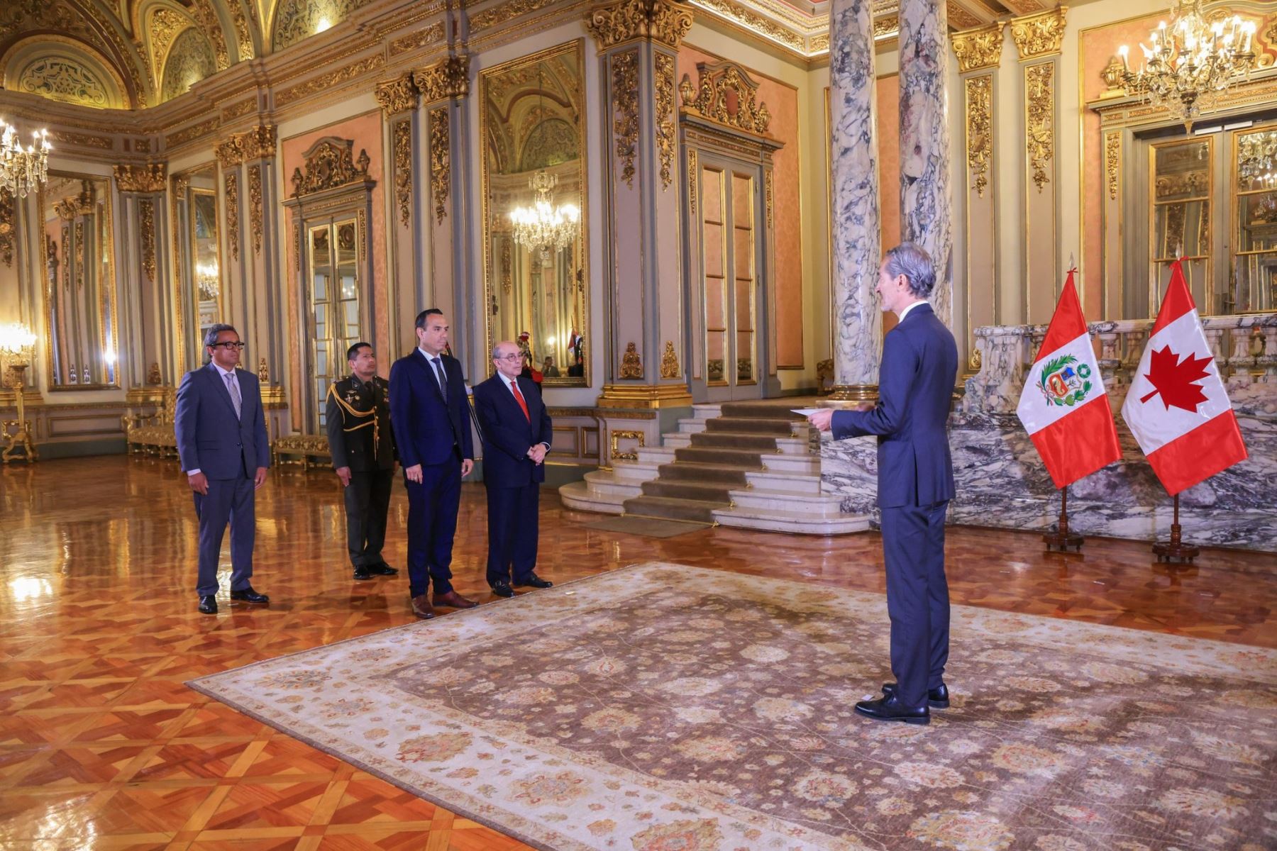 17/11/2025 El presidente de la república, José Jerí Oré, recibió esta tarde las cartas credenciales del embajador de Canadá, Jean-Dominique Ieraci. La actividad, realizada en Palacio de Gobierno, contó con la presencia del canciller Hugo de Zela. Foto: ANDINA/Prensa Presidencia
