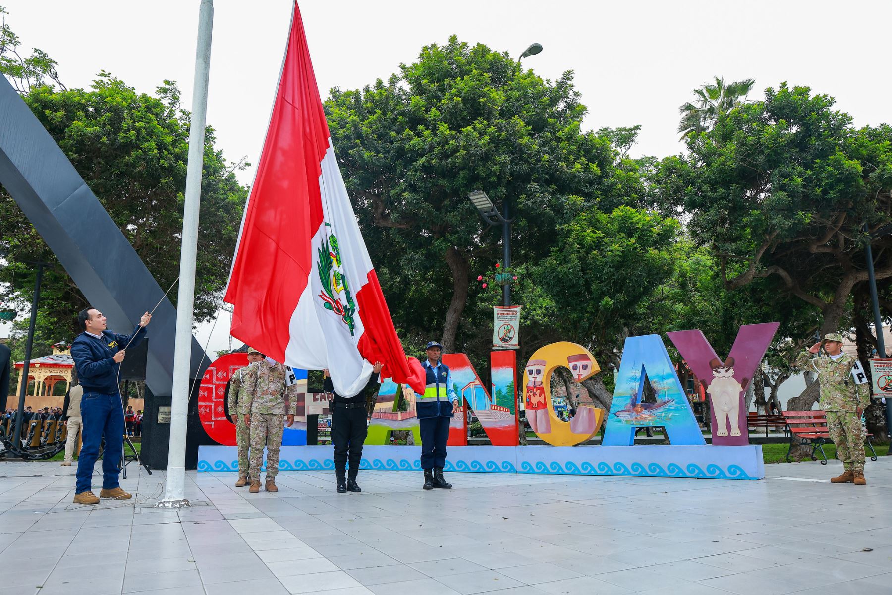 Presidente de la república participa en el izamiento del Pabellón Nacional en la Plaza de Armas de Chancay