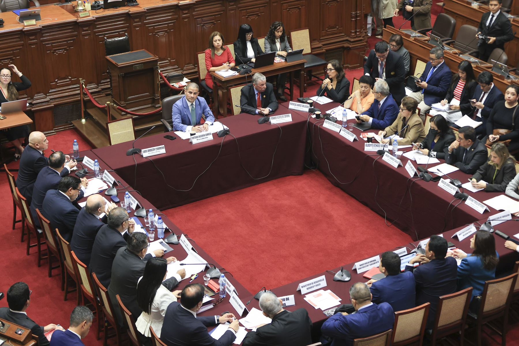 El presidente del Consejo de Ministros, Ernesto Álvarez, sustenta ante la Comisión de Constitución del Congreso el pedido de facultades al Ejecutivo para legislar en materia de seguridad ciudadana.