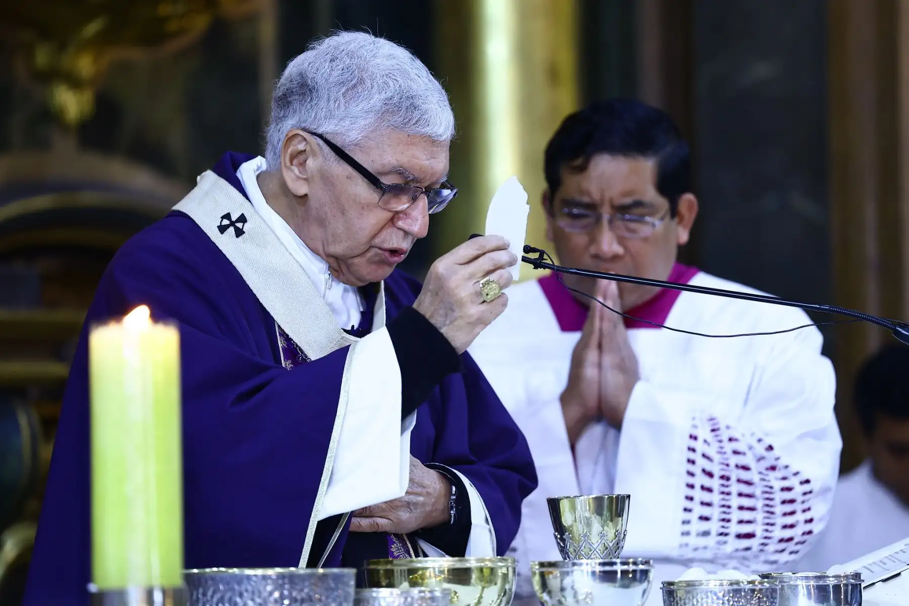 05/10/2025 Presidente del Consejo de Ministros, presidente del Congreso y autoridades participan de misa en honor a la sagrada imagen del Señor de los Milagros.