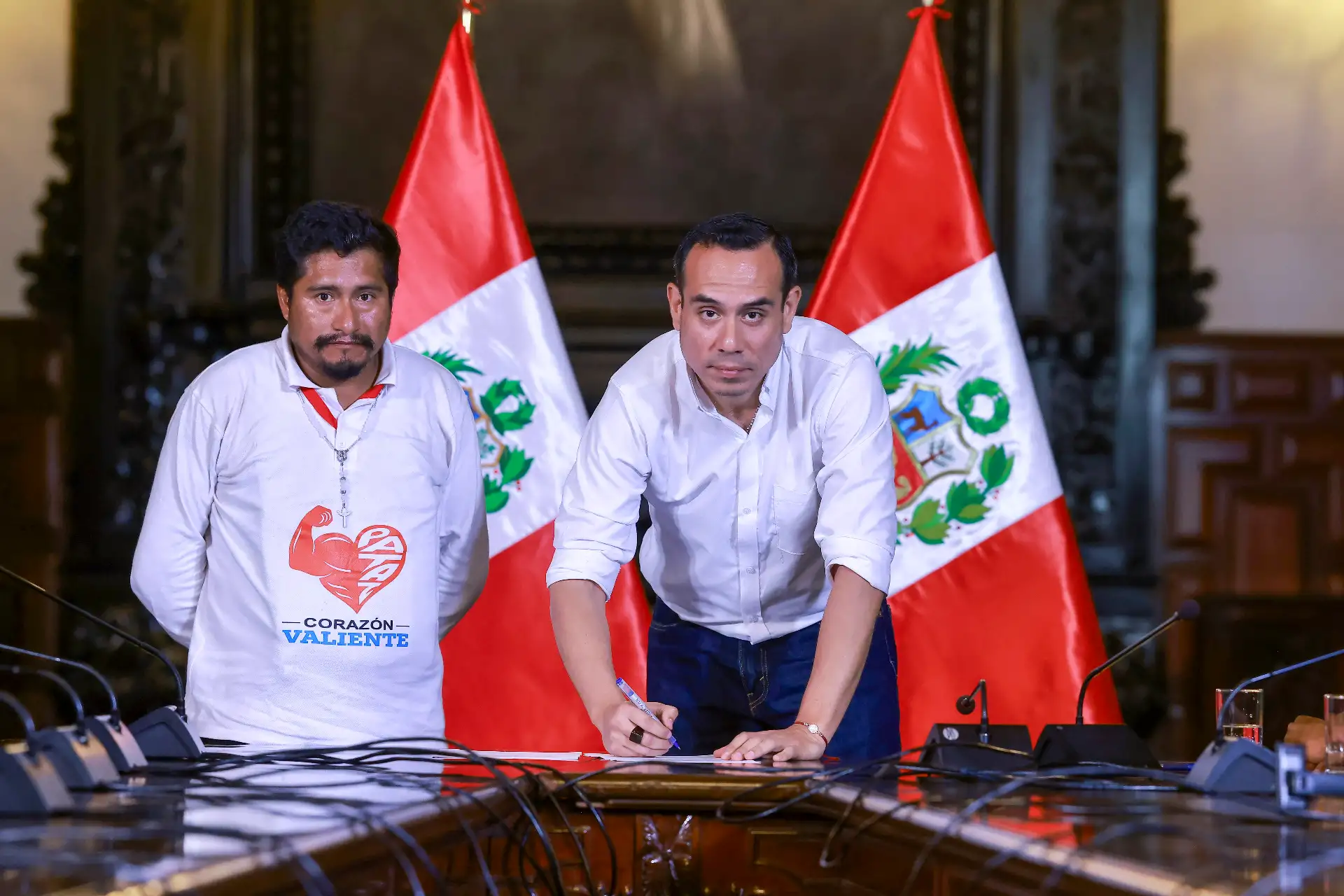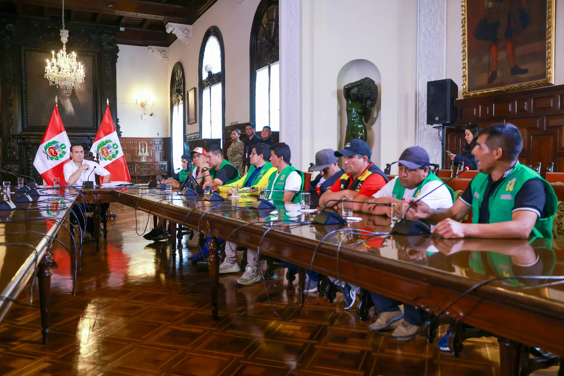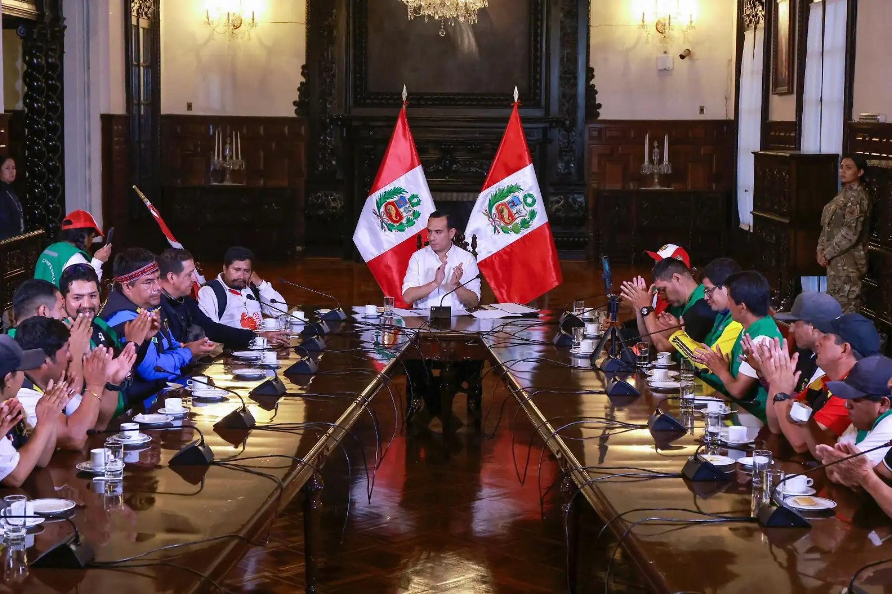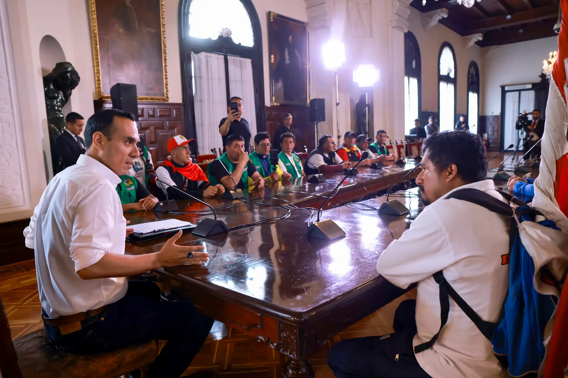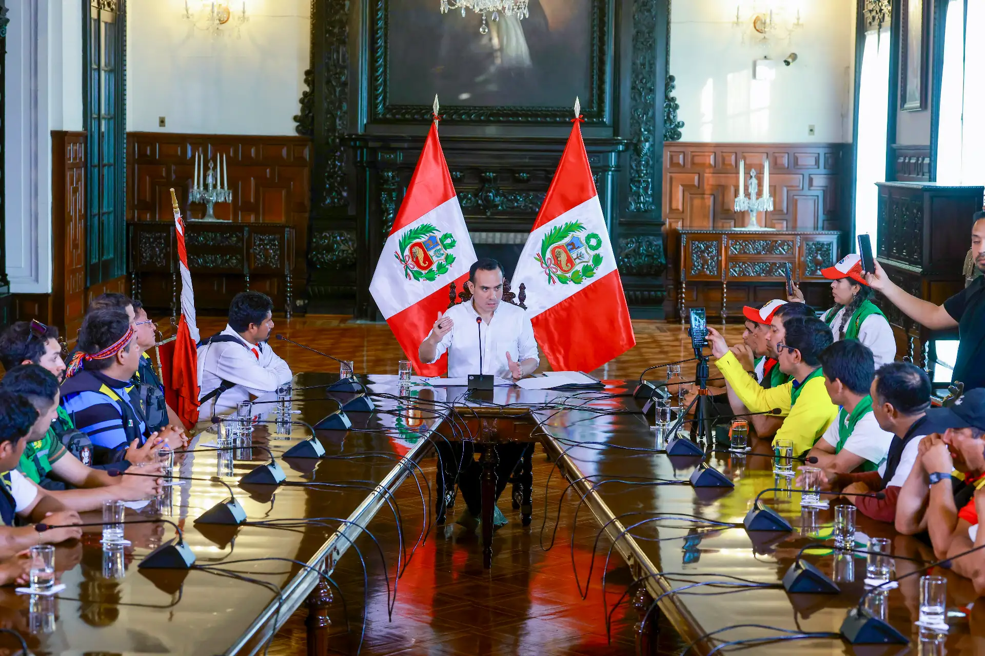 12/10/2025 Comprometido con el diálogo y la seguridad, el presidente de la República del Perú, José Jerí Oré, se reunió en Palacio de Gobierno con el alcalde provincial de Pataz, región La Libertad, y representantes de las rondas campesinas, para escuchar sus demandas y seguir acercando el Estado a la población.