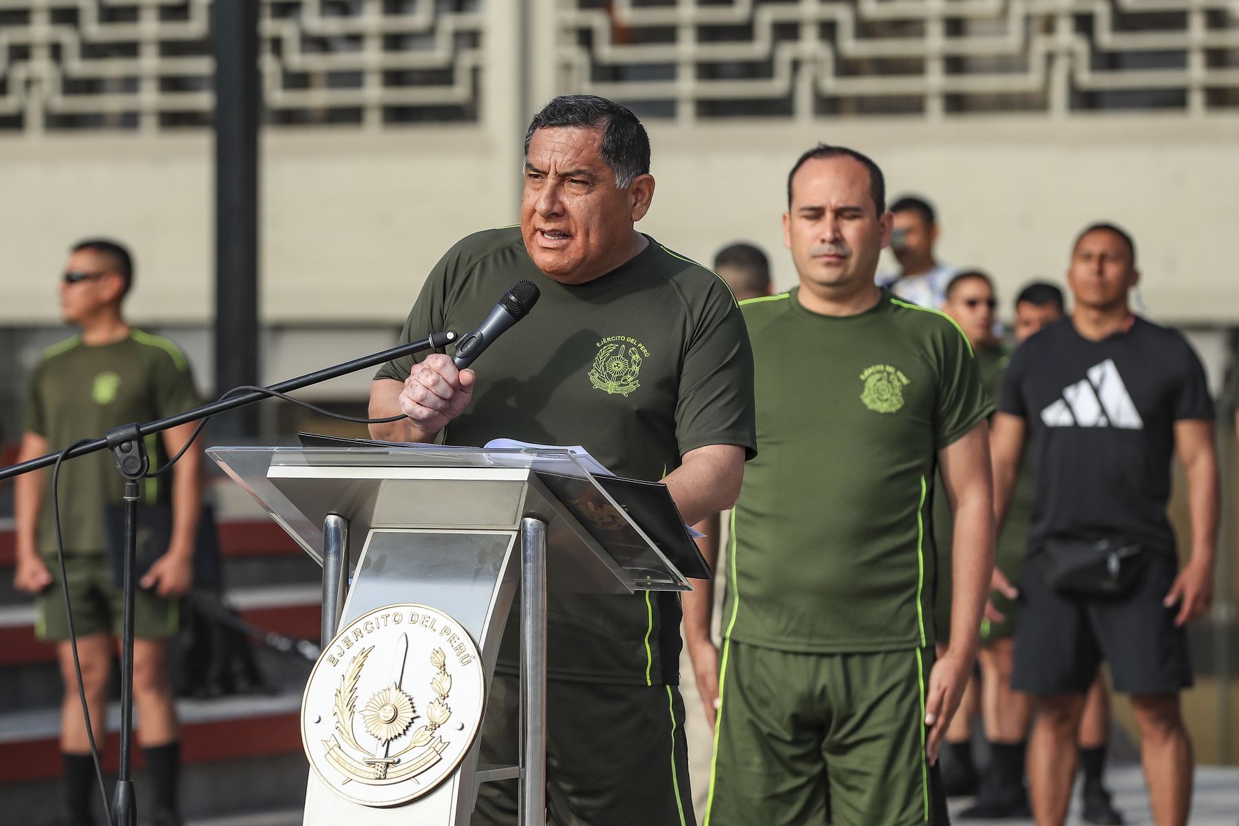 30/11/2025 EL presidente de la república, José Jerí, participó en la carrera de confraternidad 4K por el Día del Ejército del Perú, donde se vivió una jornada de honor, disciplina y espíritu deportivo junto con los comandantes generales y personal militar, en el marco de las celebraciones institucionales Foto: ANDINA/Prensa Presidencia