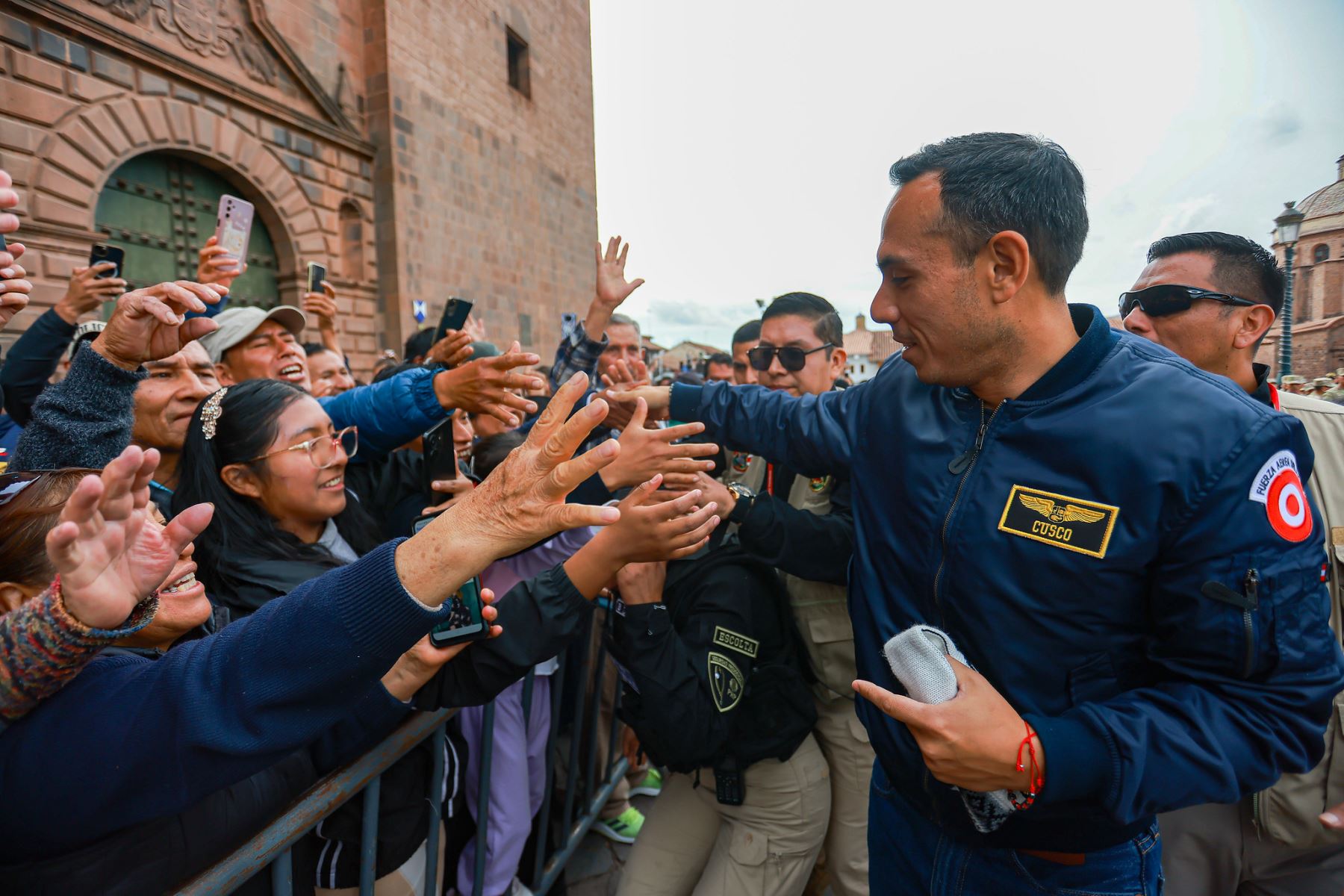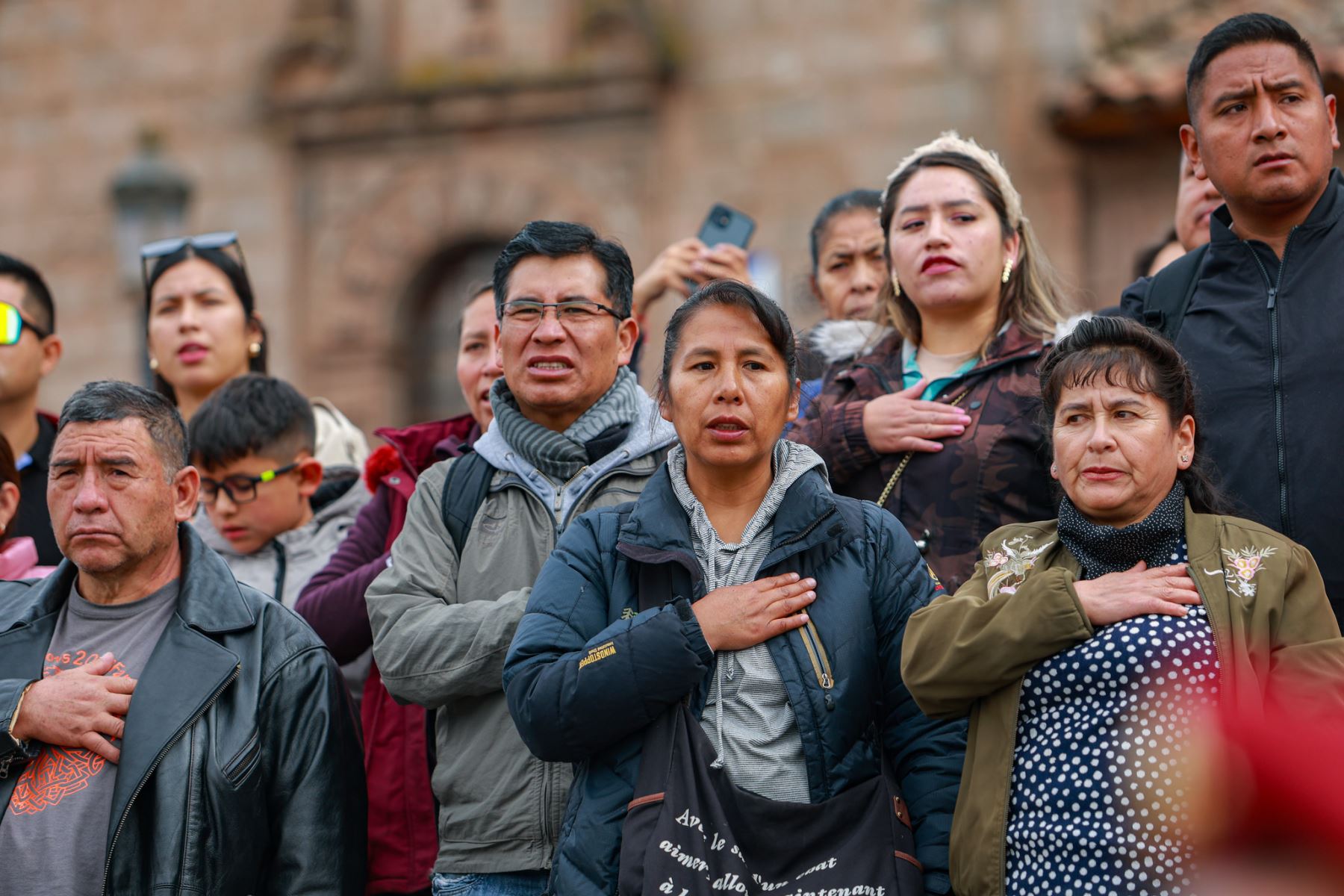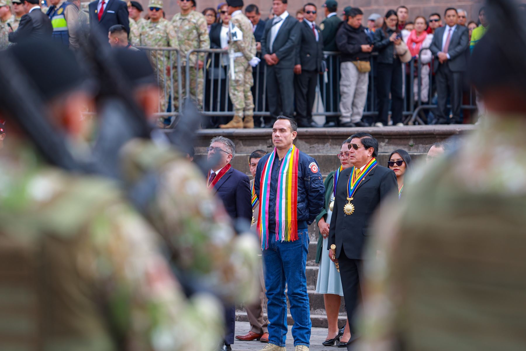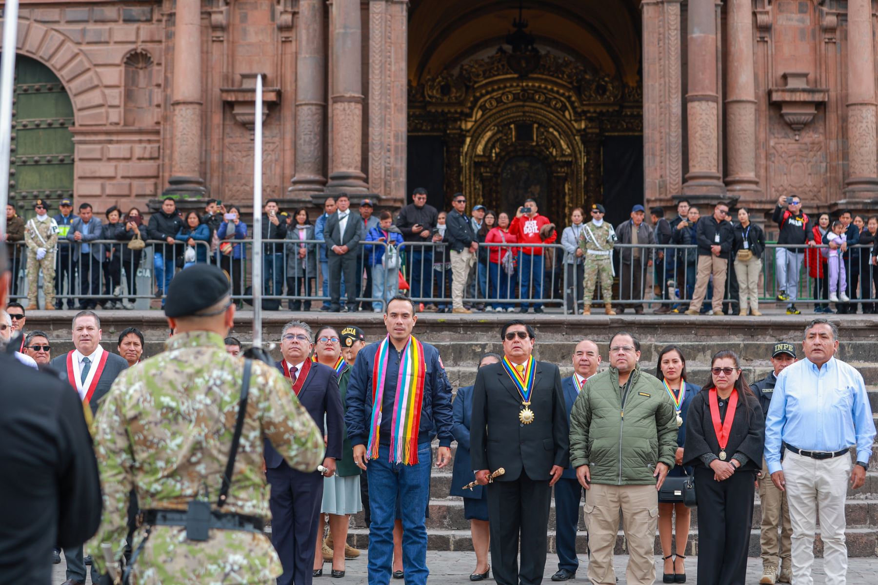 14/12/2025 El Presidente del Perú, José Jerí, participó en la ceremonia de izamiento del Pabellón Nacional en la Plaza de Armas del Cusco, junto al gobernador regional, Werner Salcedo. Esta actividad reafirma el compromiso del Gobierno con la identidad nacional y el trabajo articulado con las autoridades regionales. Foto: Presidencia