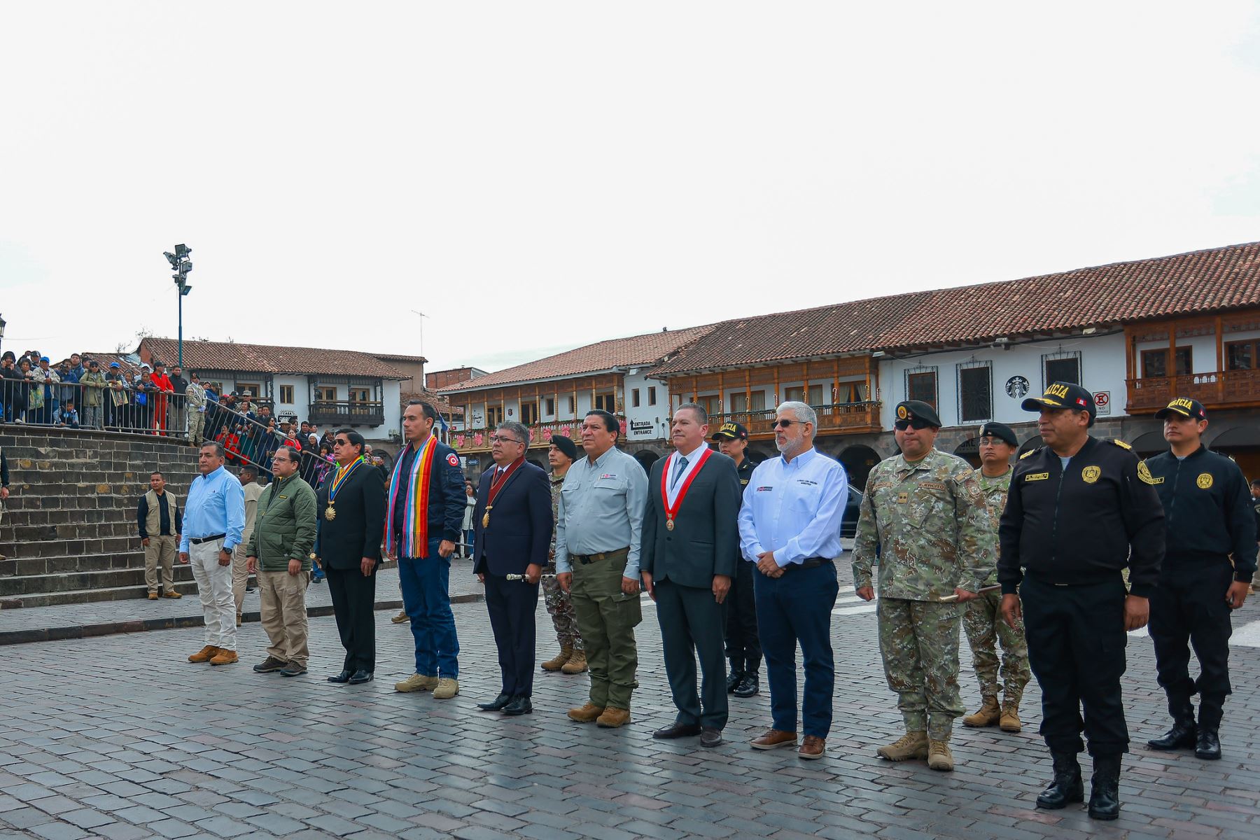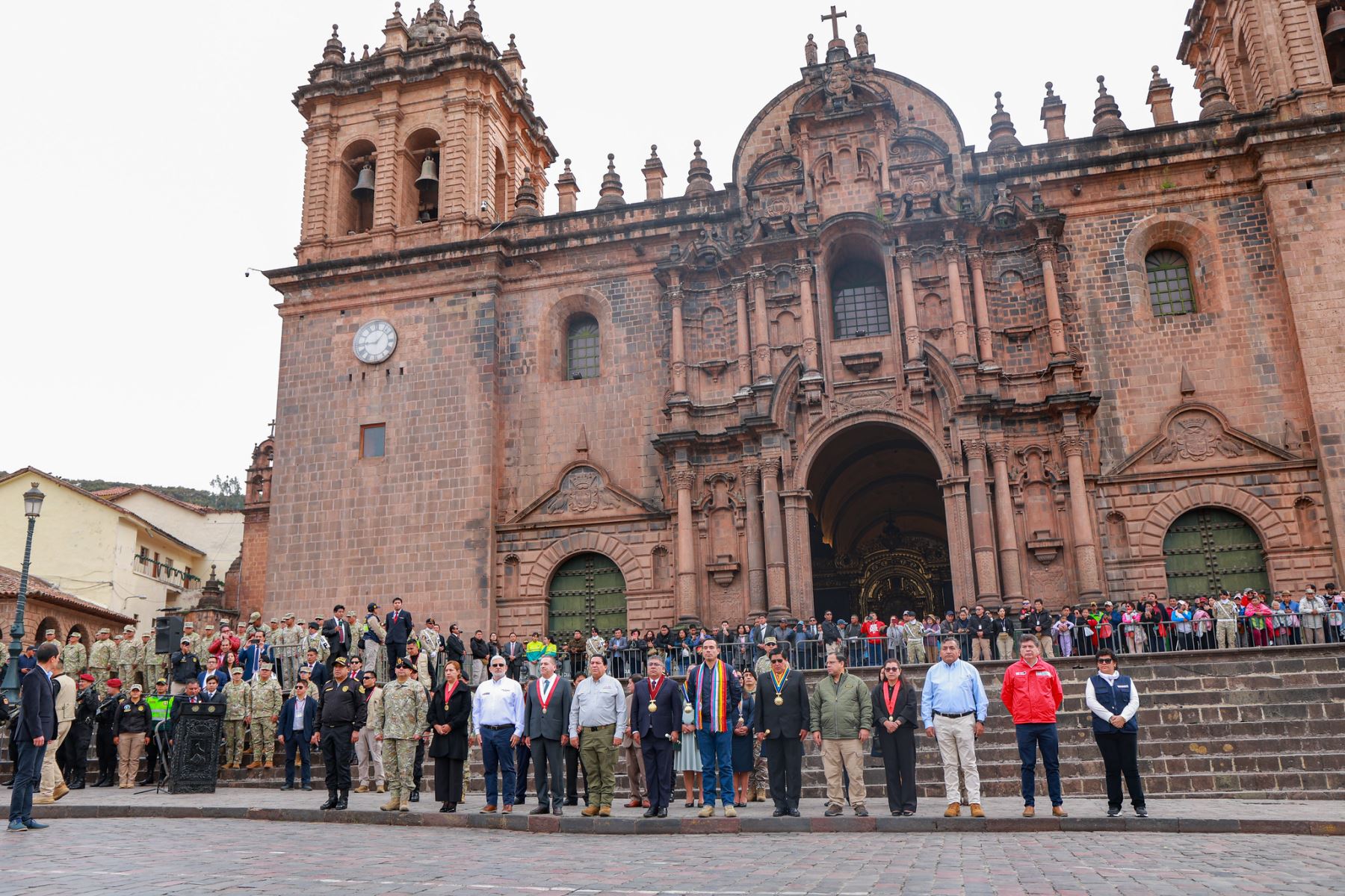Presidente Jerí participó en la ceremonia de izamiento del Pabellón Nacional en la Plaza de Armas del Cusco