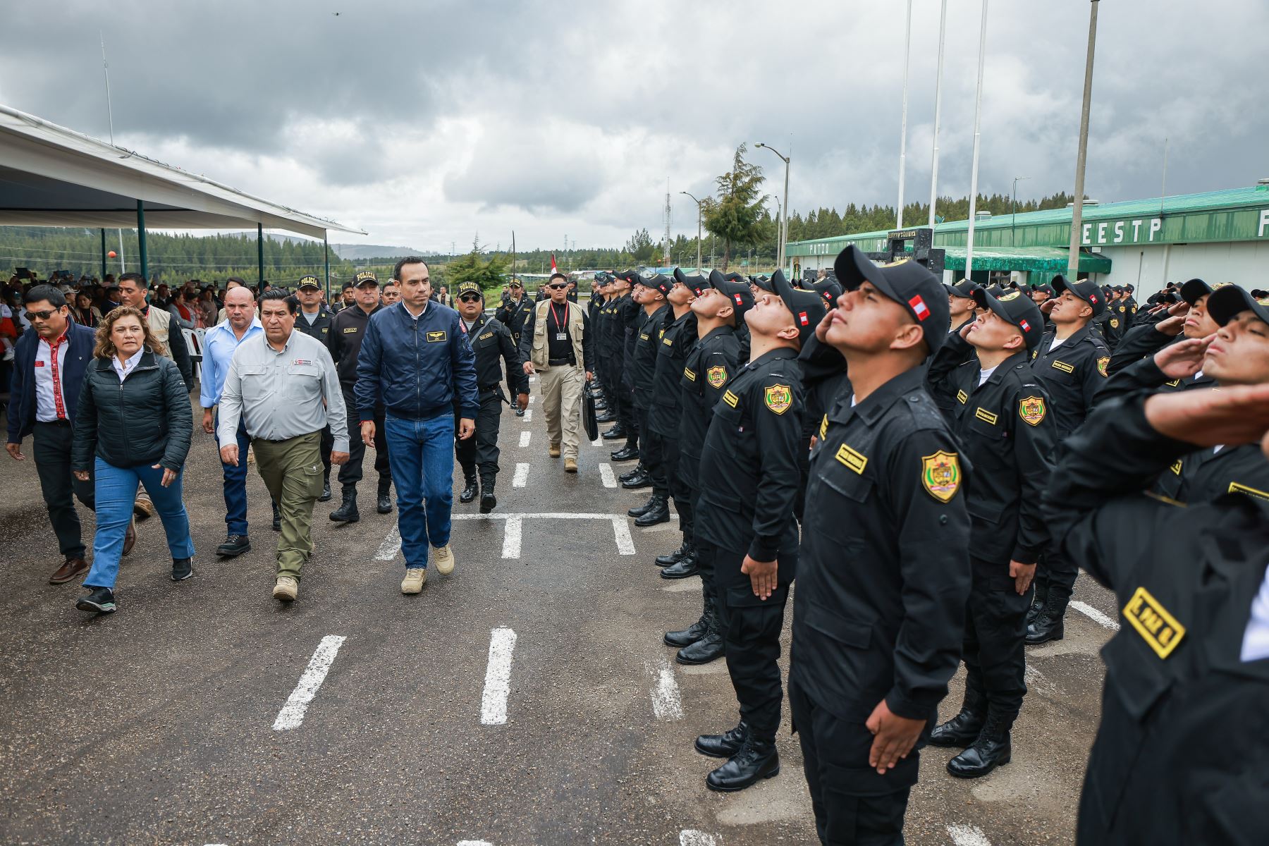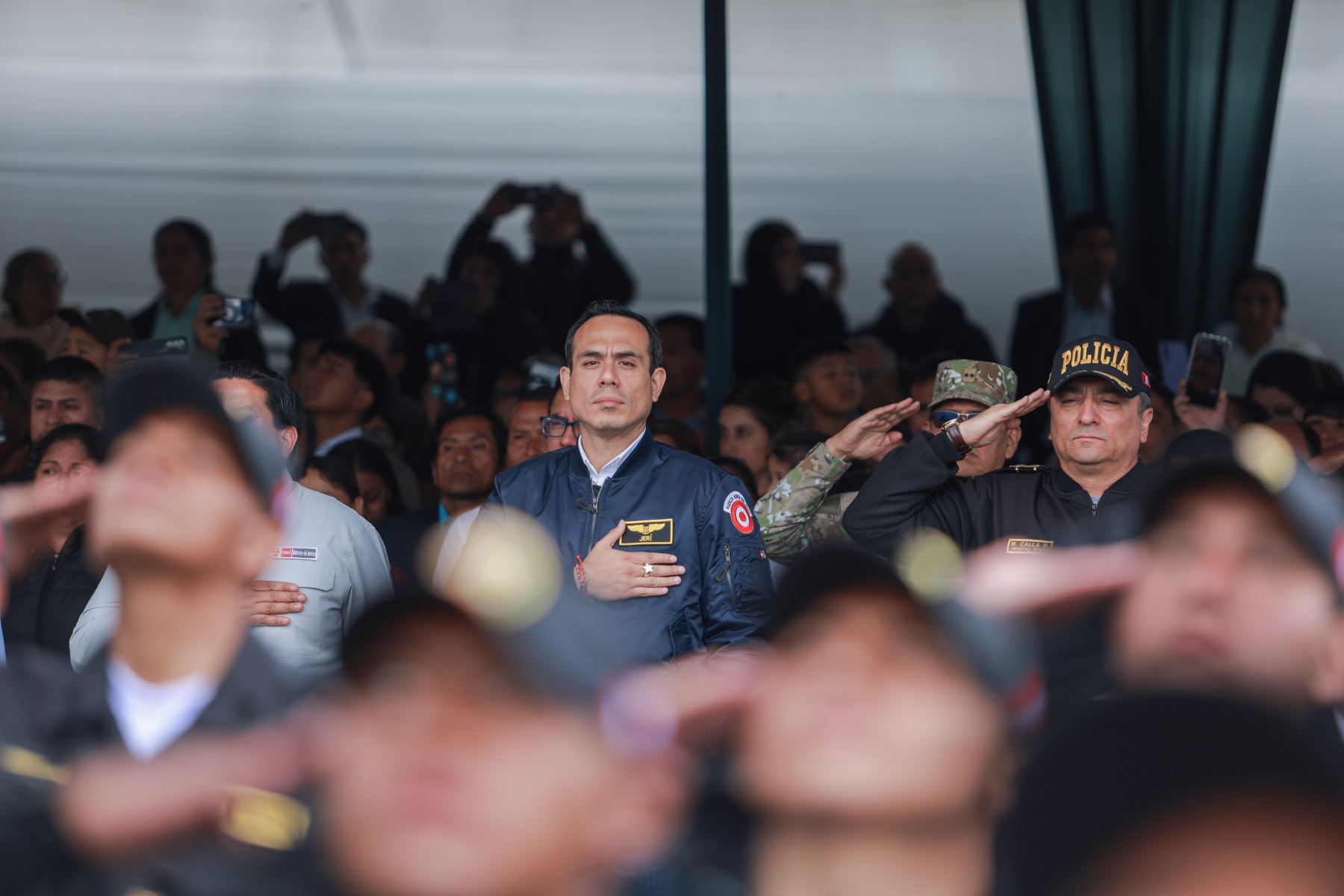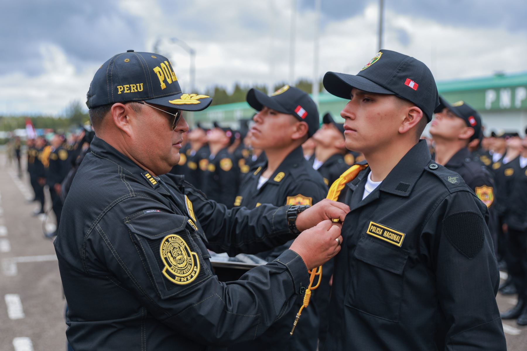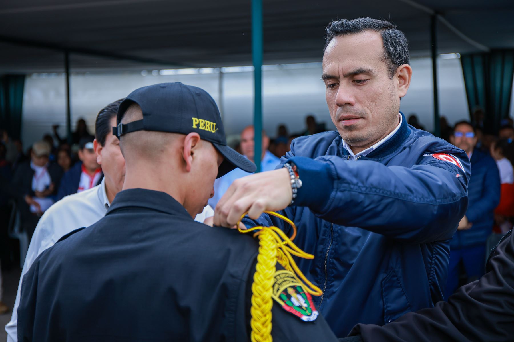 22/11/2025 El presidente de la república, José Jerí, encabezó la ceremonia de imposición de distintivos e insignias de mando a los alumnos de la promoción Justicieros 2025-I de la Escuela de Educación Superior Técnico Profesional PNP Cajamarca. Foto: ANDINA/Prensa Presidencia
