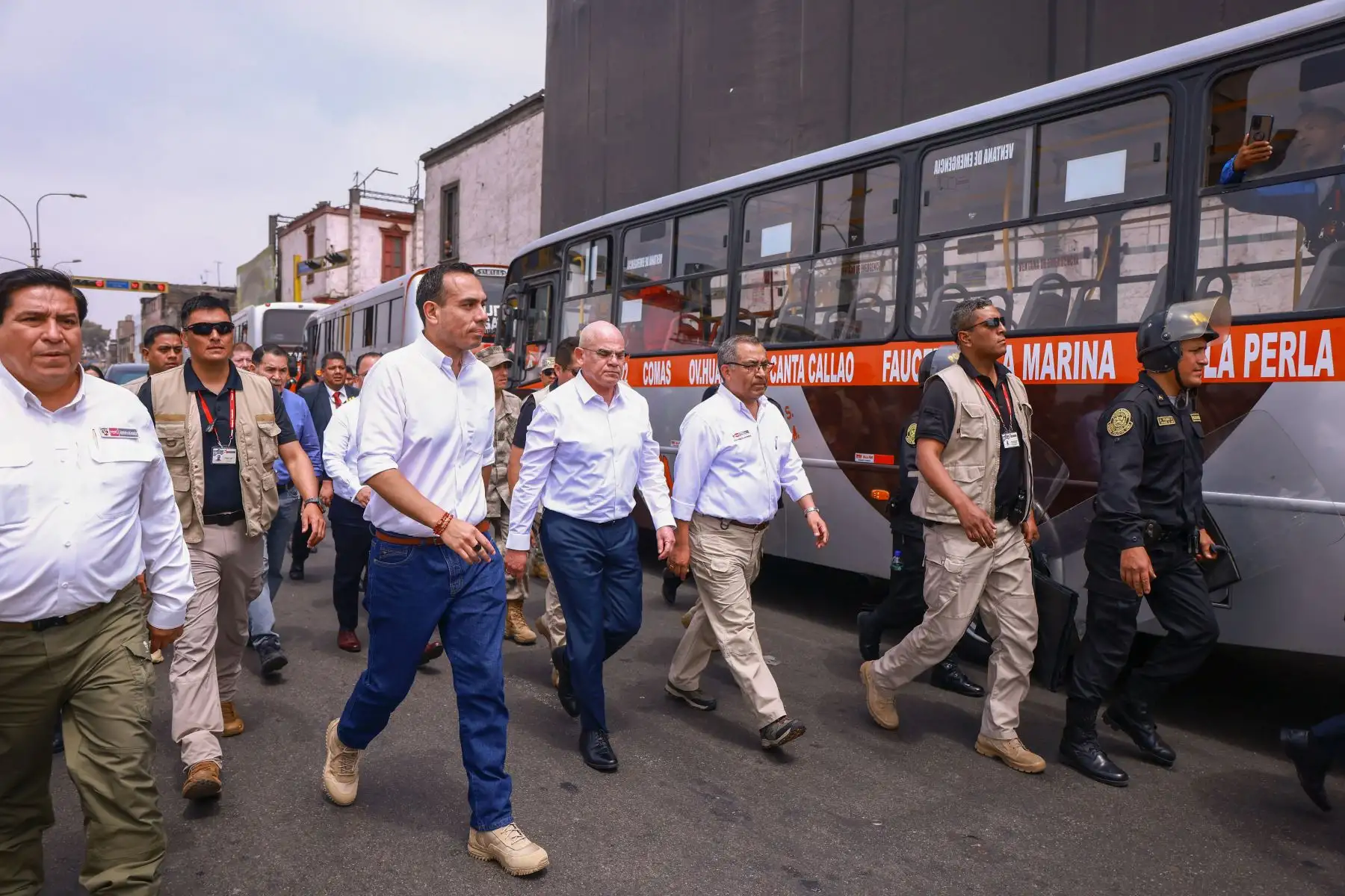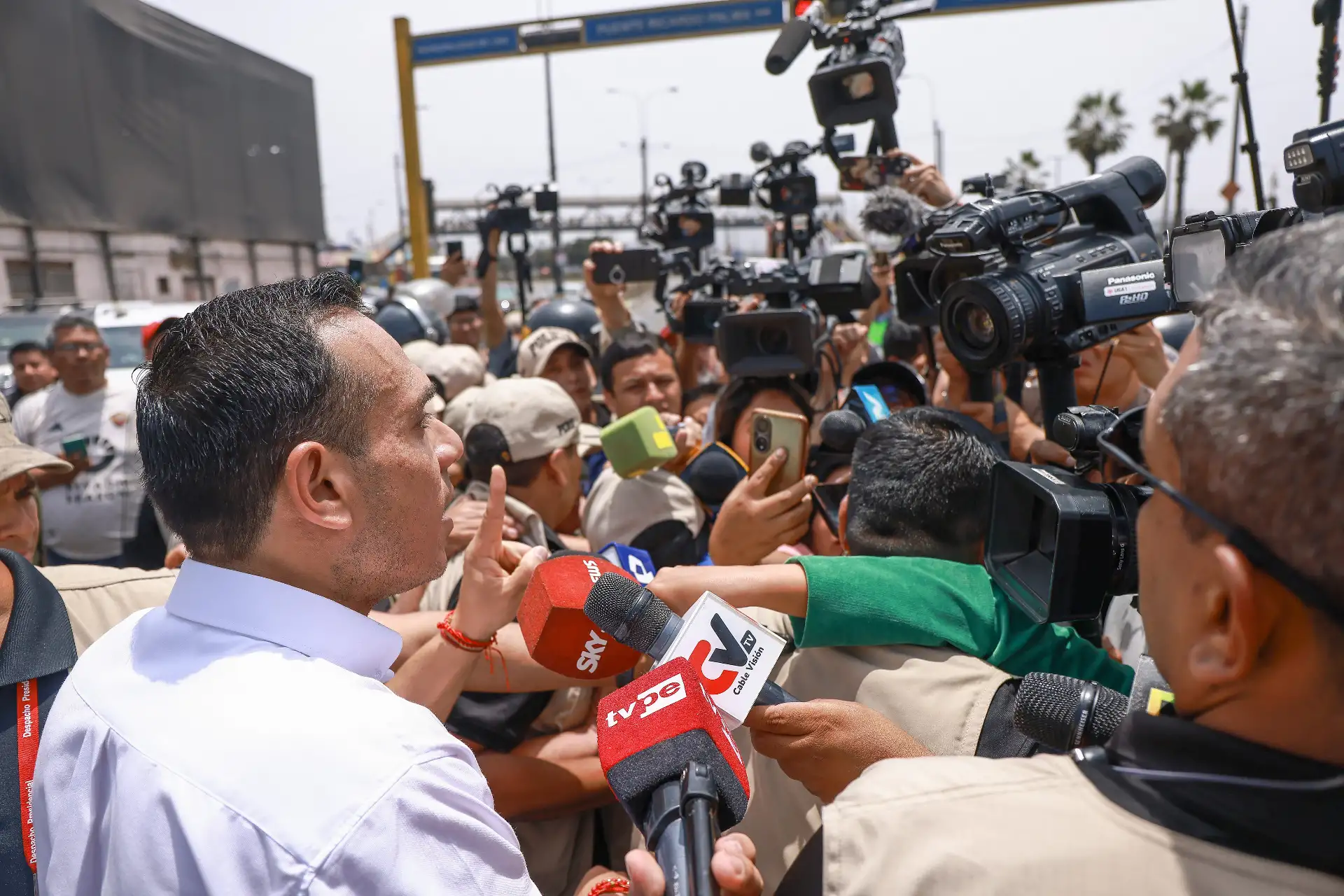 04/11/2025 El presidente José Jerí se acercó a dialogar con un sector del transportistas que acata una paralización en protesta por las extorsiones. Foto: ANDINA/ Prensa Presidencia