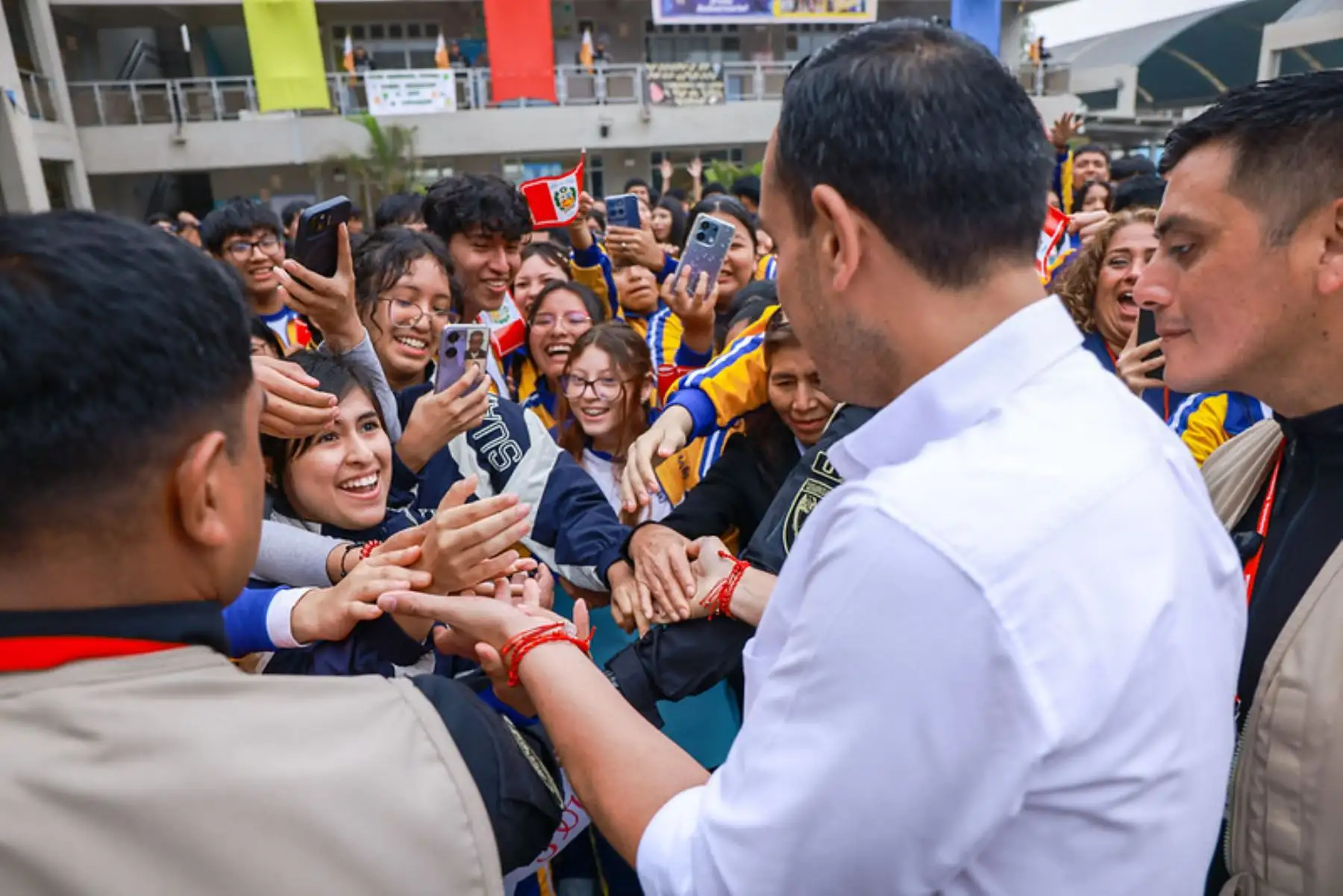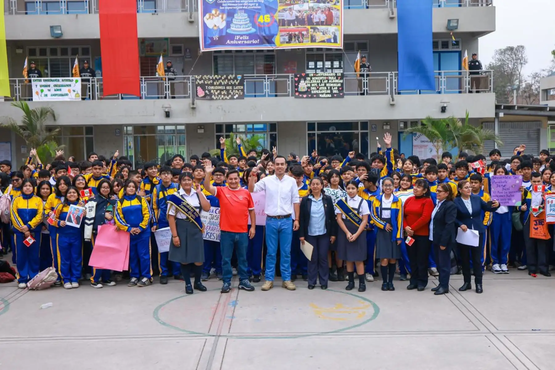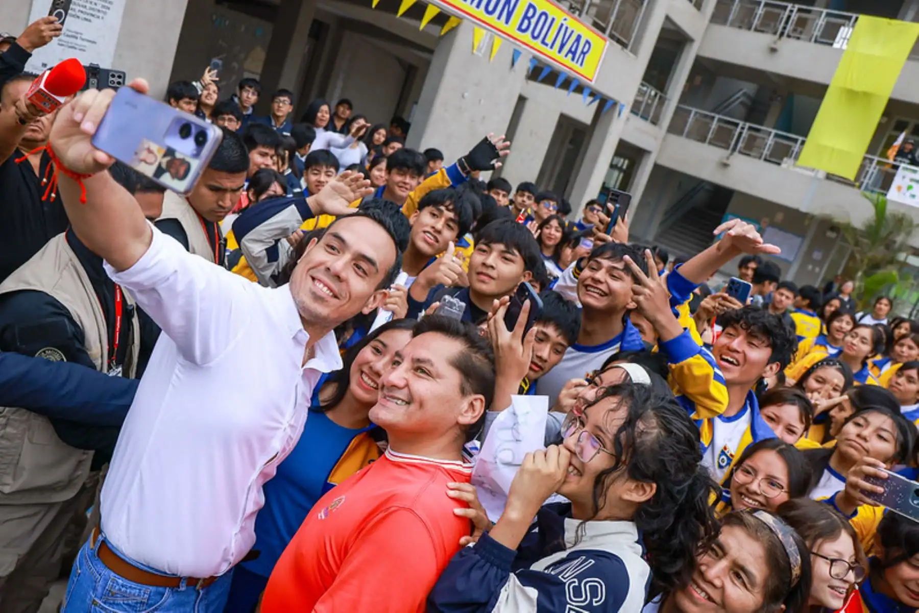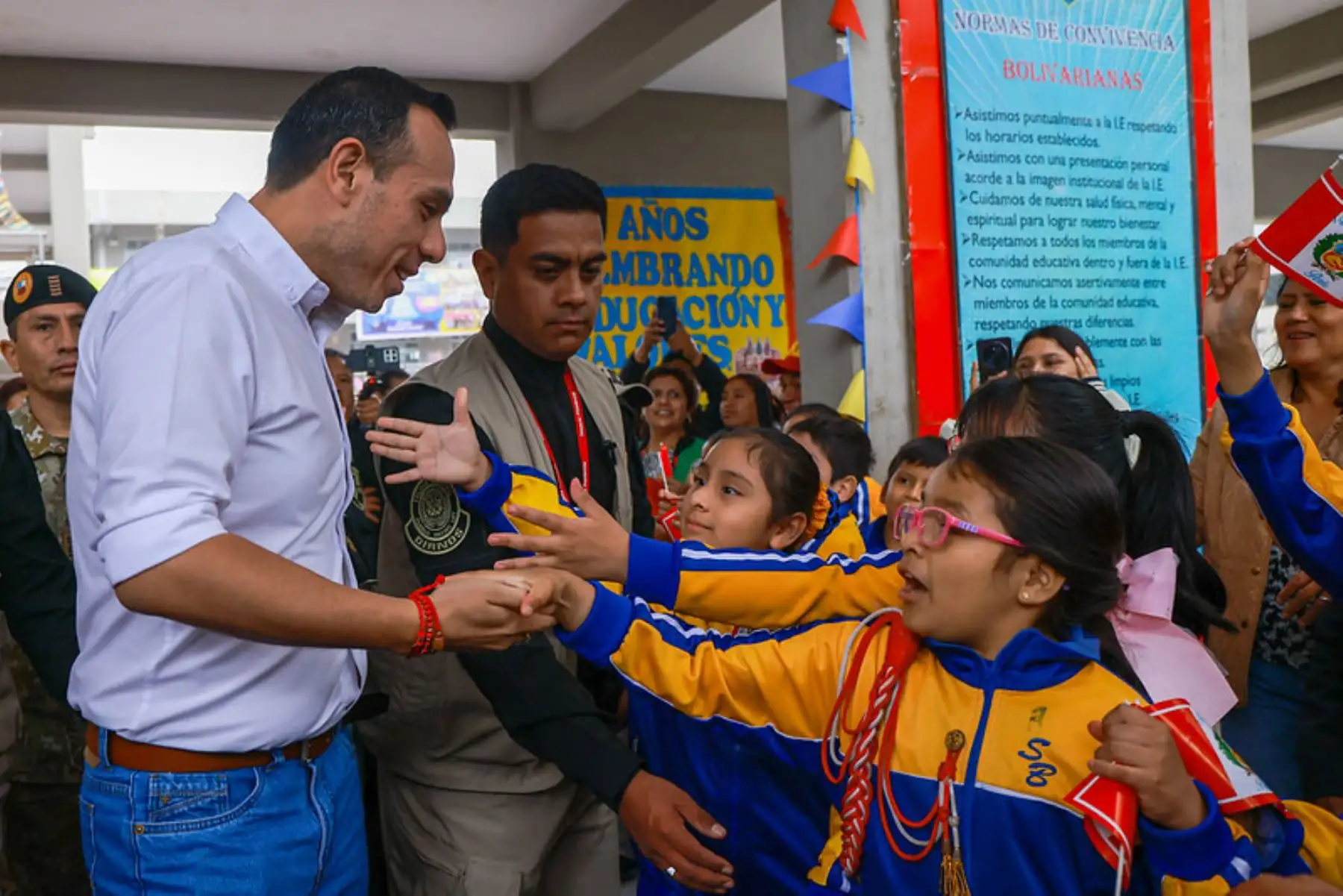 El presidente de la república, José Jerí Oré, participó en el izamiento de bandera y entonación de himno nacional en la I. E. 2026 Simón Bolívar en Comas, en el marco de las nuevas disposiciones por el estado de emergencia. Foto: ANDINA/Prensa Presidencia