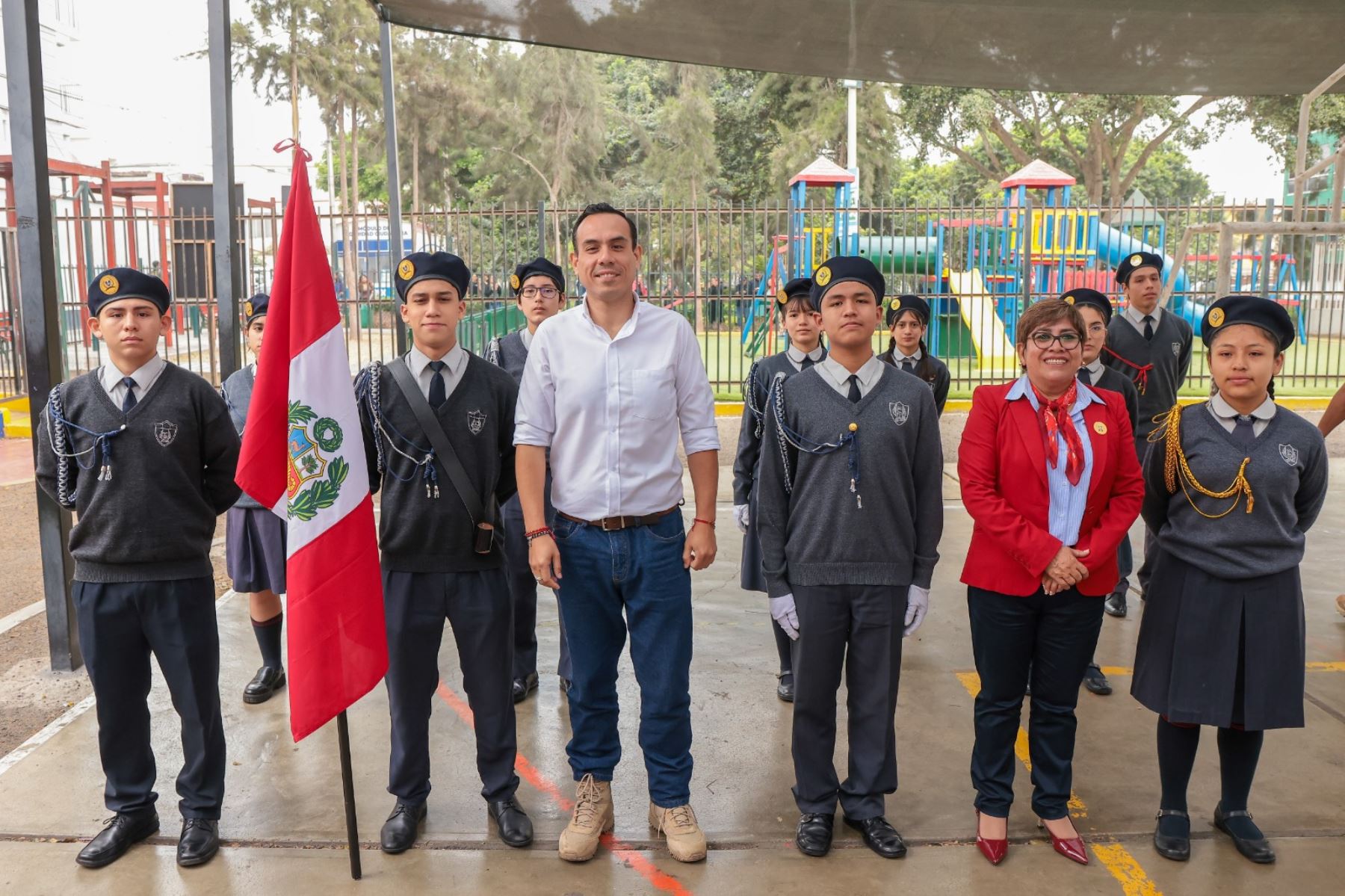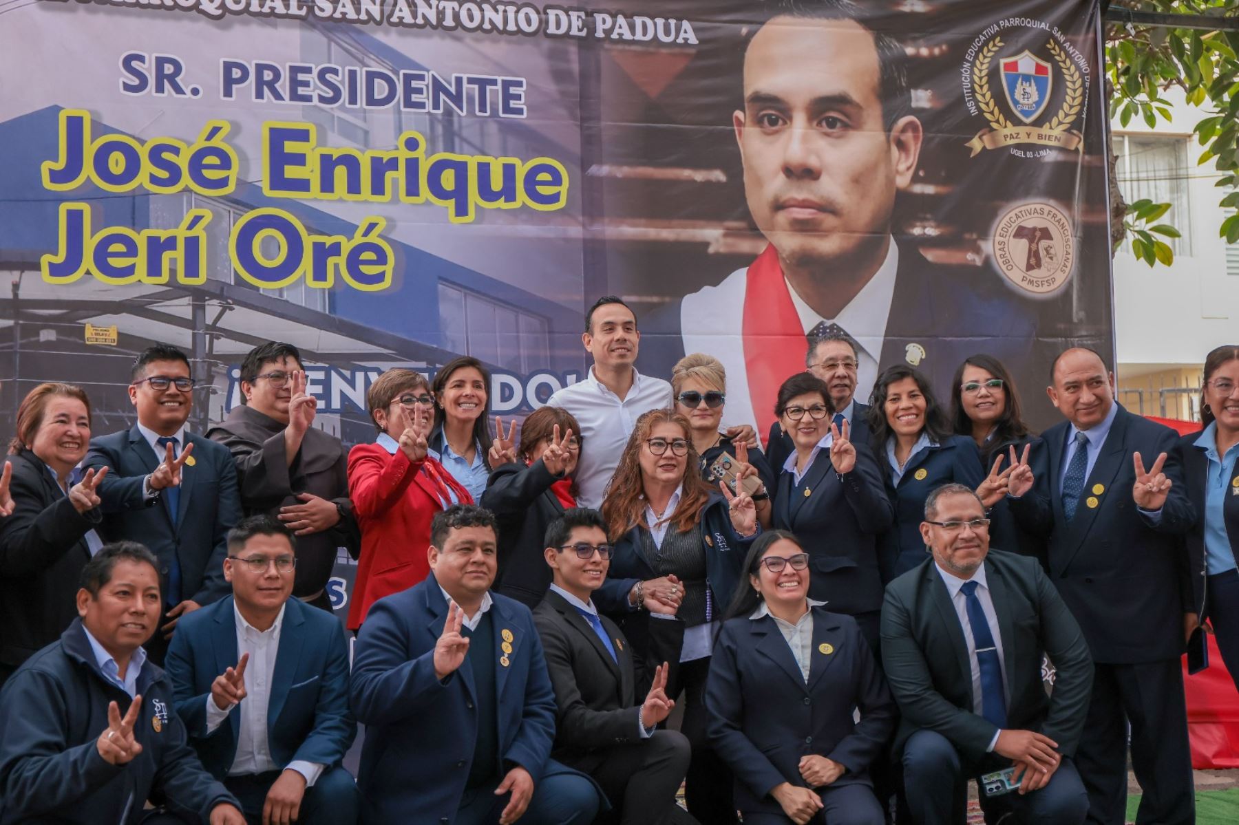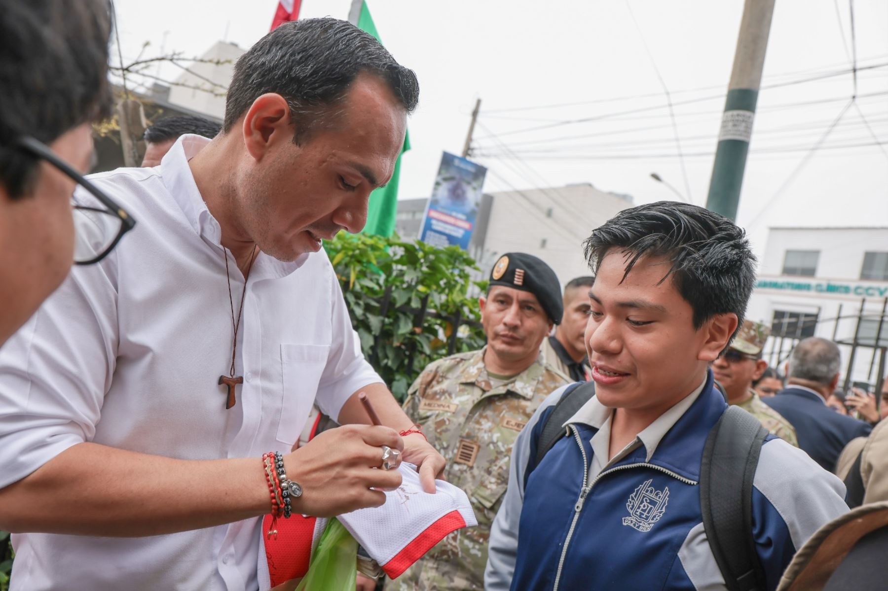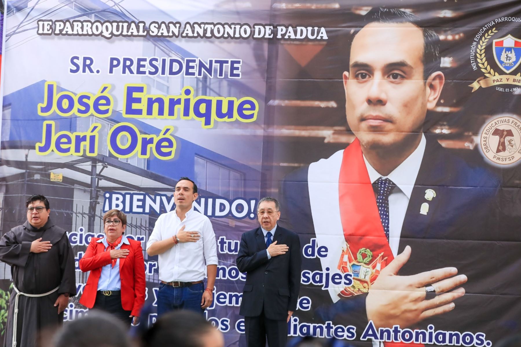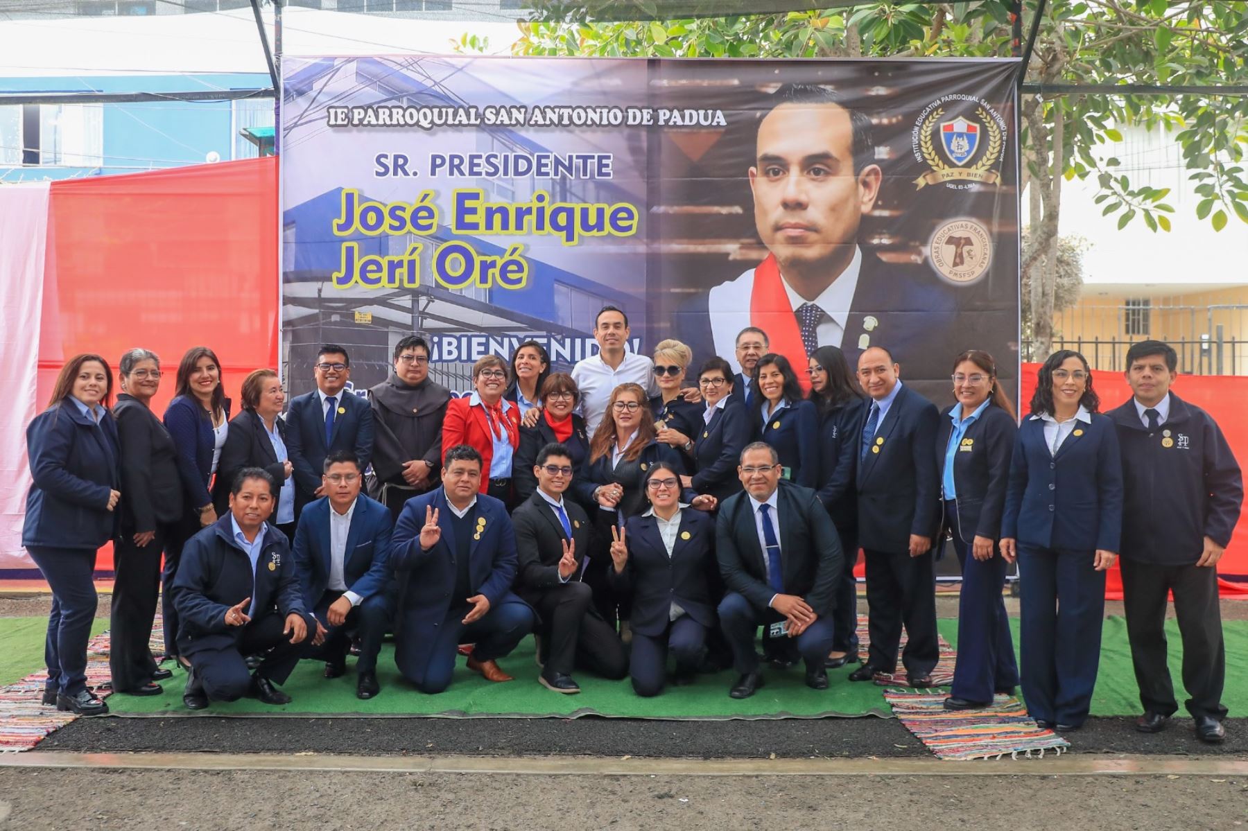 17/11/2025 El presidente José Jerí participa en la ceremonia de izamiento del Pabellón Nacional en la Institución Educativa Parroquial San Antonio de Padua, en el distrito de Jesús María, donde cursó sus estudios primarios y secundarios. Foto: ANDINA/Prensa Presidencia