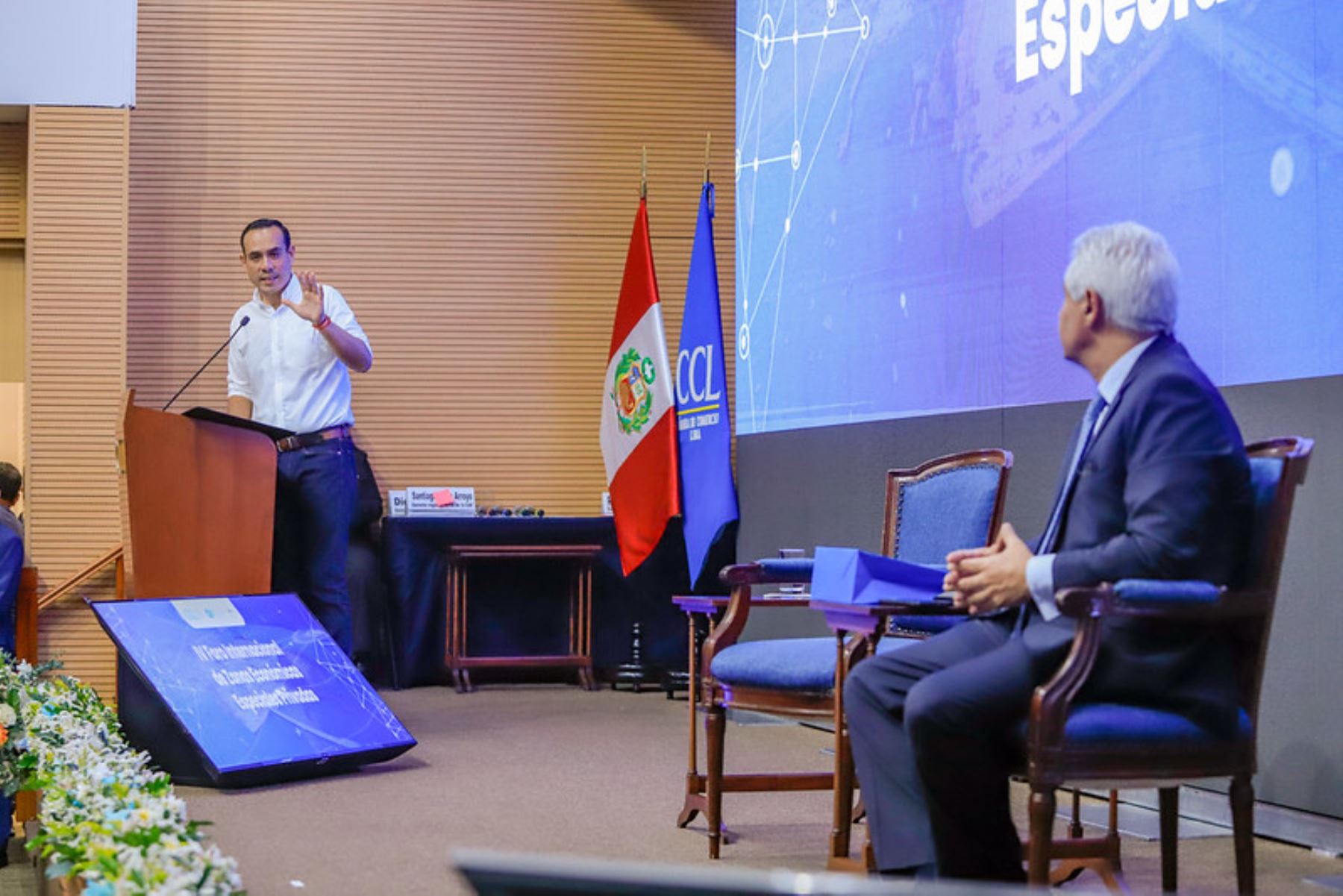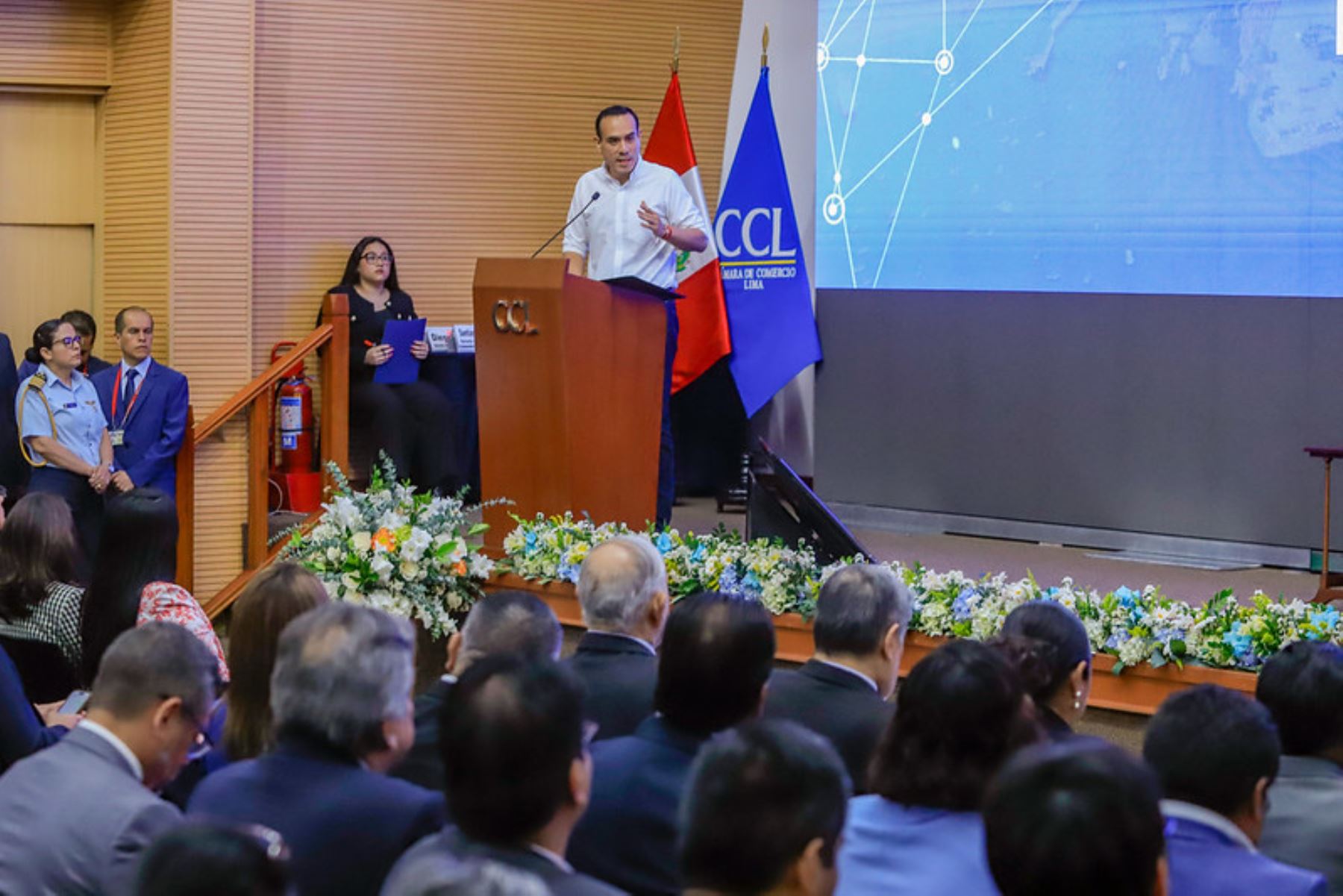 12/11/2025 El presidente José Jerí participa en el Foro Internacional de Zonas Económicas Especiales Privadas (ZEEP), en la Cámara de Comercio de Lima. Foto: ANDINA/Prensa Presidencia