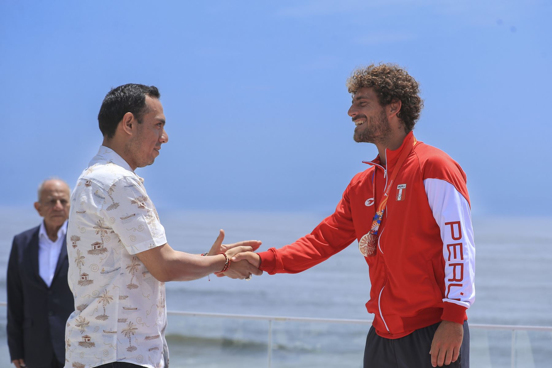30/11/2025 El presidente de la república, José Jerí, entregó las medallas a los ganadores de la competición de surf en los XX Juegos Bolivarianos Ayacucho-Lima 2025. Foto: Presidencia