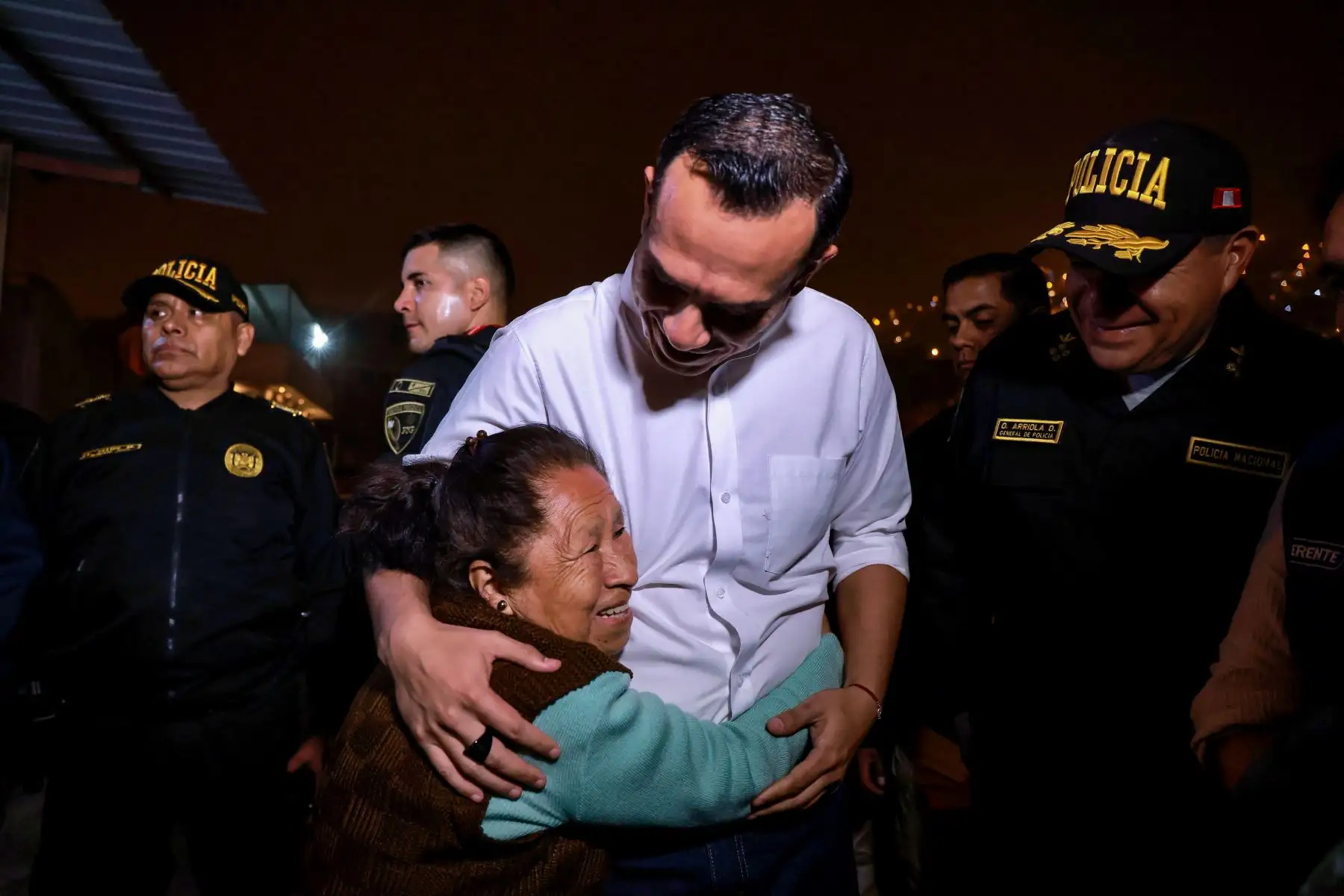 11/10/2025 Como parte de las acciones inmediatas del Gobierno, el señor presidente de la República José Jerí Oré recorrió la zona afectada por el incendio en San Juan de Miraflores. El fuego ha sido controlado, y ahora la prioridad es atender con rapidez, dignidad y humanidad a cada familia damnificada. Foto: ANDINA/Prensa Presidencia