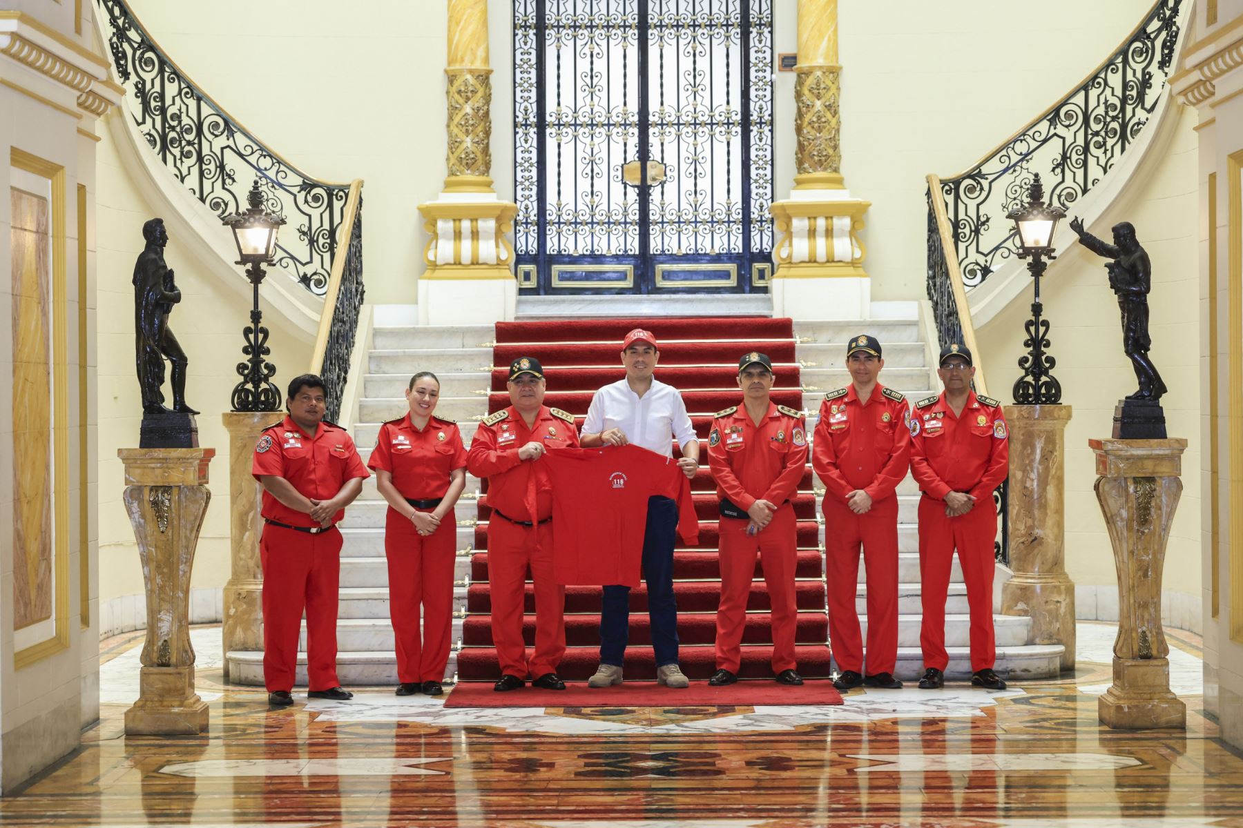 18/11/2025 El presidente de la república, José Jerí, sostuvo una reunión con miembros del Cuerpo General de Bomberos Voluntarios del Perú (CGBVP) en la que expresó el respaldo del Gobierno a las labores que realizan permanentemente por la seguridad de todos los peruanos. Foto: ANDINA/Prensa Presidencia