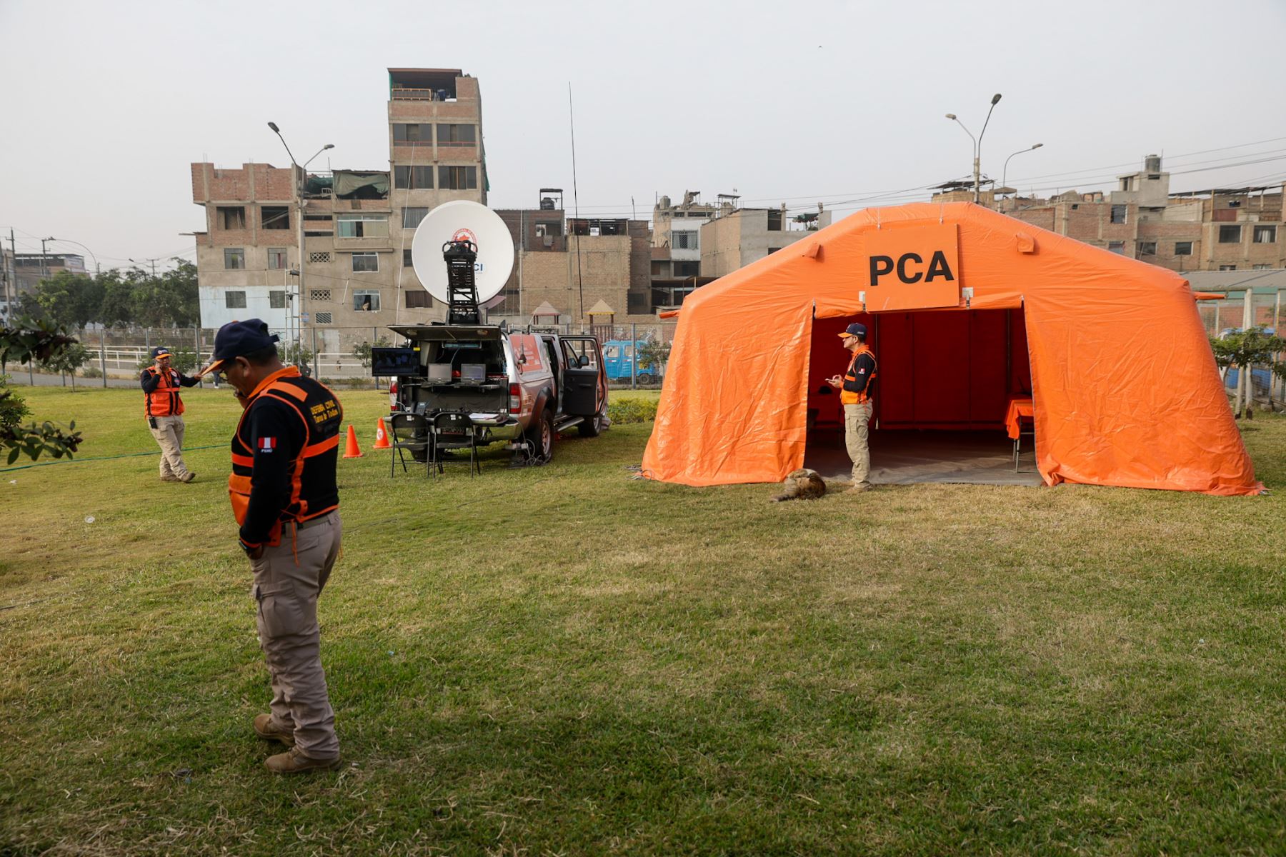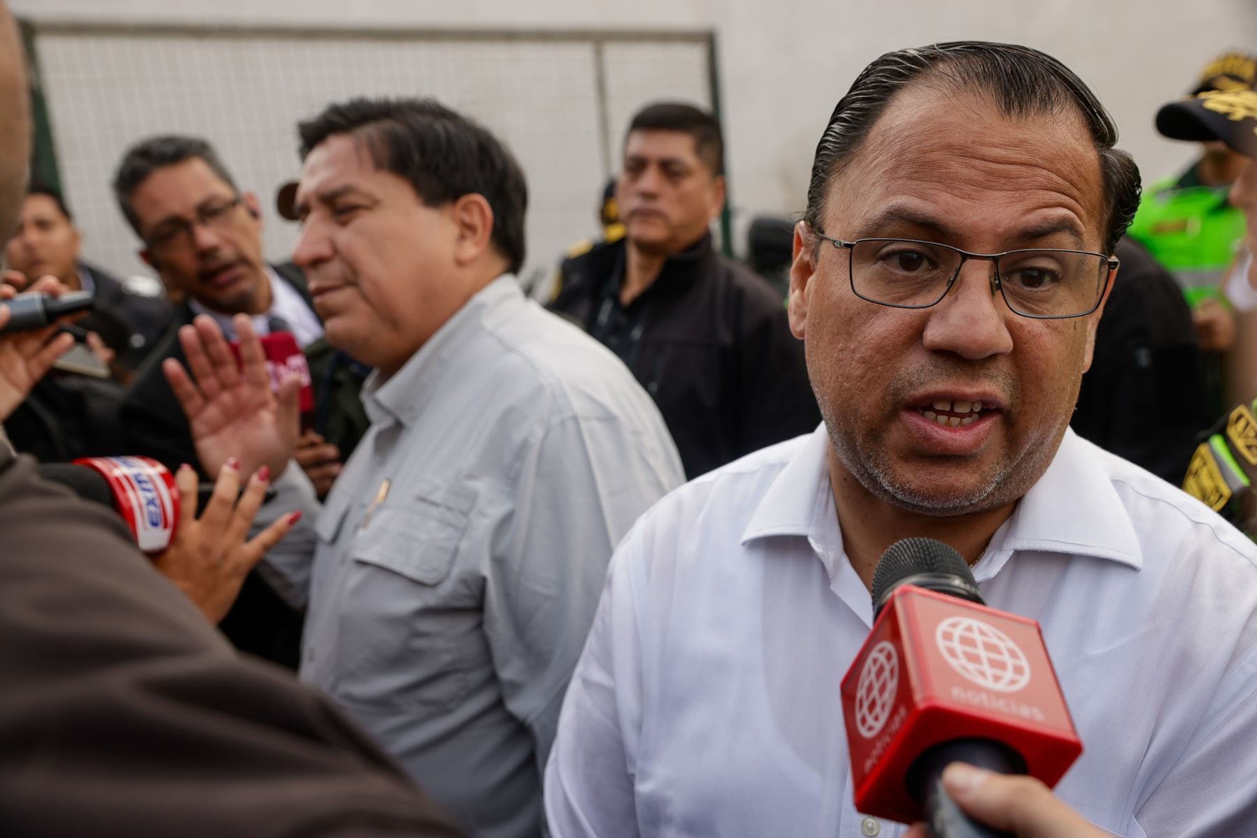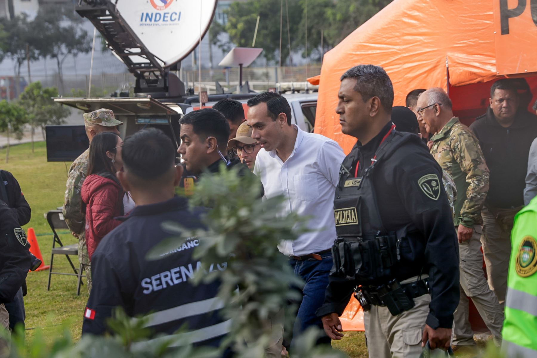 22/10/2025 El presidente de la República, José Jeri, visitó el puesto de comando de avanzada del Instituto Nacional de Defensa Civil (INDECI) en San Juan de Lurigancho, que apoya la integración de las comunicaciones entre las Fuerzas Armadas y la Policía Nacional durante las operaciones del estado de emergencia. El mandatario estuvo acompañado por el ministro de Defensa y el ministro del Interior, quienes supervisaron las acciones de coordinación en la zona. Foto: ANDINA/Luis Iparraguirre