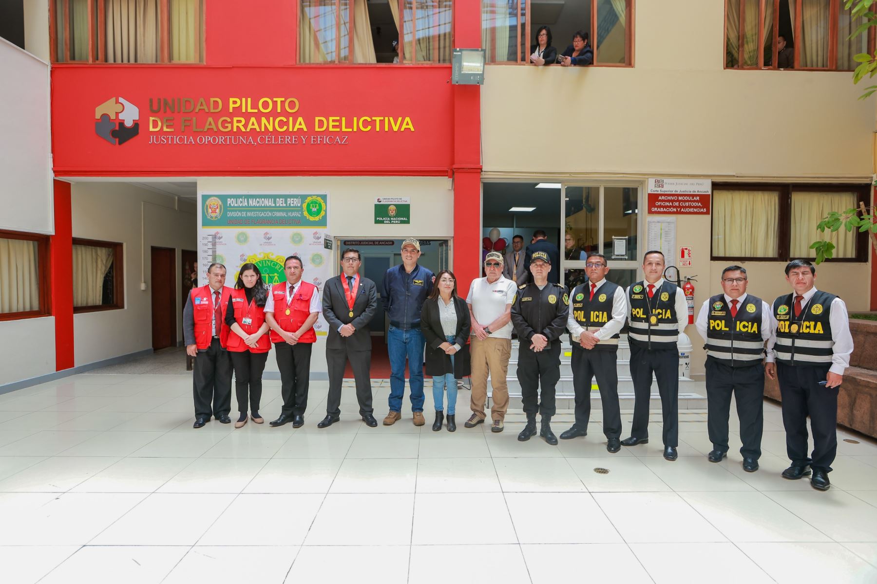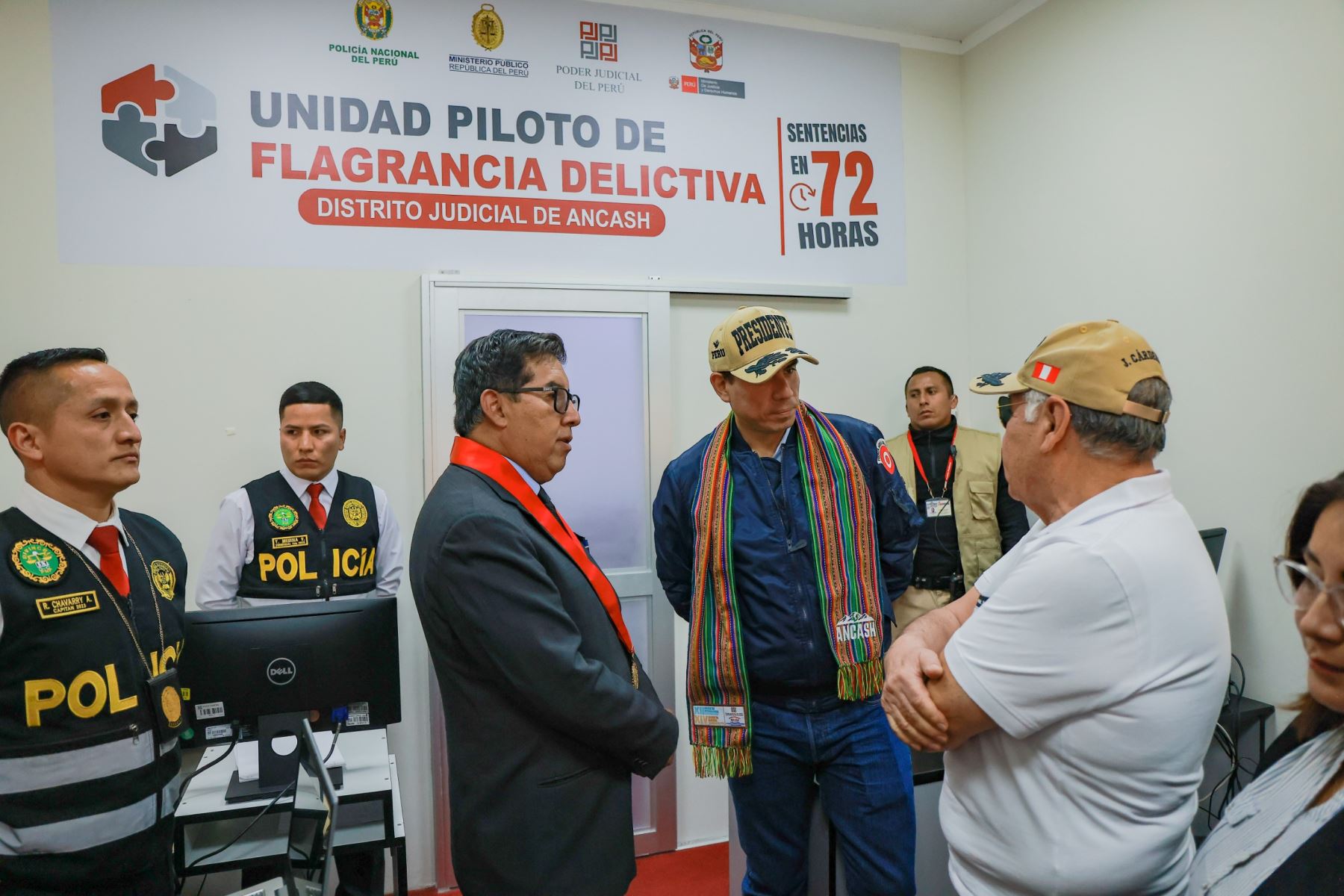 26/11/2025 El presidente José Jerí supervisó la Unidad Piloto de Flagrancia Delictiva en Huaraz, una iniciativa que brinda respuesta inmediata, eficaz y transparente a los ciudadanos que requieren apoyo frente a delitos en la jurisdicción. Esta unidad agrupa en la misma sede a representantes del Poder Judicial, Ministerio Público, Policía Nacional del Perú y el Ministerio de Justicia y Derechos Humanos. Foto: ANDINA/Prensa Presidencia