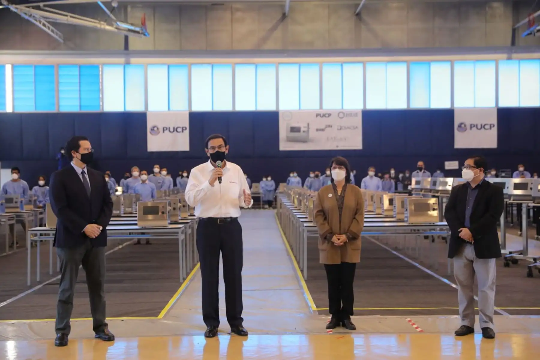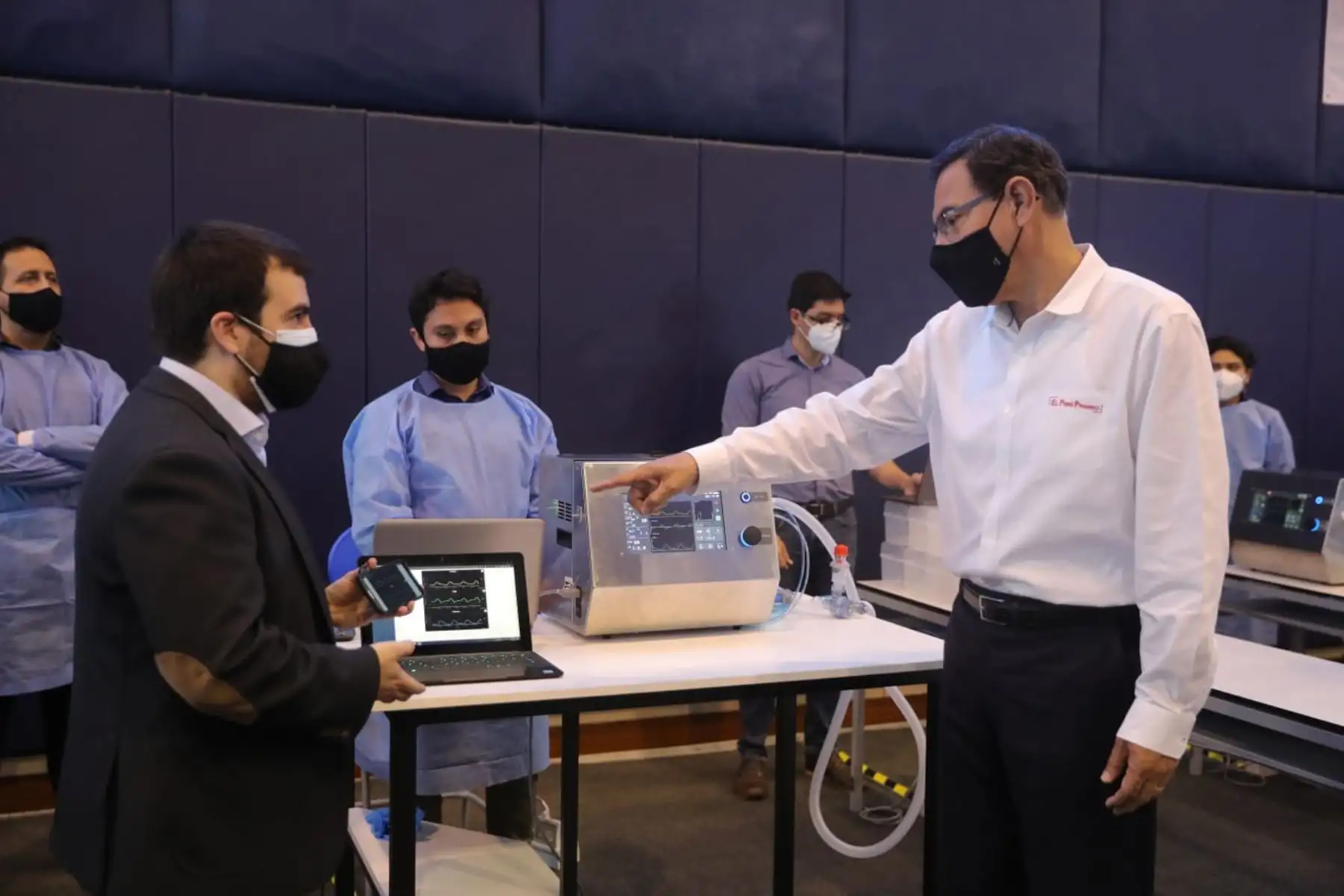 08/10/2020 El presidente Martin Vizcarra, junto a la titular del Minsa, Pilar Mazzetti, participa de la entrega de ventiladores mecánicos MASI, tecnología médica peruana utilizada para la atención de pacientes Covid-19 en situación de alto riesgo. Foto: ANDINA/ Prensa Presidencia