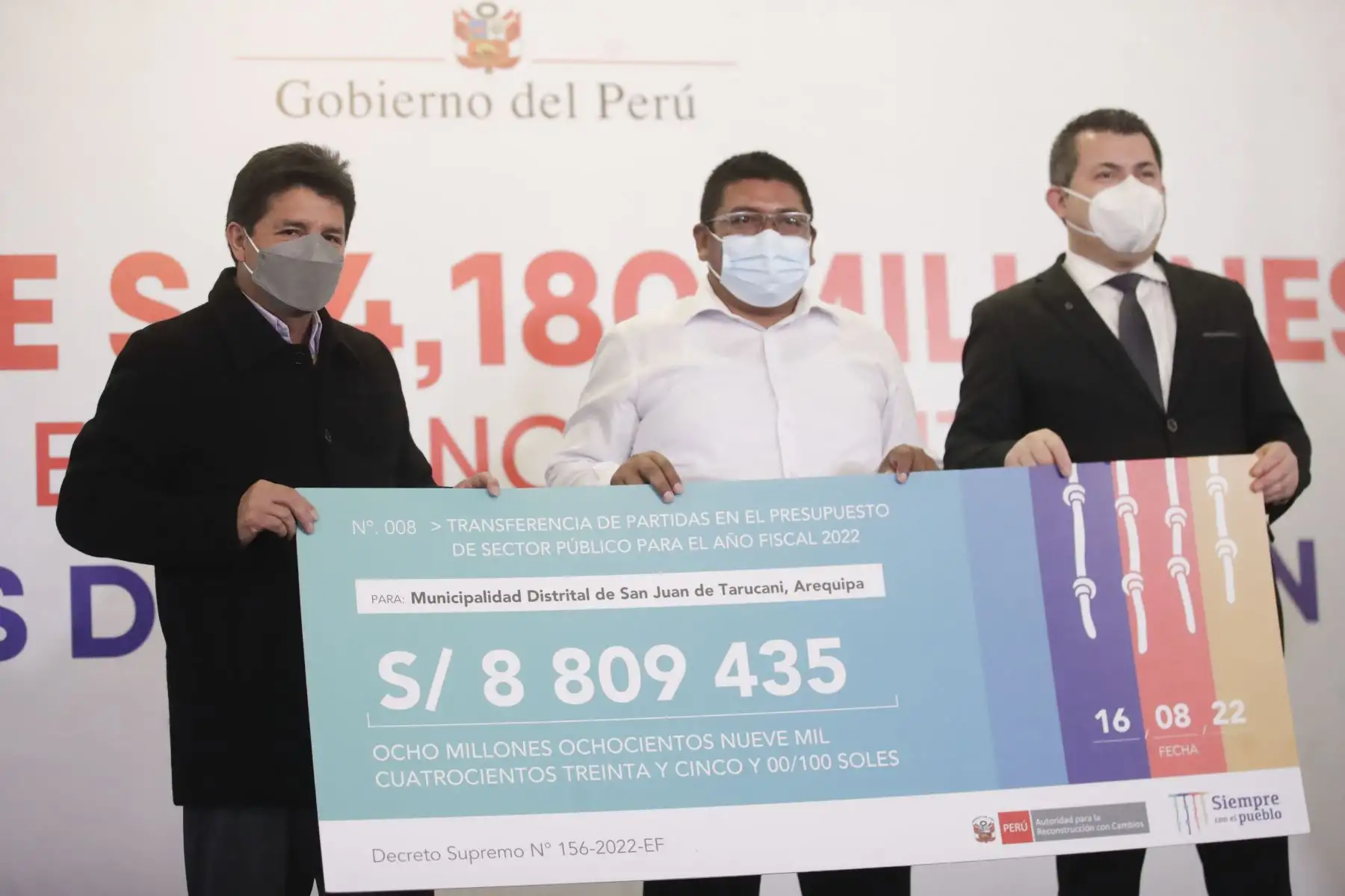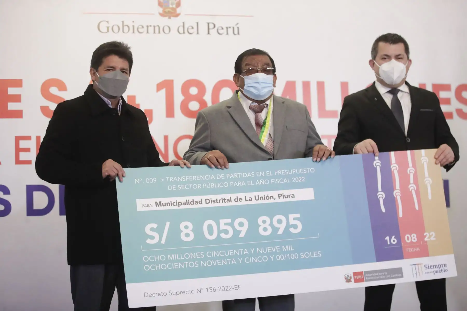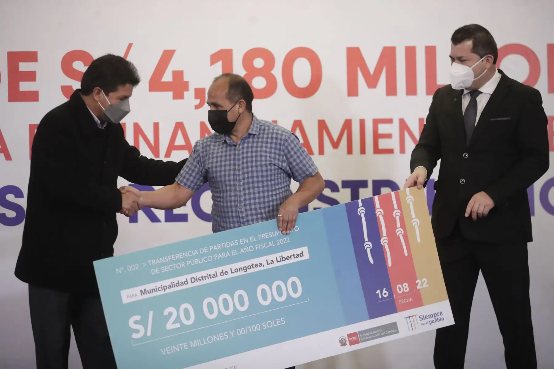 16/08/2022 Presidente Pedro Castillo lideró ceremonia de entrega de transferencia económica a gobiernos regionales y locales para obras de reconstrucción. Foto: ANDINA/ Prensa Presidencia