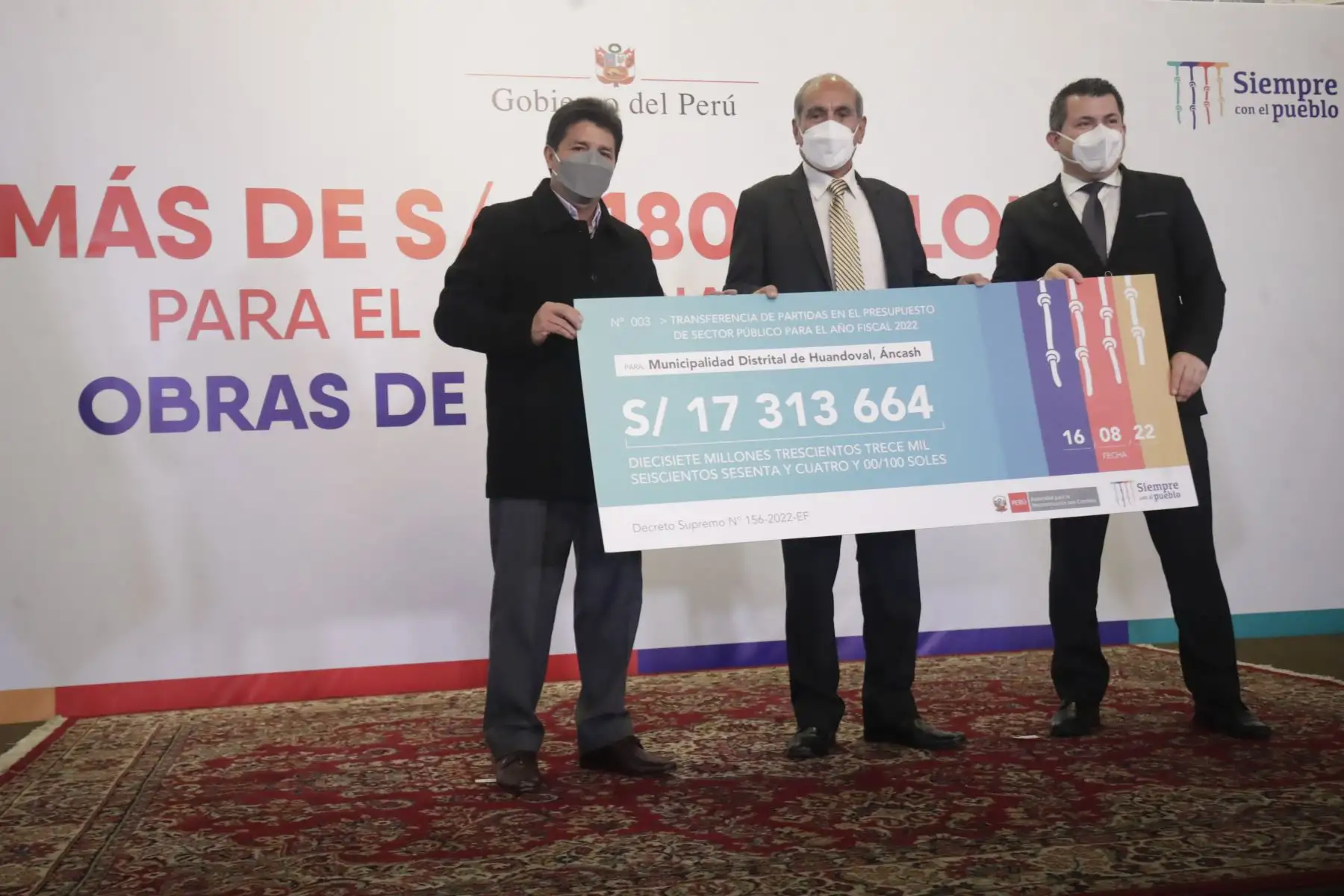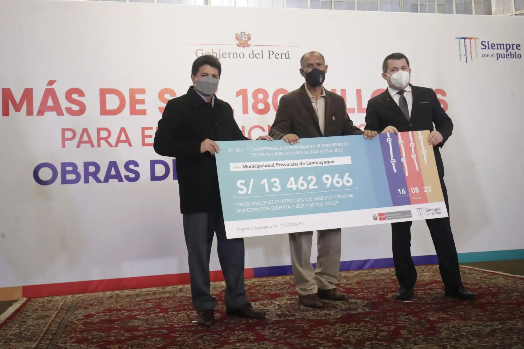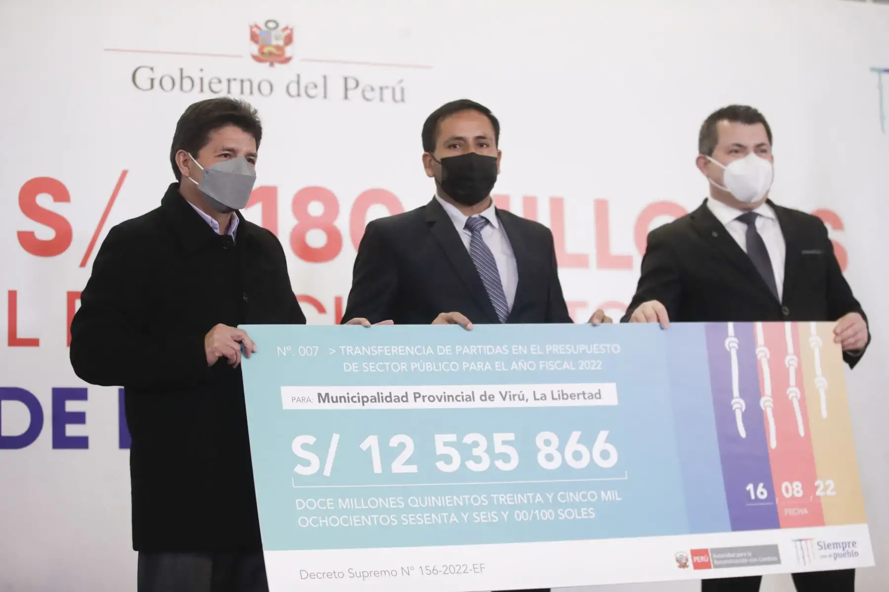 16/08/2022 Presidente Pedro Castillo lideró ceremonia de entrega de transferencia económica a gobiernos regionales y locales para obras de reconstrucción. Foto: ANDINA/ Prensa Presidencia