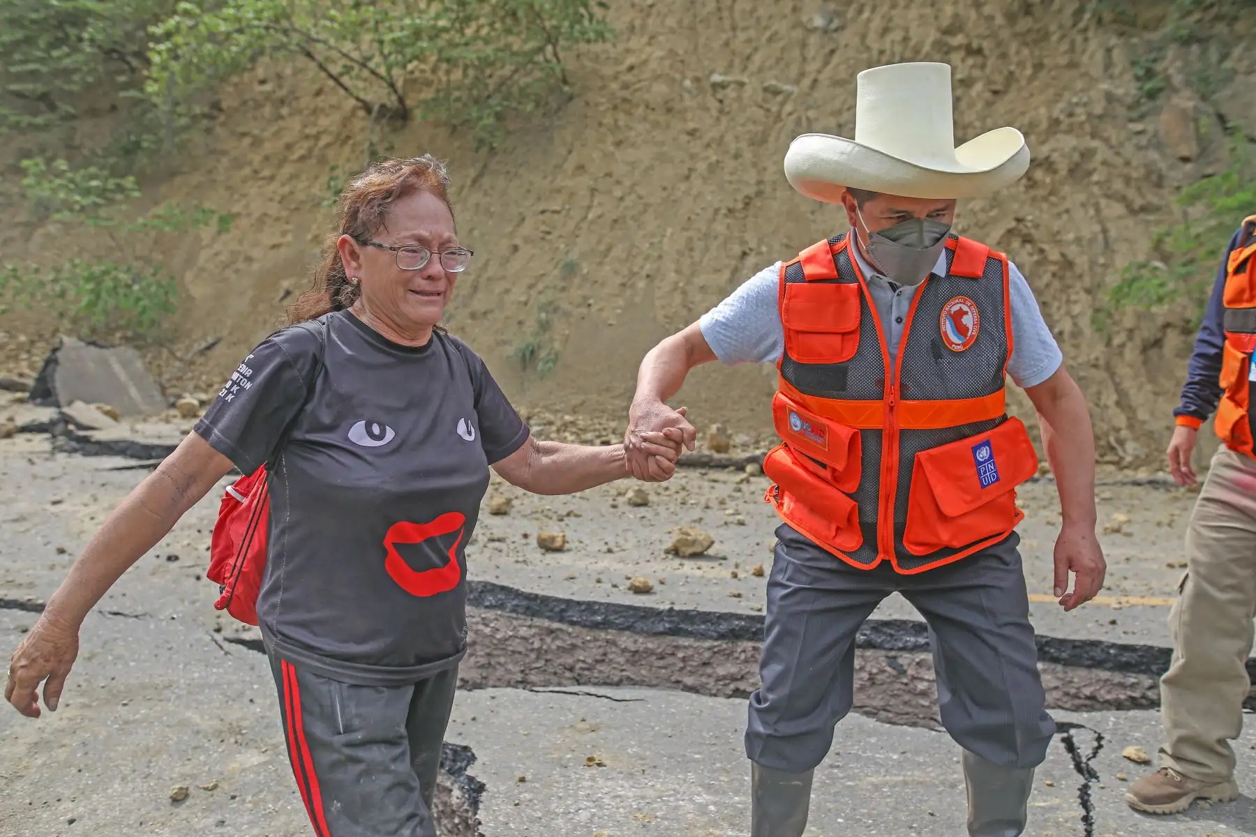 29/11/2021 Jefe de Estado, Pedro Castillo, por segundo día, recorre zonas afectadas por el sismo y realiza sobrevuelo por la región en Amazonas. Foto: ANDINA/ Prensa Presidencia