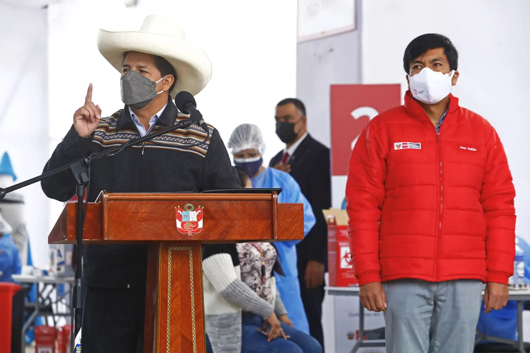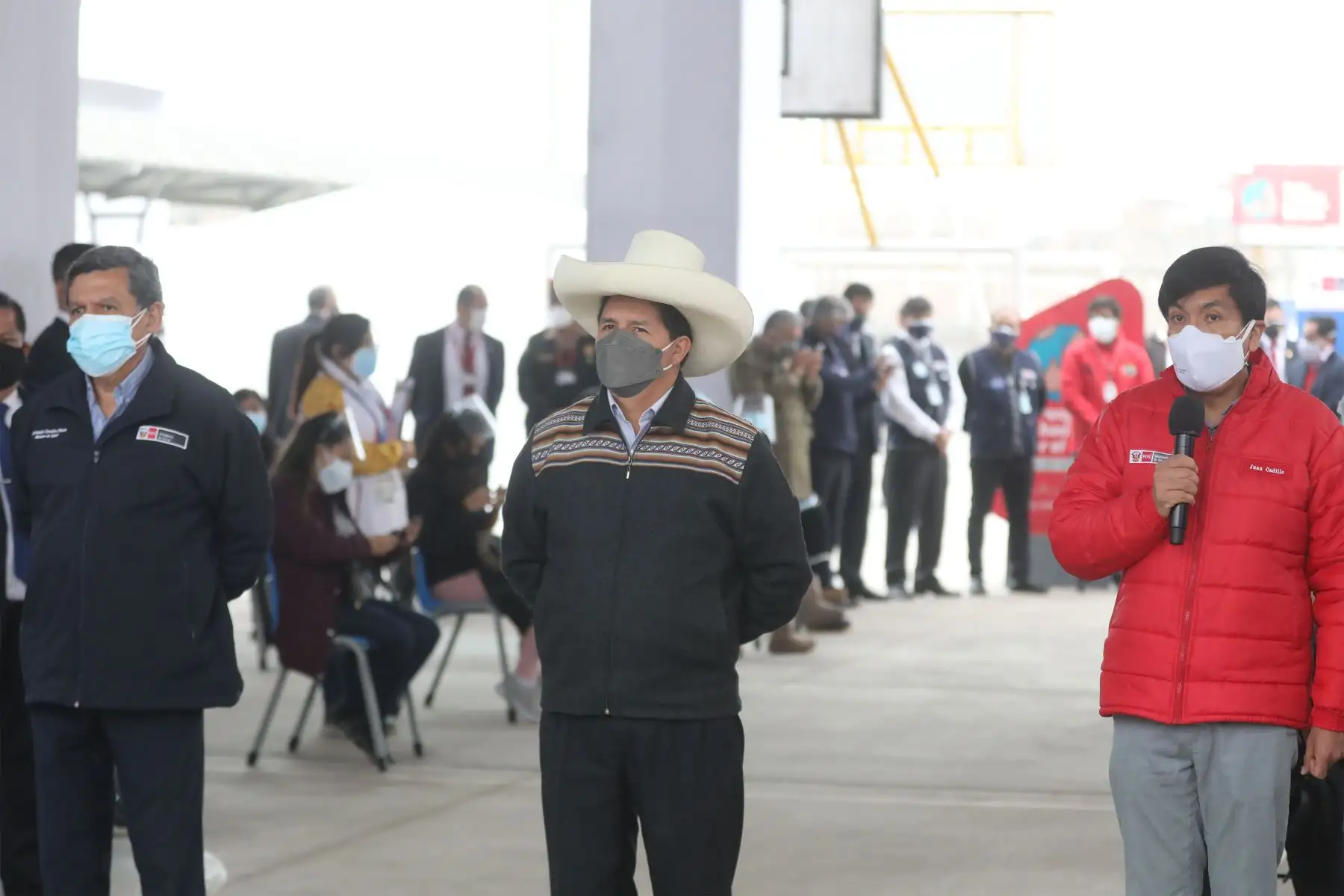 03/09/2021 El presidente de la República, Pedro Castillo, supervisa el inicio de la inmunización de los docentes urbanos contra la covid-19. El Mandatario se encuentra acompañado por los ministros de Salud, Hernando Cevallos y de Educación, Juan Cadillo. Foto: ANDINA/Andrés Valle