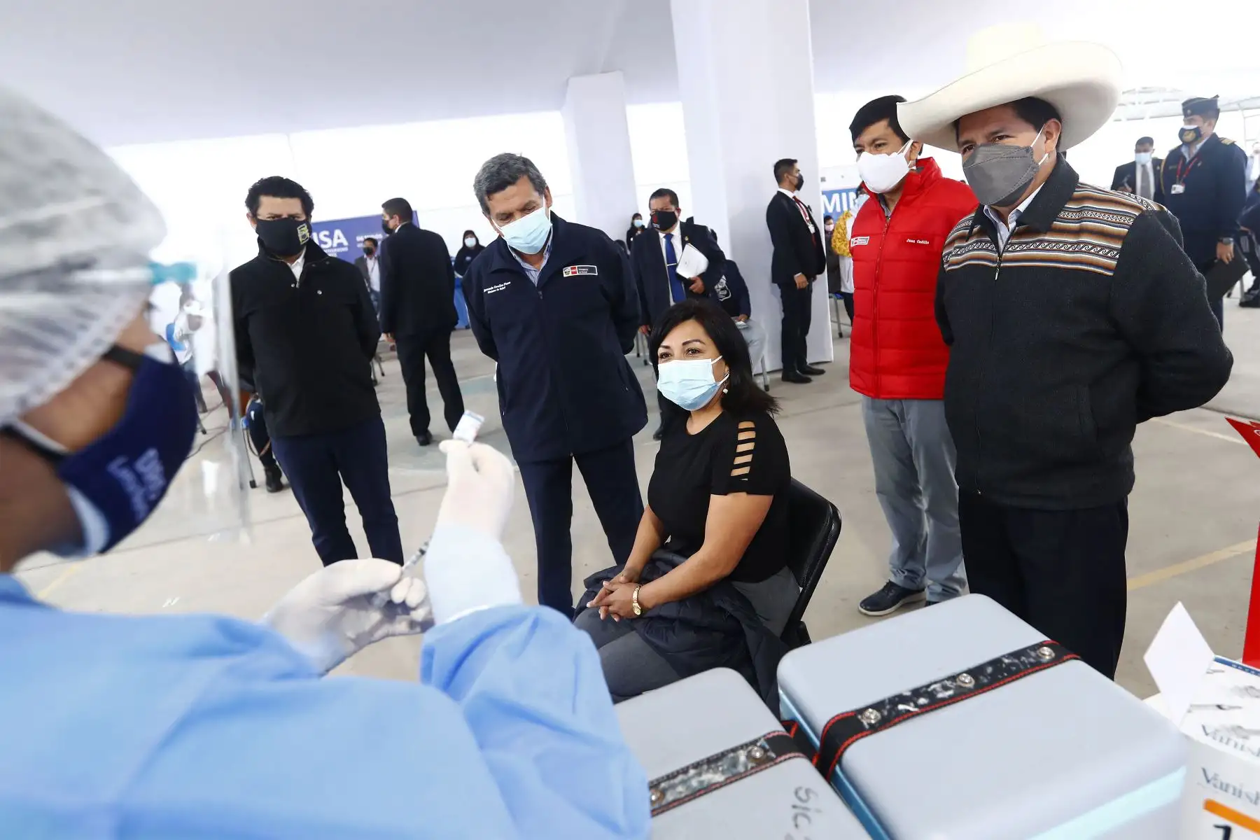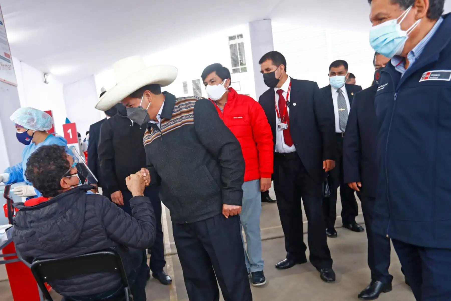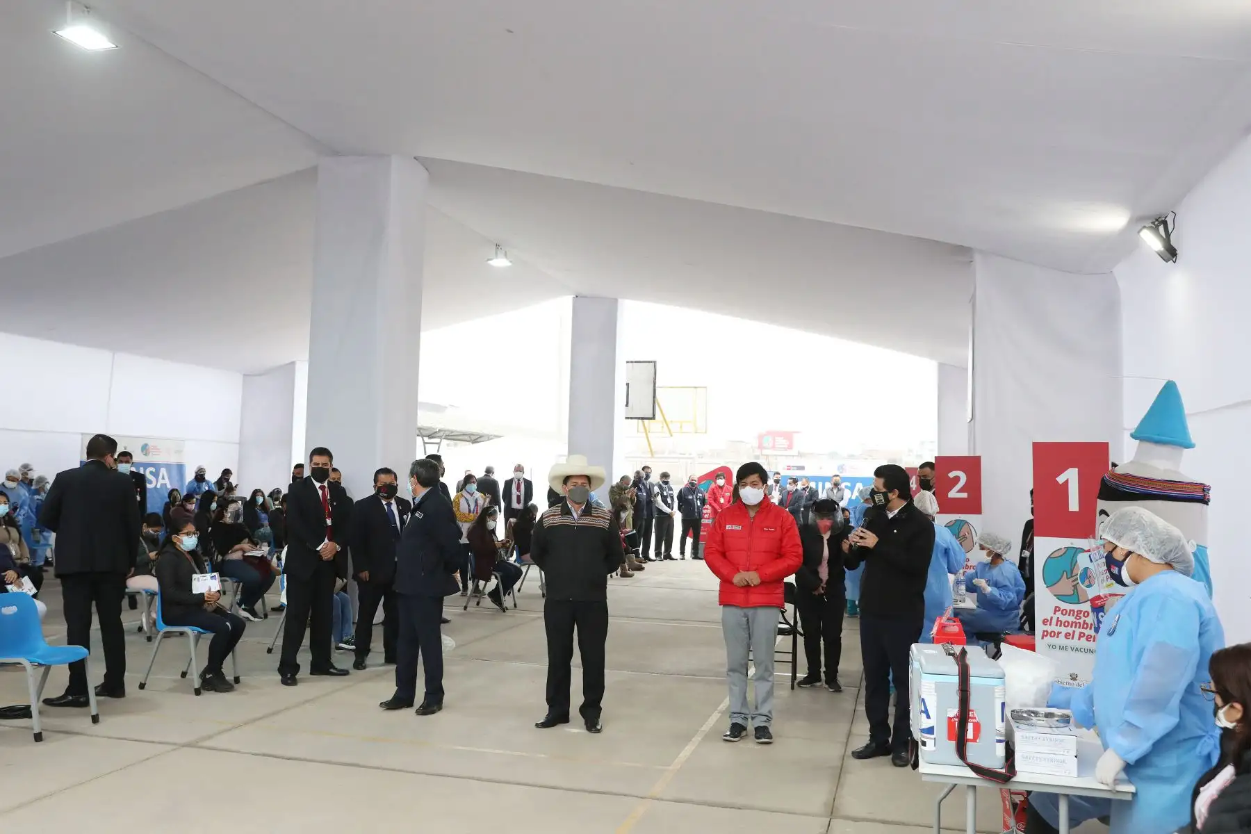 El presidente de la República, Pedro Castillo, supervisa el inicio de la inmunización de los docentes urbanos contra la covid-19.