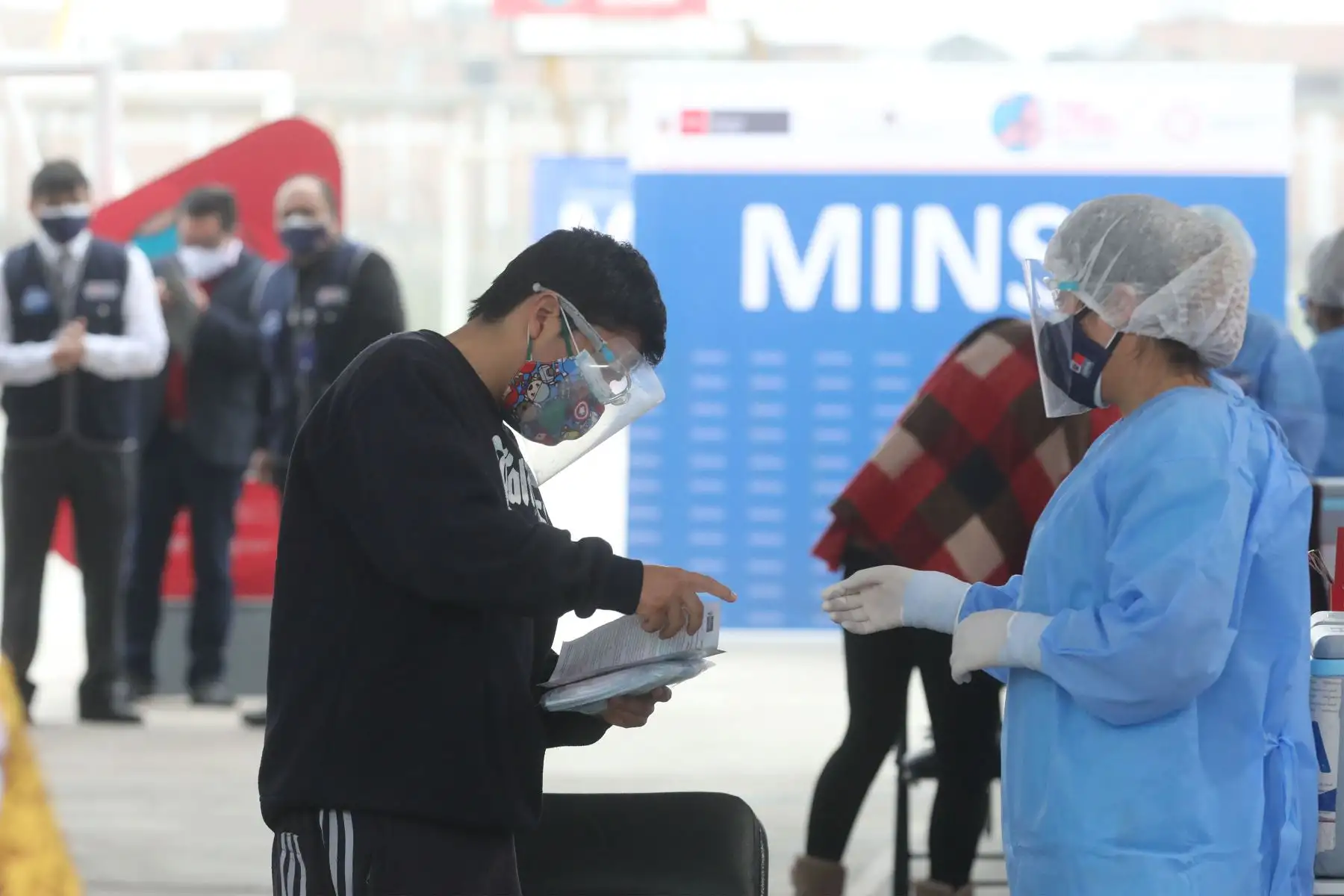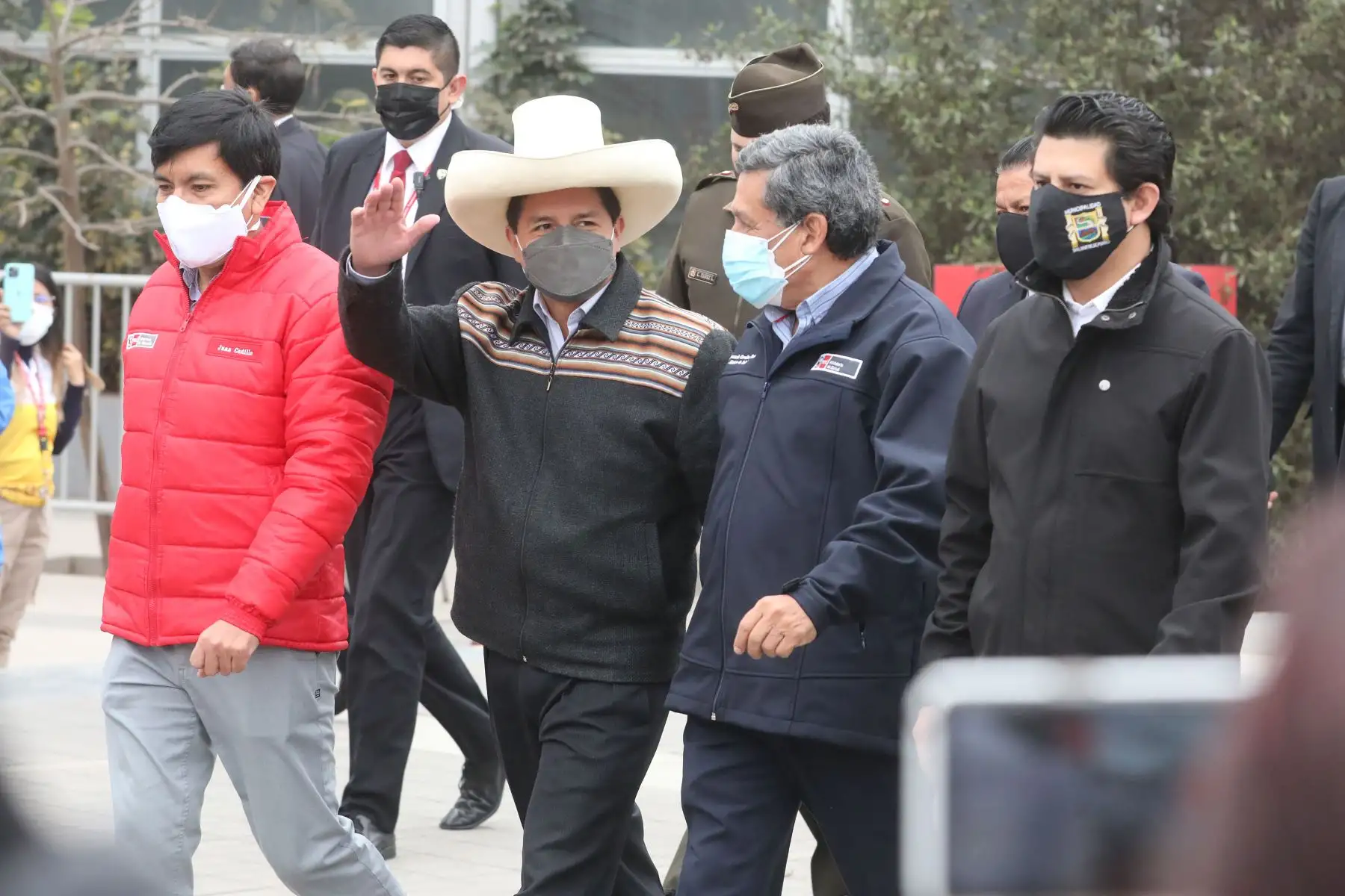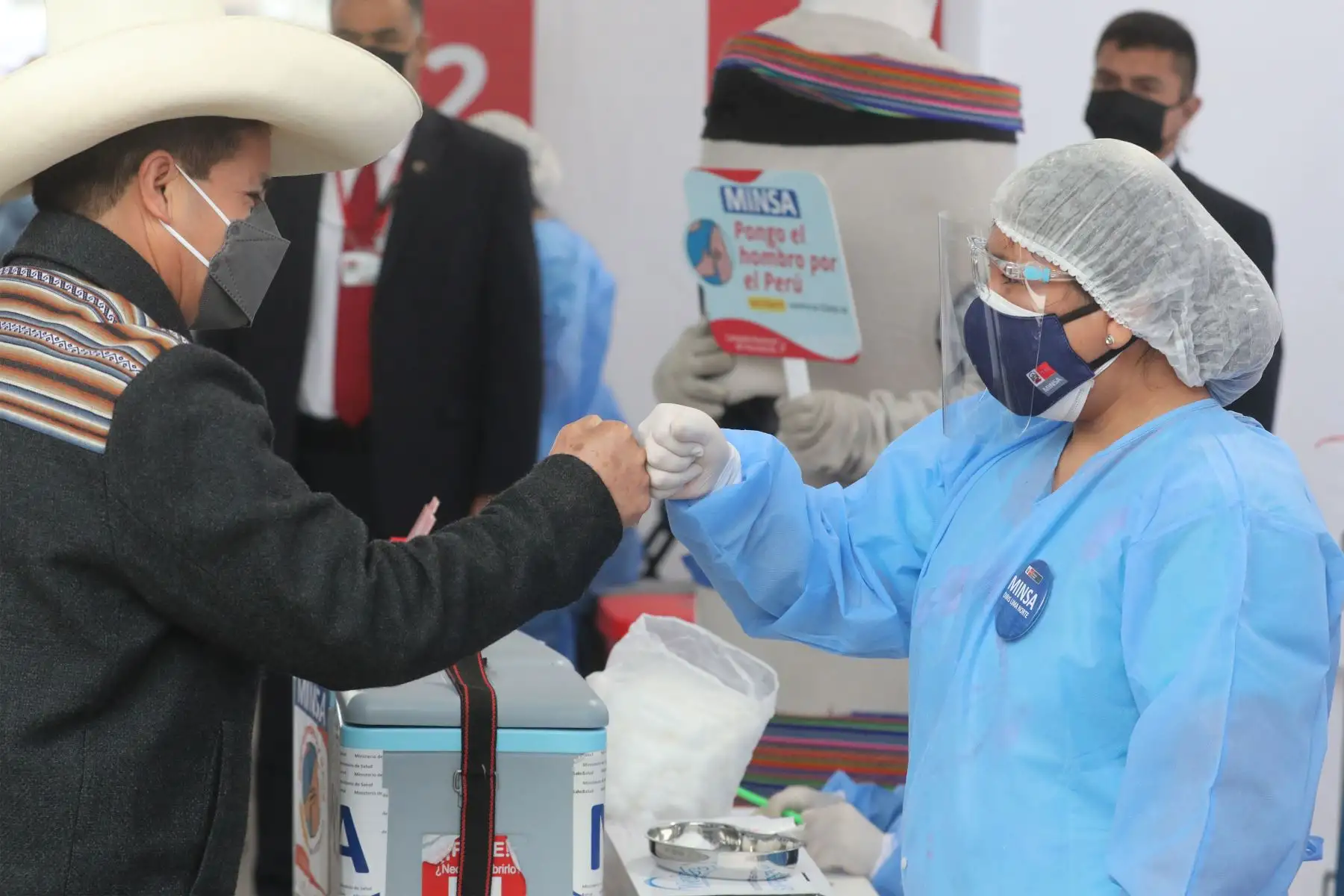 El presidente de la República, Pedro Castillo, supervisa el inicio de la inmunización de los docentes urbanos contra la covid-19.