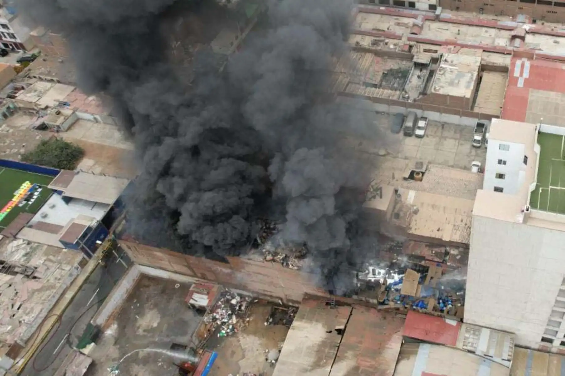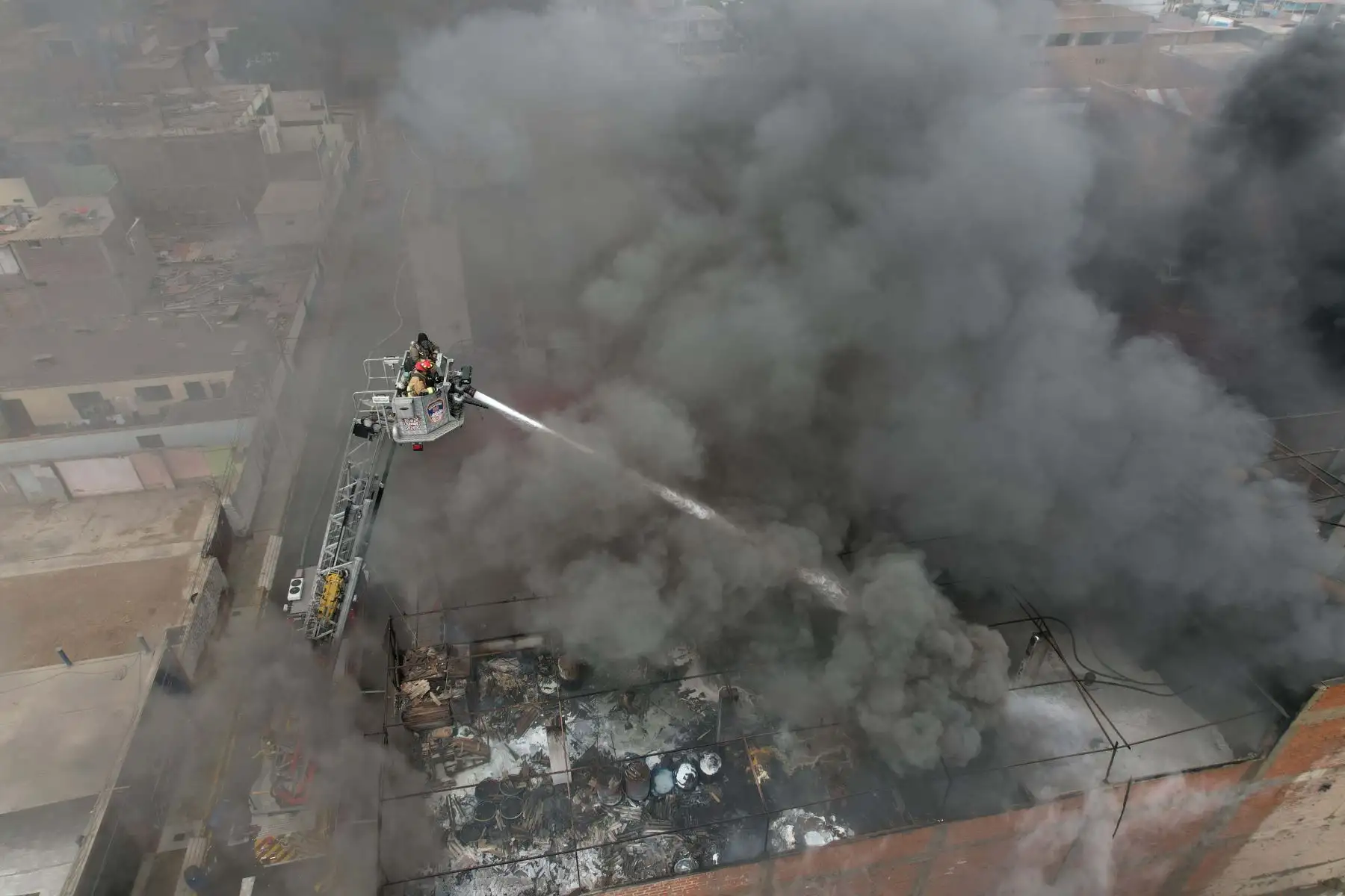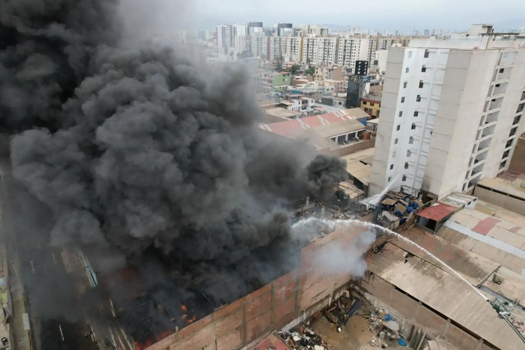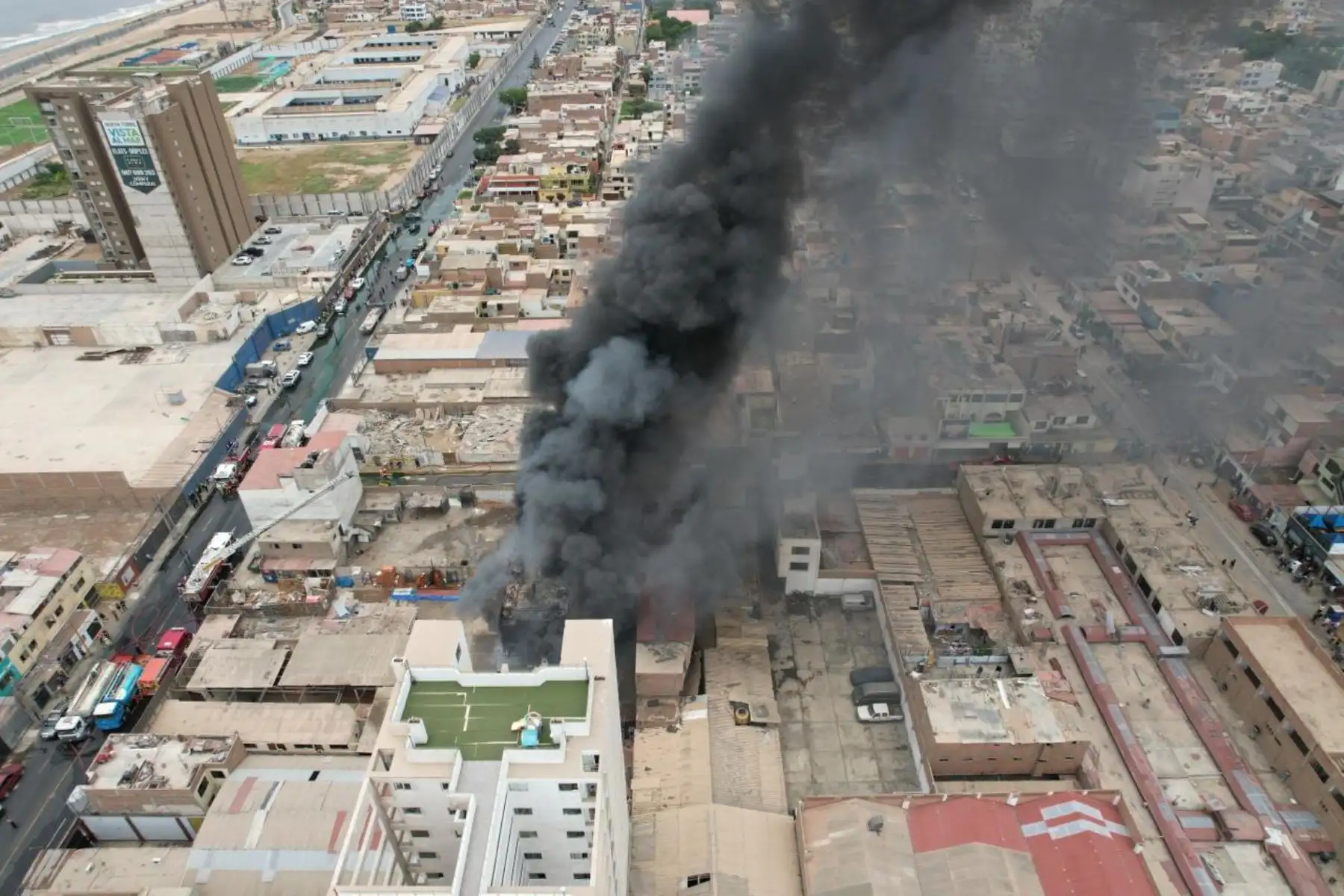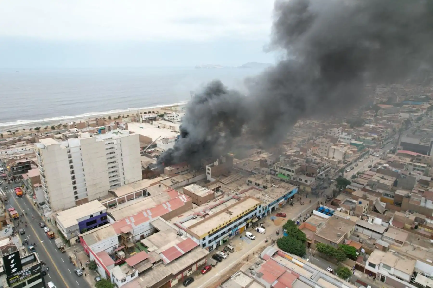 12/02/2024 Desde distintas partes del distrito y de jurisdicciones aledañas puede apreciarse una columna de humo negro que se alza hacia el cielo, lo cual indicaría que en el lugar hay gran cantidad de productos químicos o material inflamable. Foto: ANDINA/ Eddy Ramos