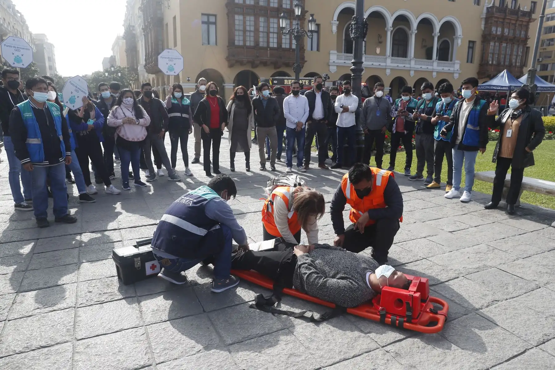 Se inicia simulacro nacional multipeligro con participación de la población en la Plaza de Armas de Lima
