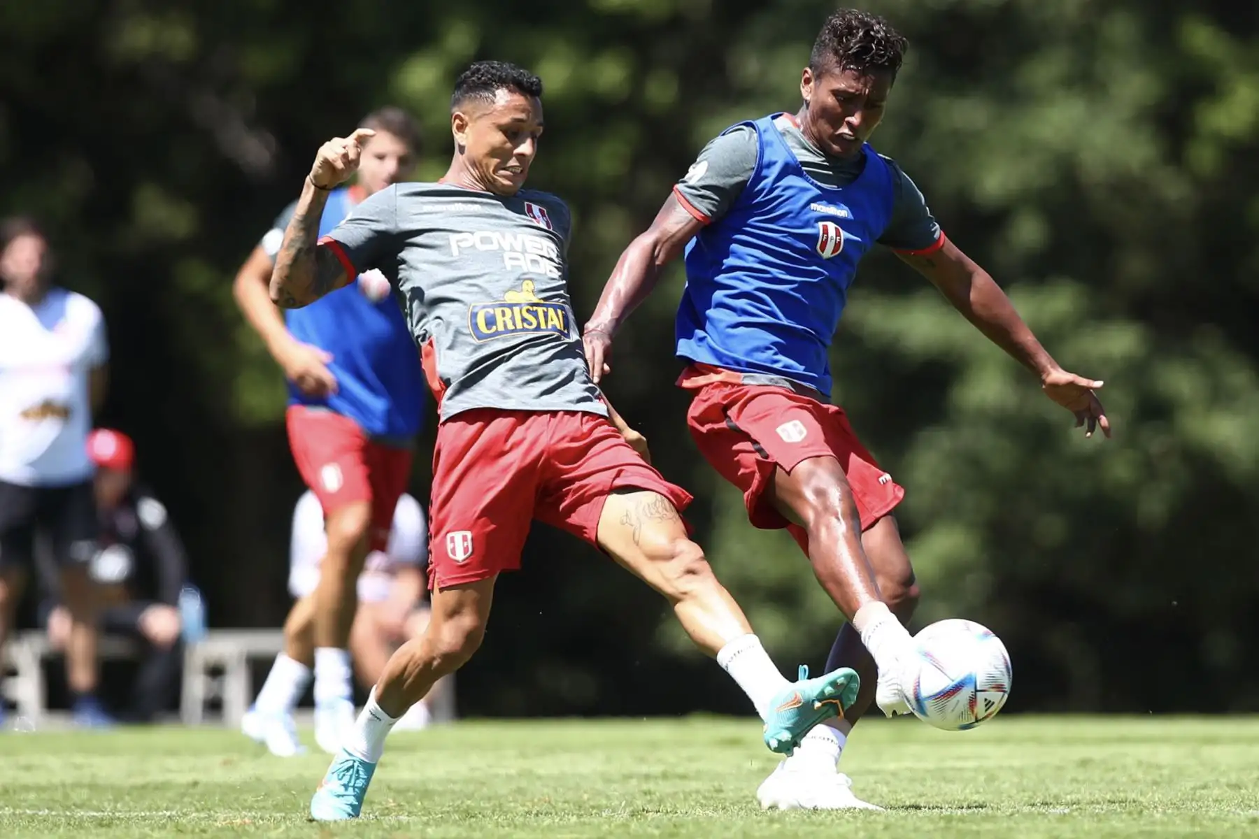 31/05/2022 Futbolistas Miguel Trauco, Luis Abram y Christian Cueva de la selección peruana, durante el segundo día de entrenamiento en el Centro de Alto Rendimiento San Cugat de Barcelona. Foto: FPF