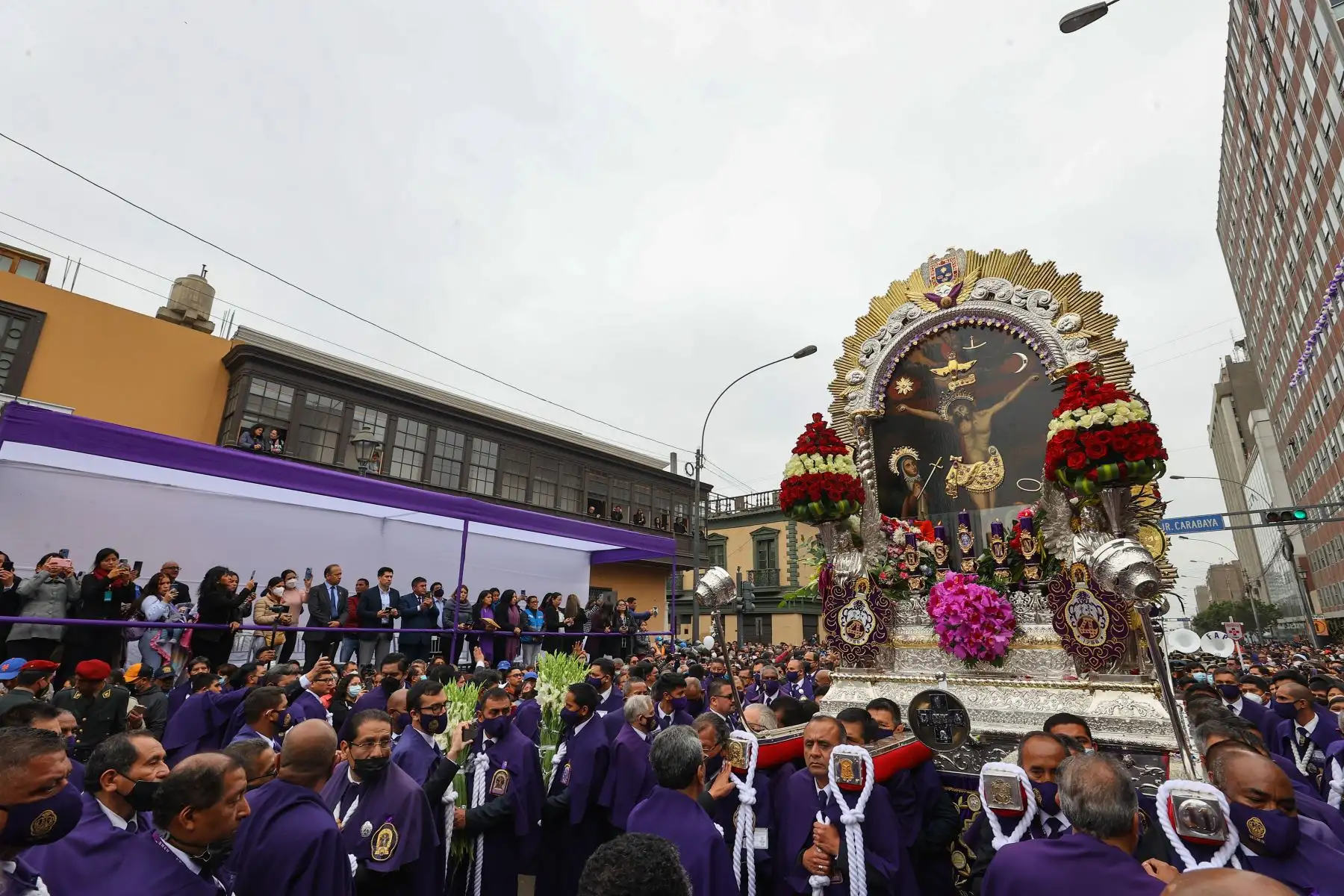 18/10/2022 La sagrada imagen del Señor de los Milagros, pasará por los hospitales Dos de Mayo y Guillermo Almenara, para luego llegar hasta la iglesia de La Victoria, donde pernoctará hasta la mañana del miércoles 19 de octubre. Foto: ANDINA/ Andrés Valle