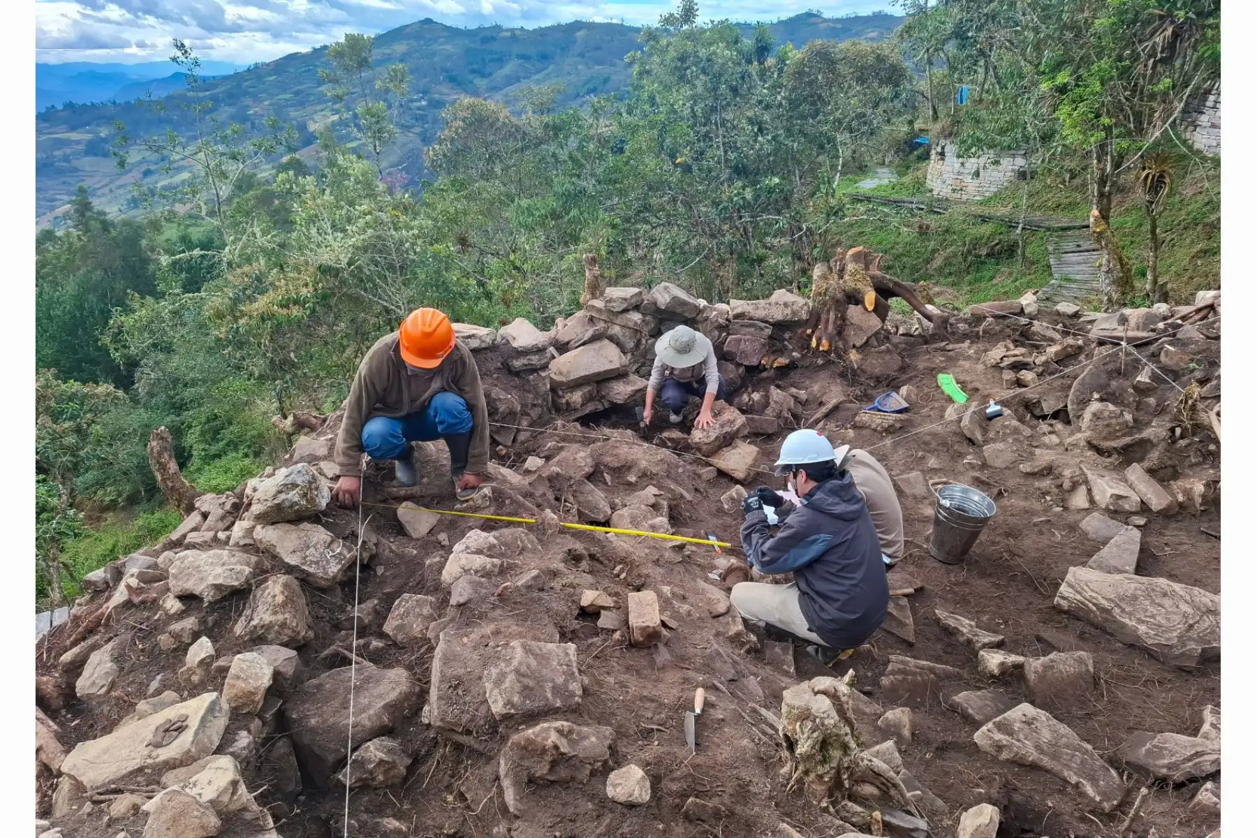 05/08/2025 Investigadores del Instituto de Investigación de Arqueología y Antropología “Kuélap” (INAAK) de la Universidad Nacional Toribio Rodríguez de Mendoza (UNTRM), descubrieron dos cabezas clavas y más de 200 estructuras en el sitio arqueológico Ollape, ubicado en el distrito de La Jalca, en la provincia de Chachapoyas, región Amazonas. Foto: Instituto de Investigación de Arqueología y Antropología “Kuélap” (INAAK) de la UNTRM