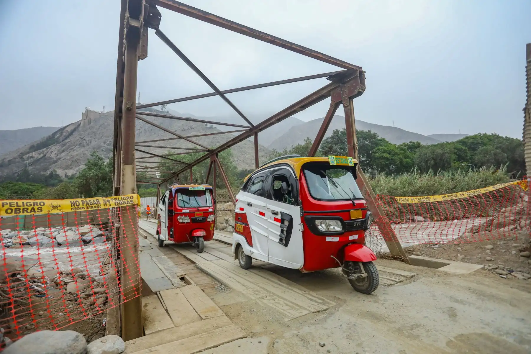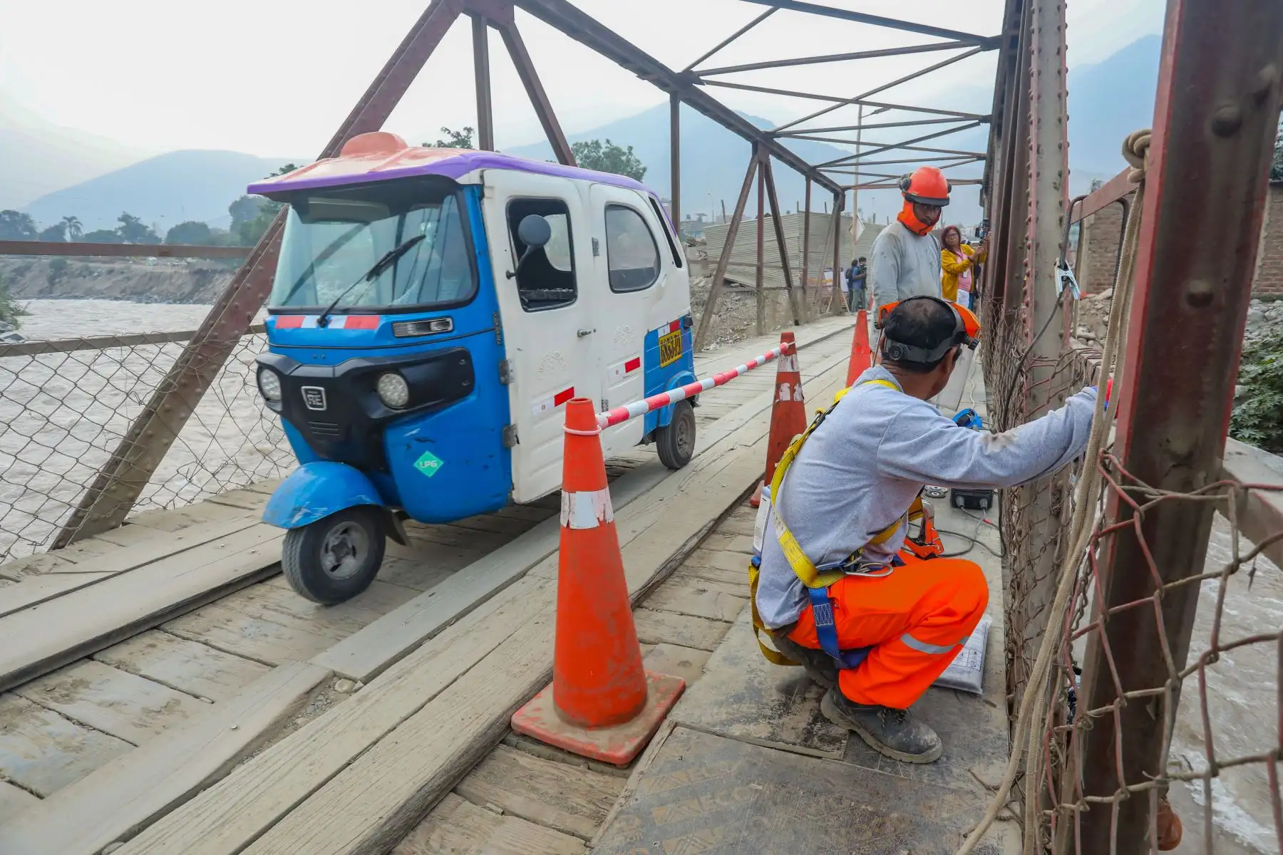 Trabajos en el puente provisional de Huampaní
