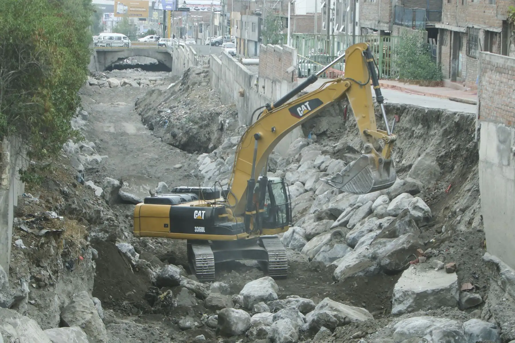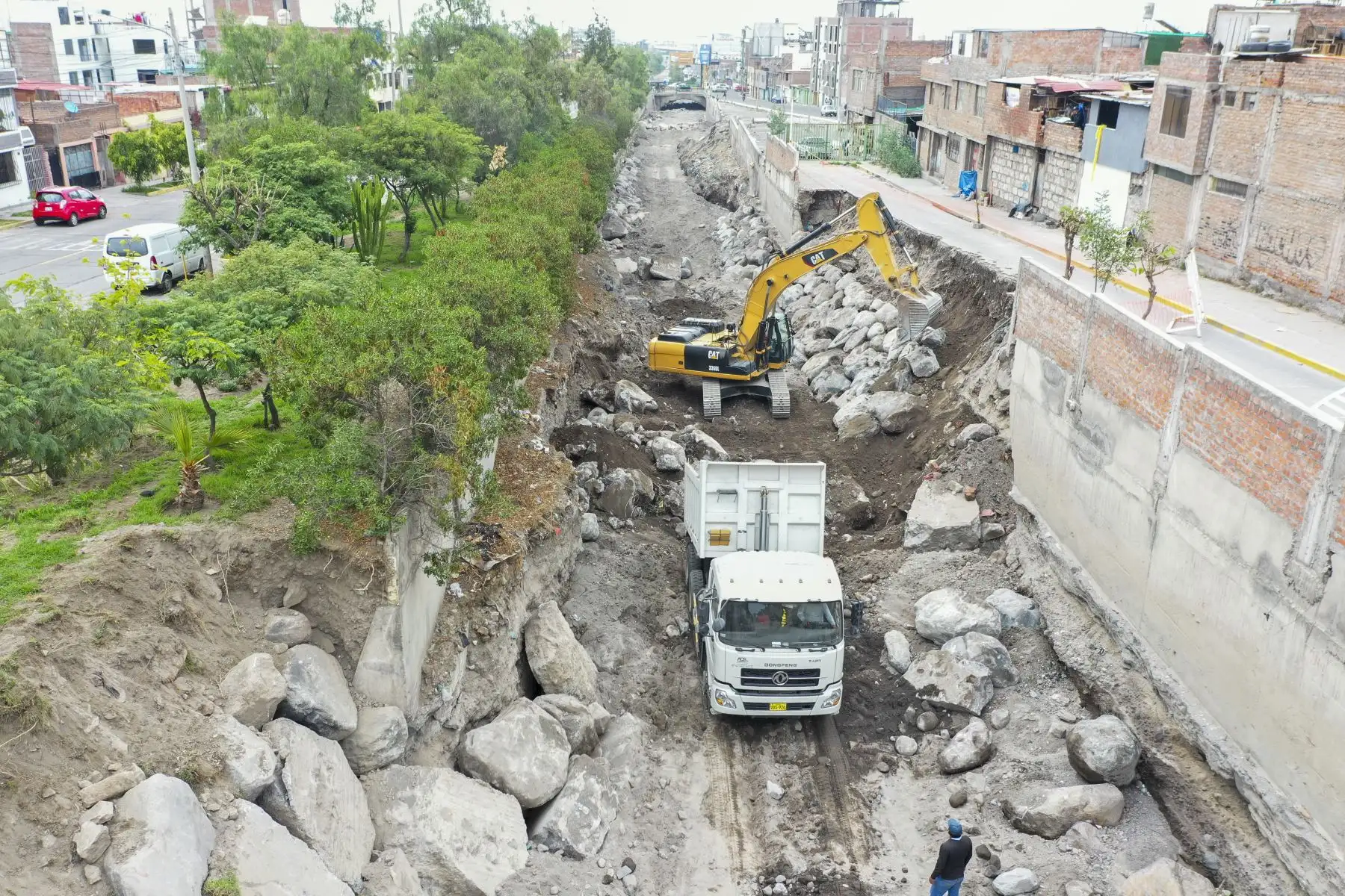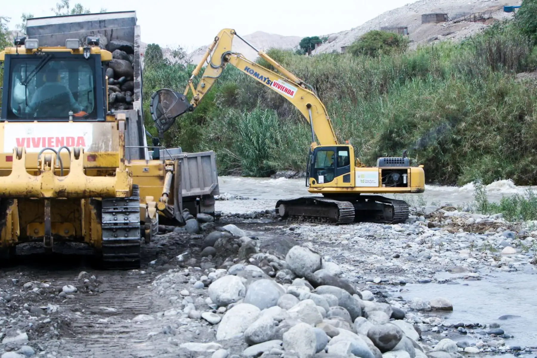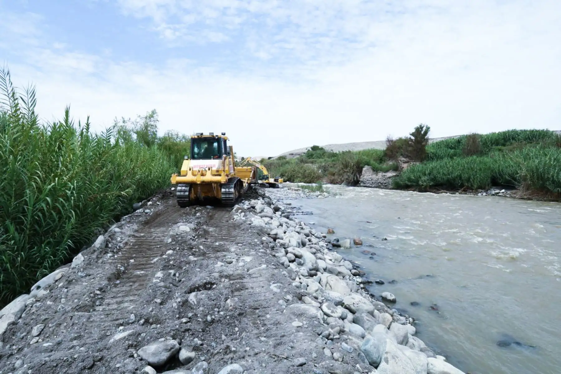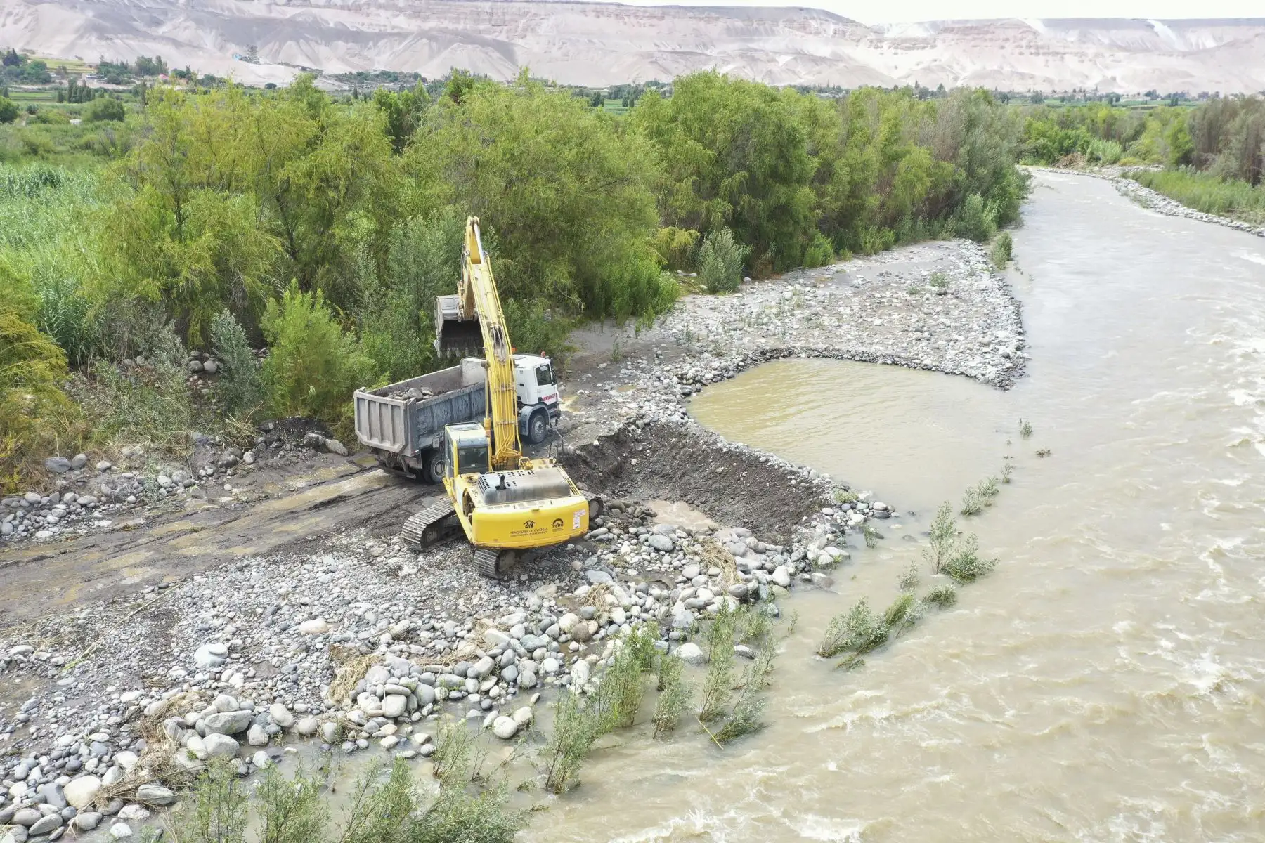 Trabajos de encauzamiento y reforzamiento de dique en la margen izquierda del río Vítor en Arequipa