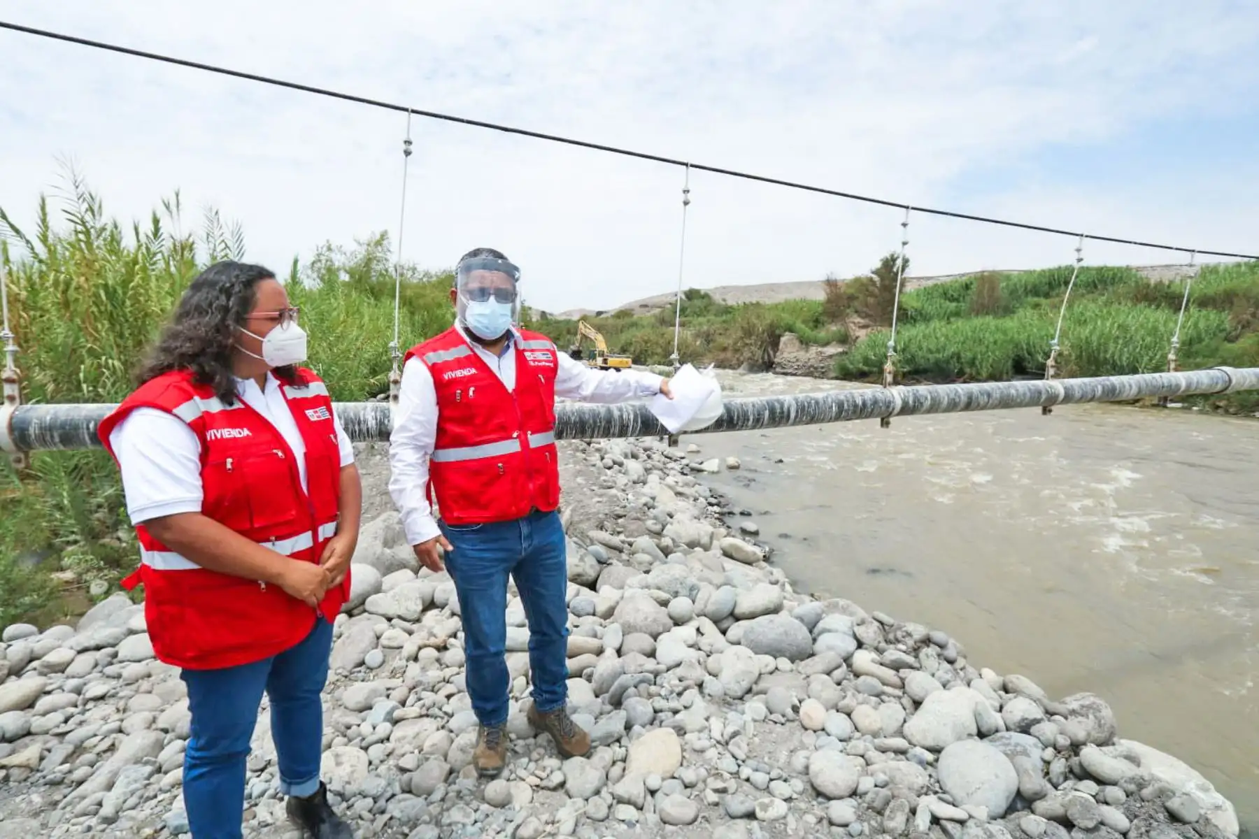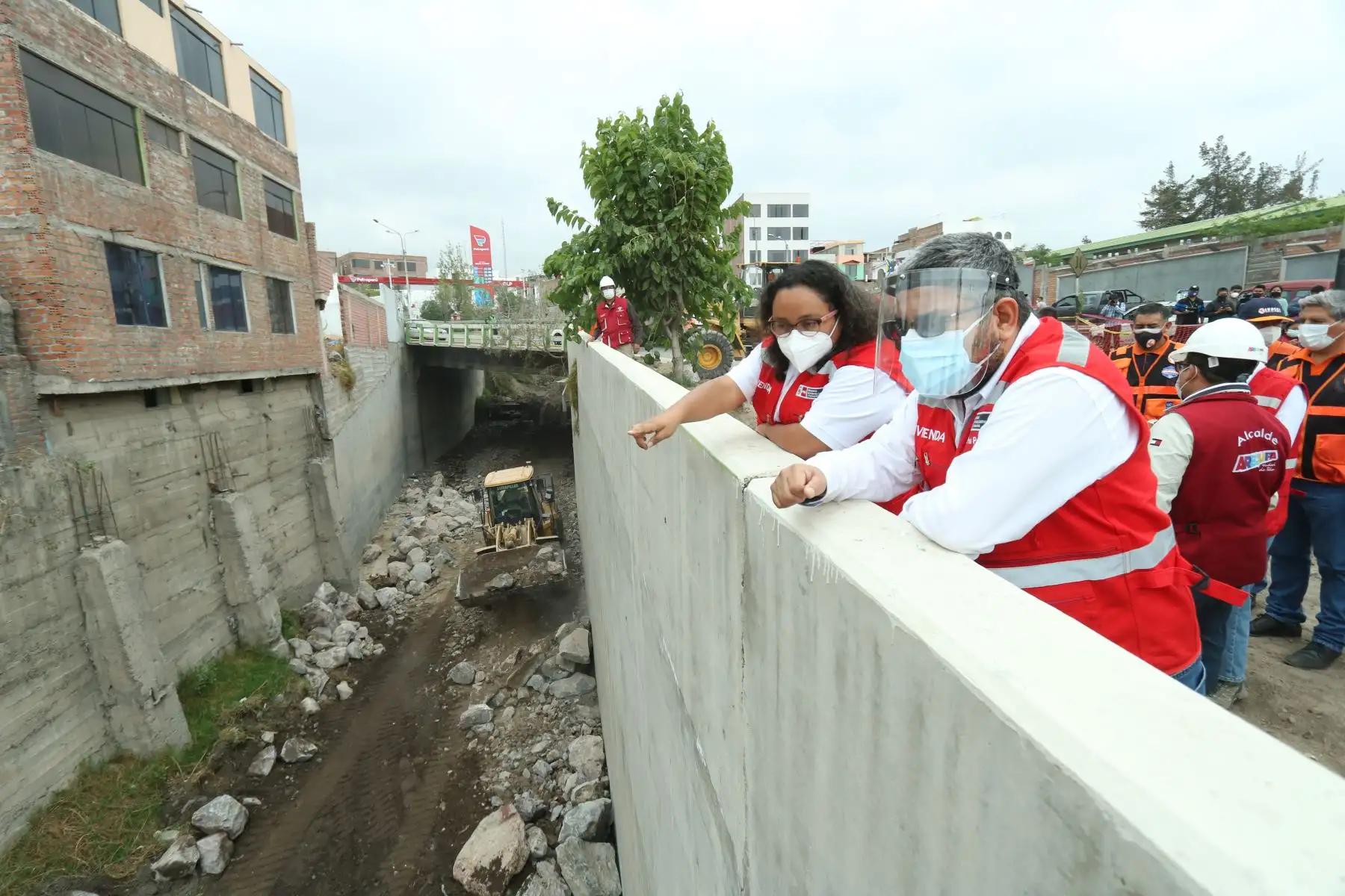 07/01/2021 La Ministra de Vivienda, Solangel Fernández, inspeccionó los trabajos de encauzamiento y reforzamiento de dique en la margen izquierda del río Vítor en Arequipa.