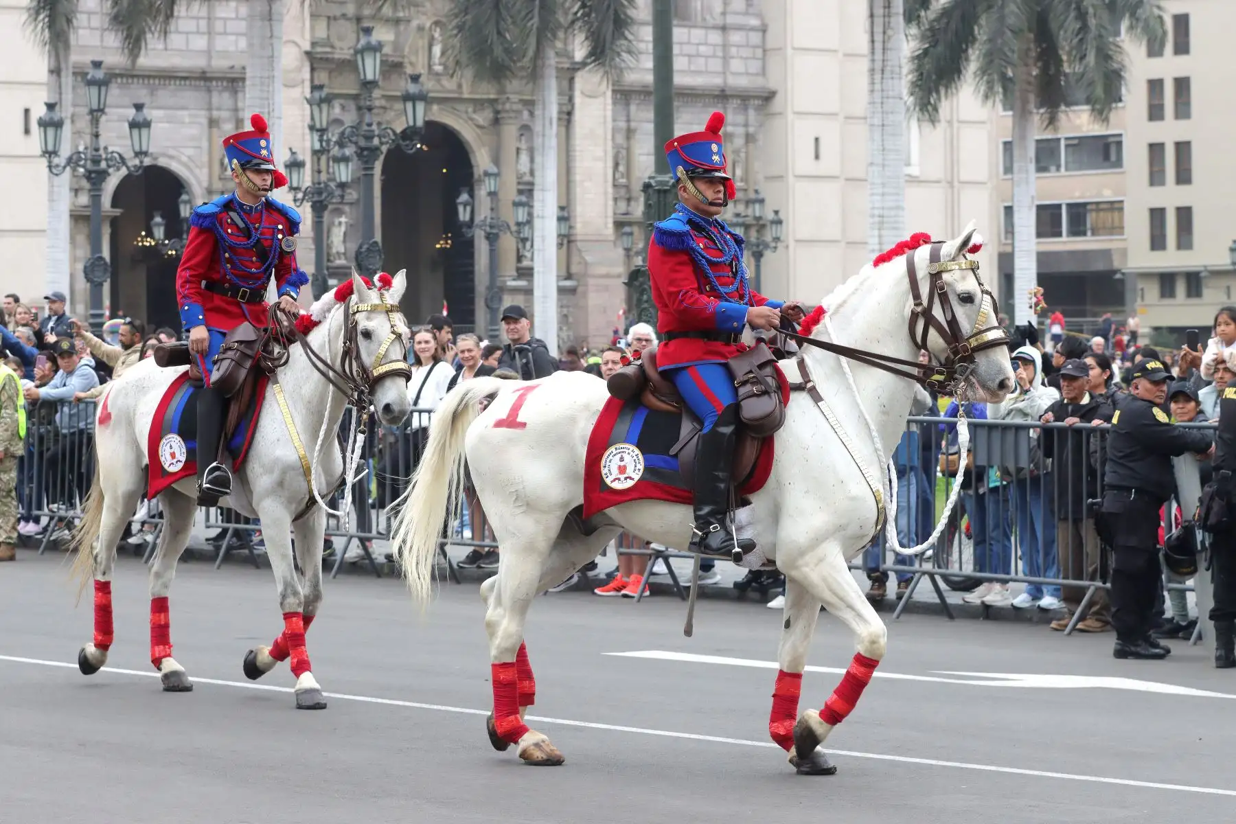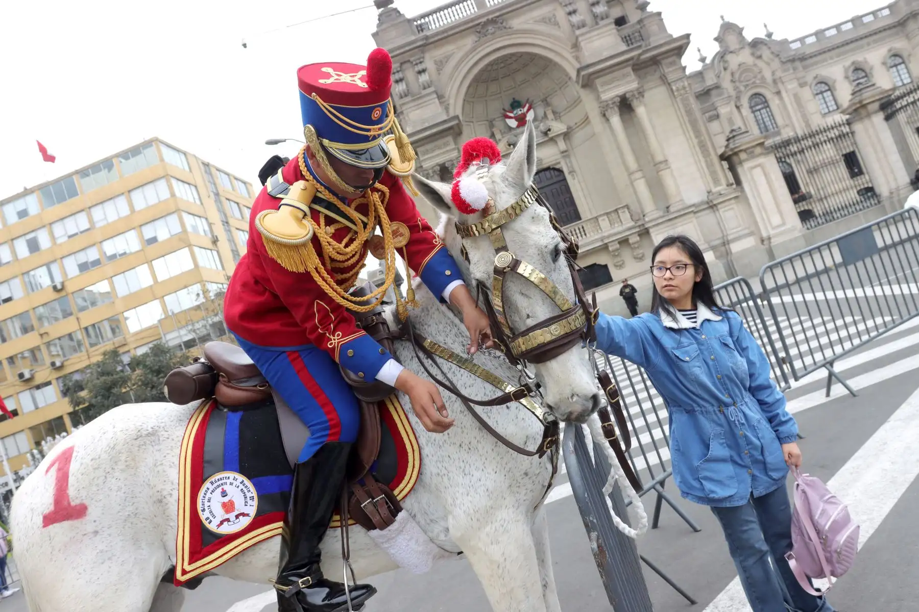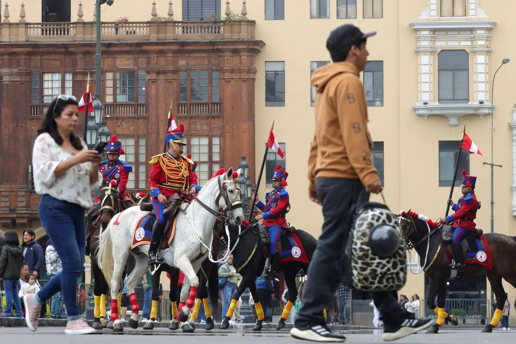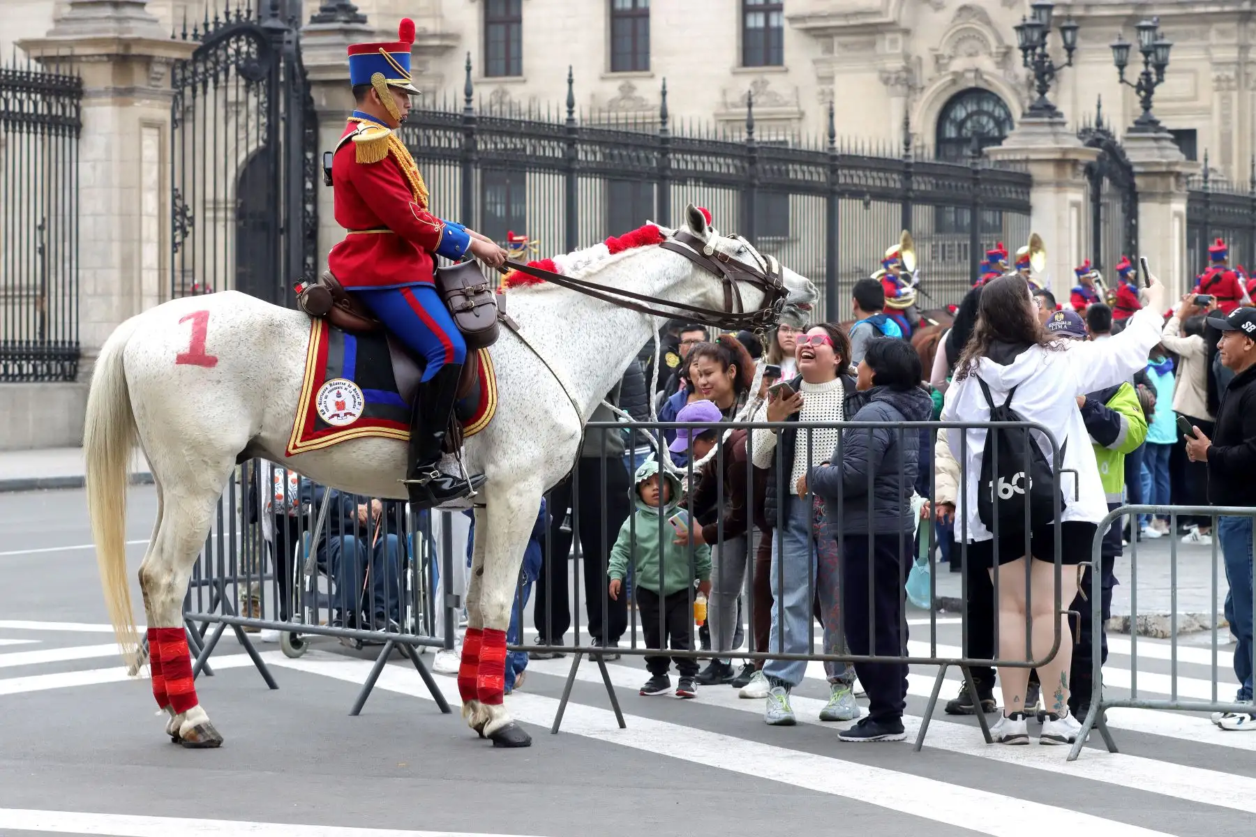 15/09/2024 Público presenció el tradicional Cambio de Guardia en la Plaza Mayor de Lima. Realizada por el Regimiento de Caballería Glorioso Húsares de Junín, número 1 Libertador del Perú, Escolta del Presidente de la República.