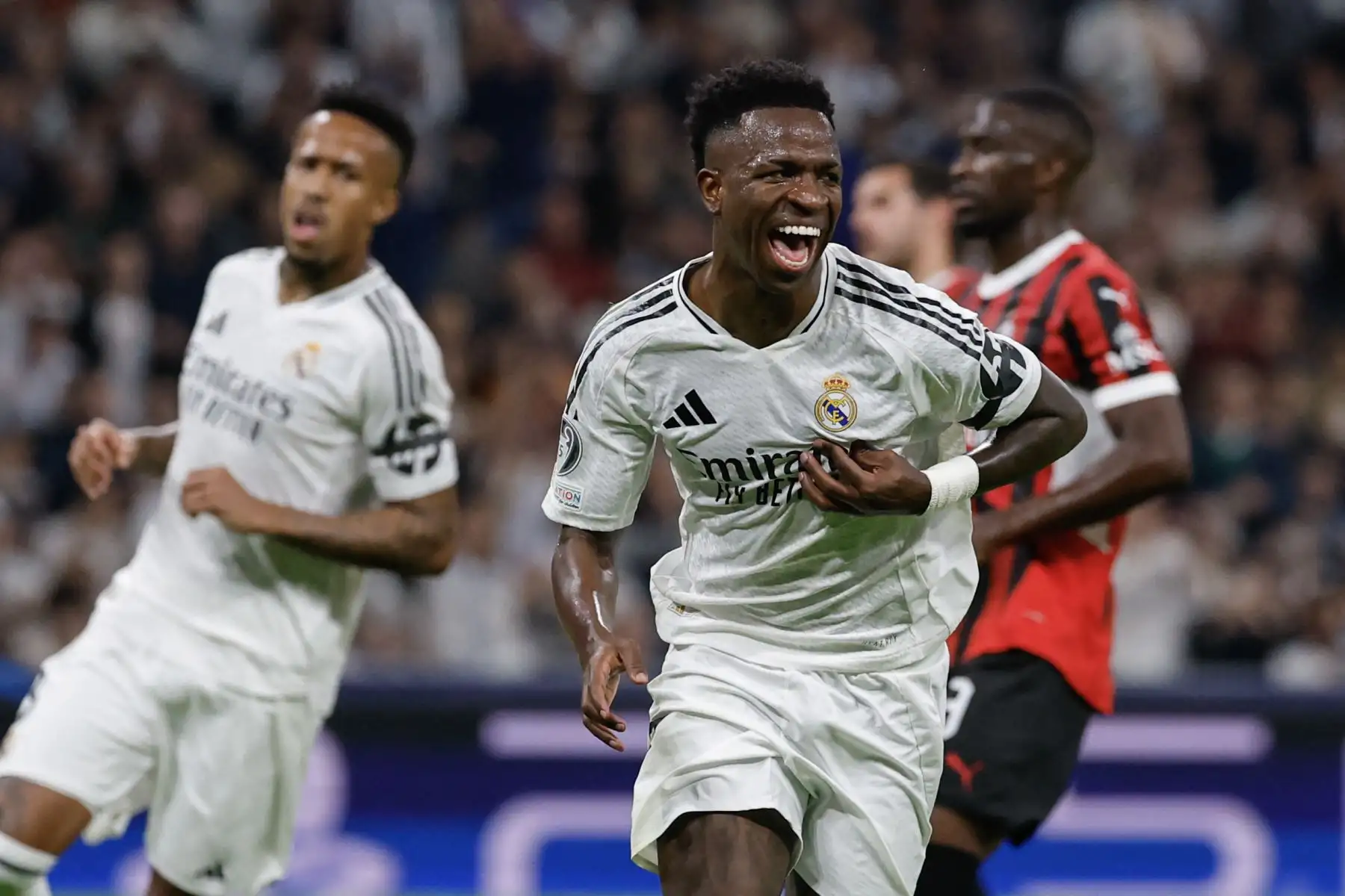 05/11/2024 El Real Madrid, vigente campeón de la Liga de Campeones, cayó el martes por 3-1 en casa ante el AC Milan en la fase de grupos, con el delantero Kylian Mbappé nuevamente sin poder encontrar el gol y con Vinicius Jr. que realiza su primer encuentro, luego del balón de Oro. Foto: AFP