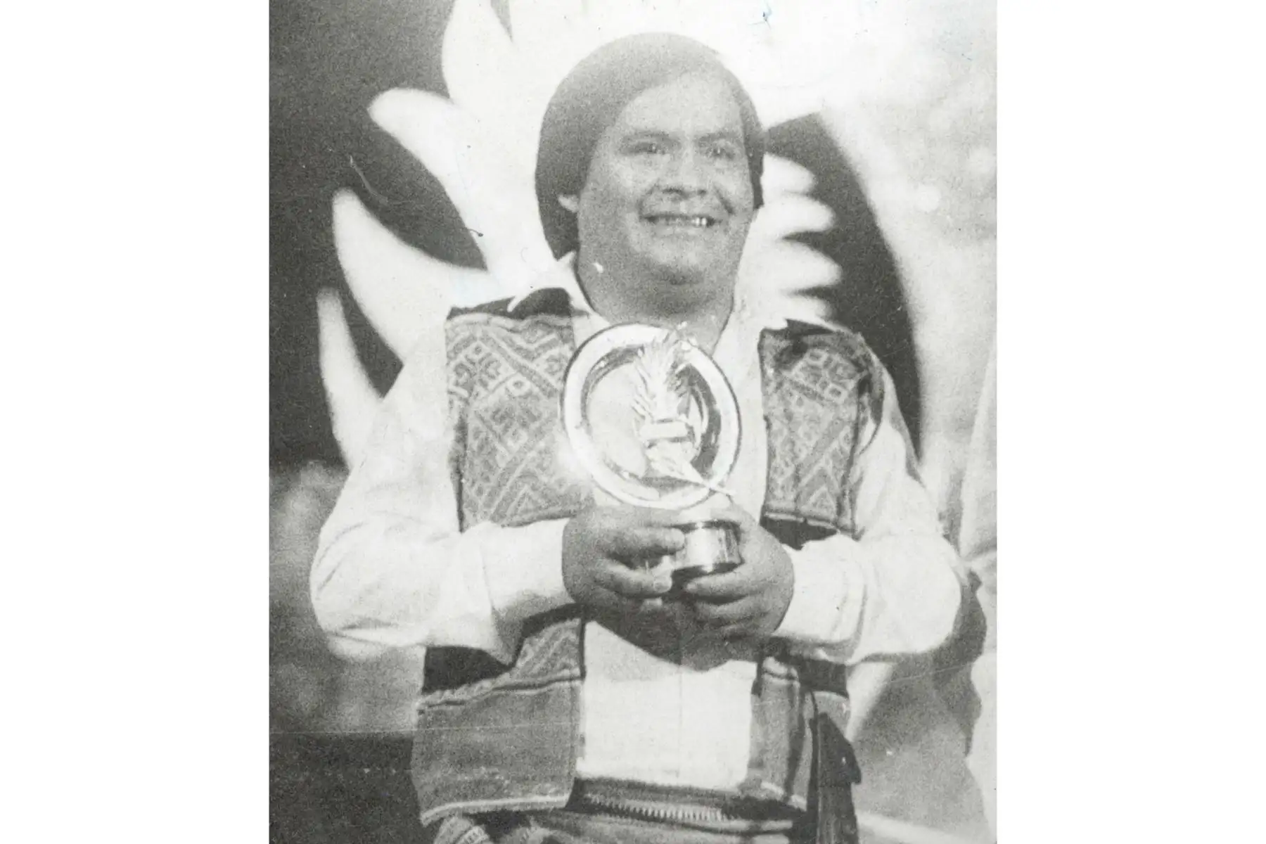 04/08/2025 Marzo 1986 Julio Edmundo Simeón Salguerán "Chapulin El Dulce" del grupo los Shapis recibe el premio Cirse a mejor grupo de cumbia andina. Foto: ANDINA/archivo