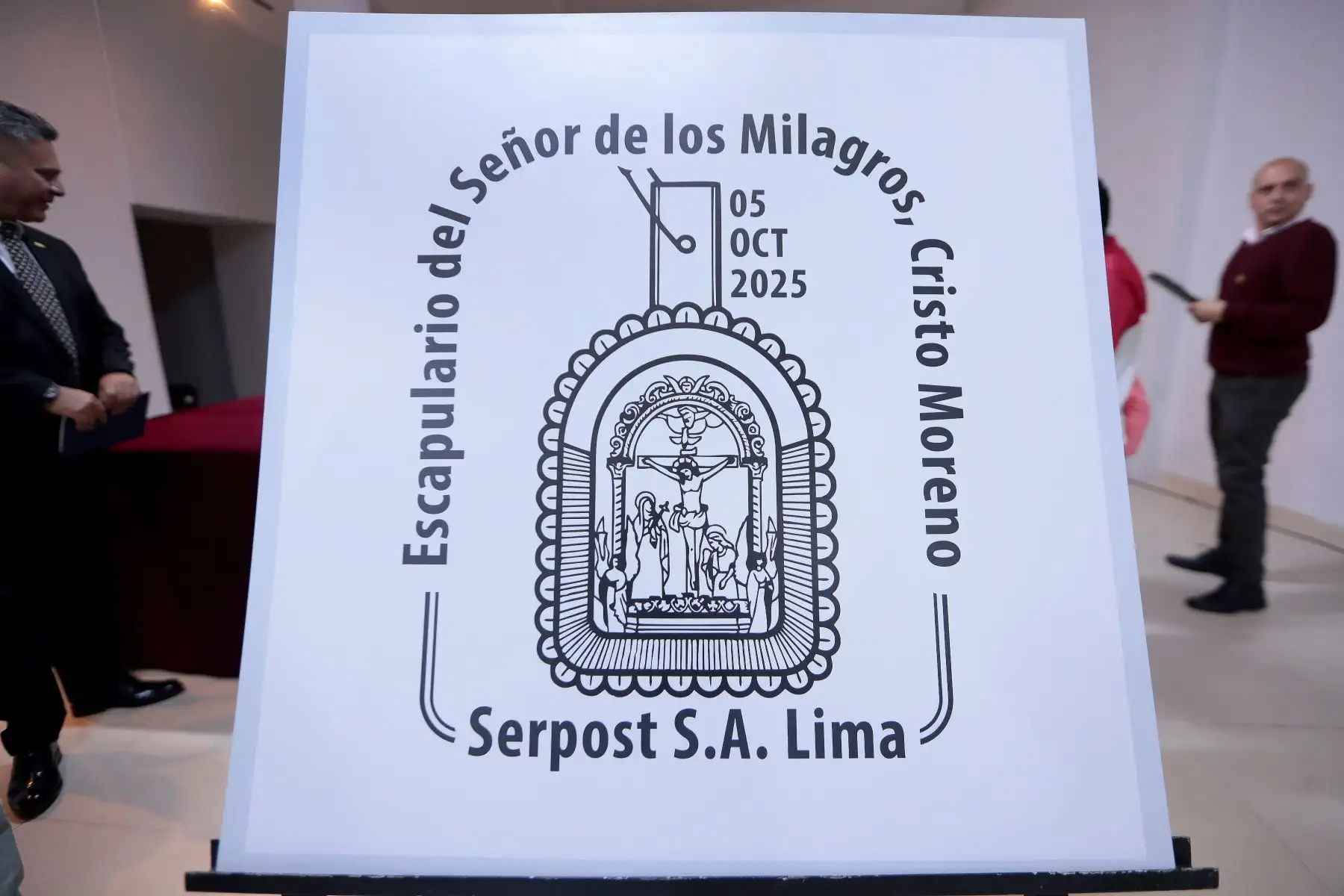 05/10/2025 Serpost rinde homenaje al Señor de los Milagros con un matasello conmemorativo que reproduce la imagen del escapulario, símbolo de fe, protección y devoción.