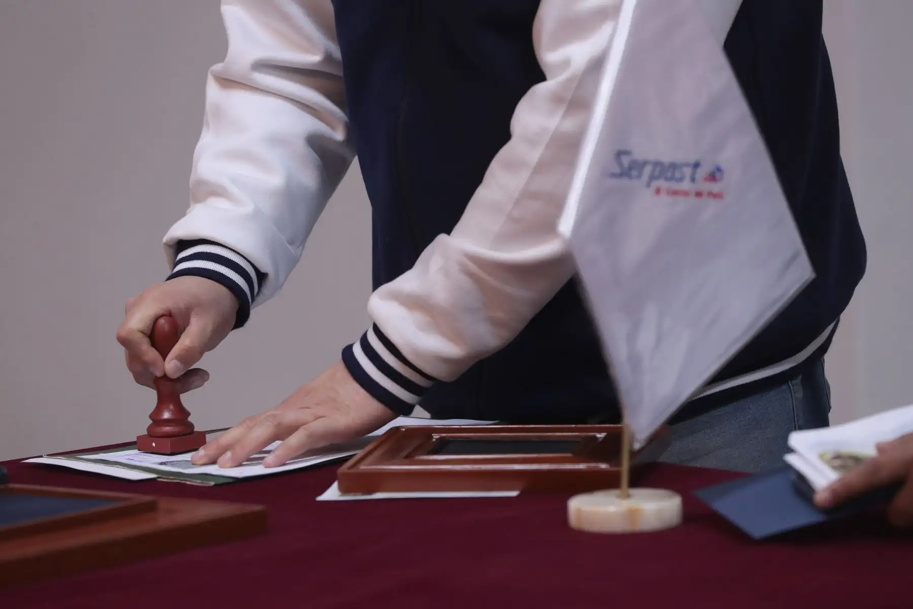 La ceremonia contó con Jorge Luis Taboada vicepresidente del Directorio de Serpost, Abraham Valencia presidente del Circulo de Amigos de la Filatelia, Patricia Champa Directora del Museo Postal y Filatélico.