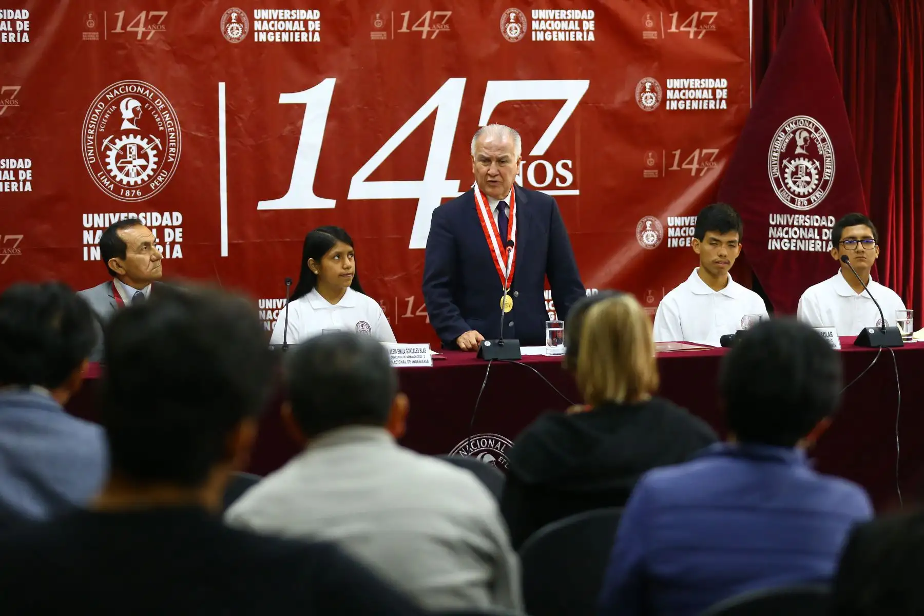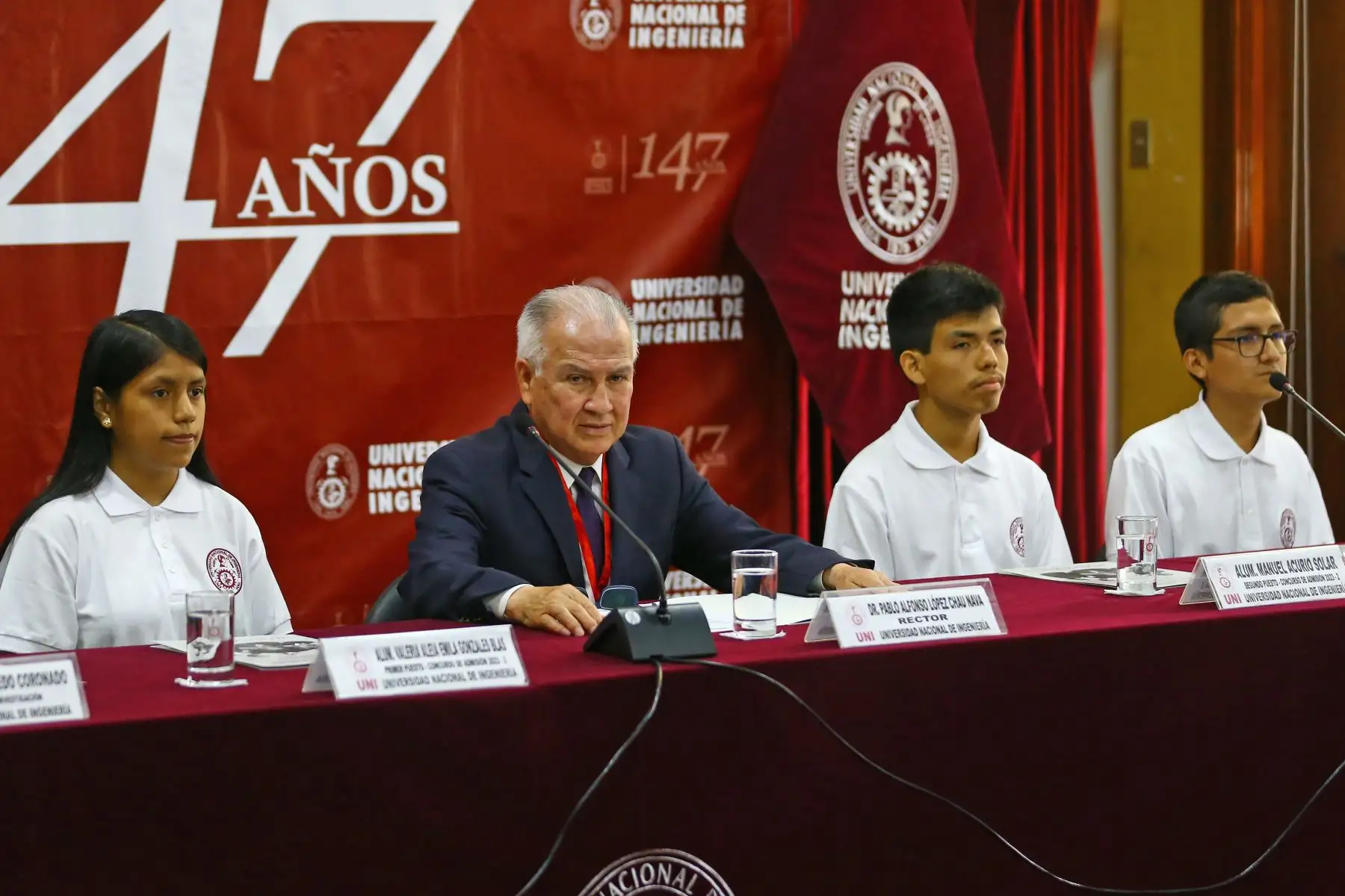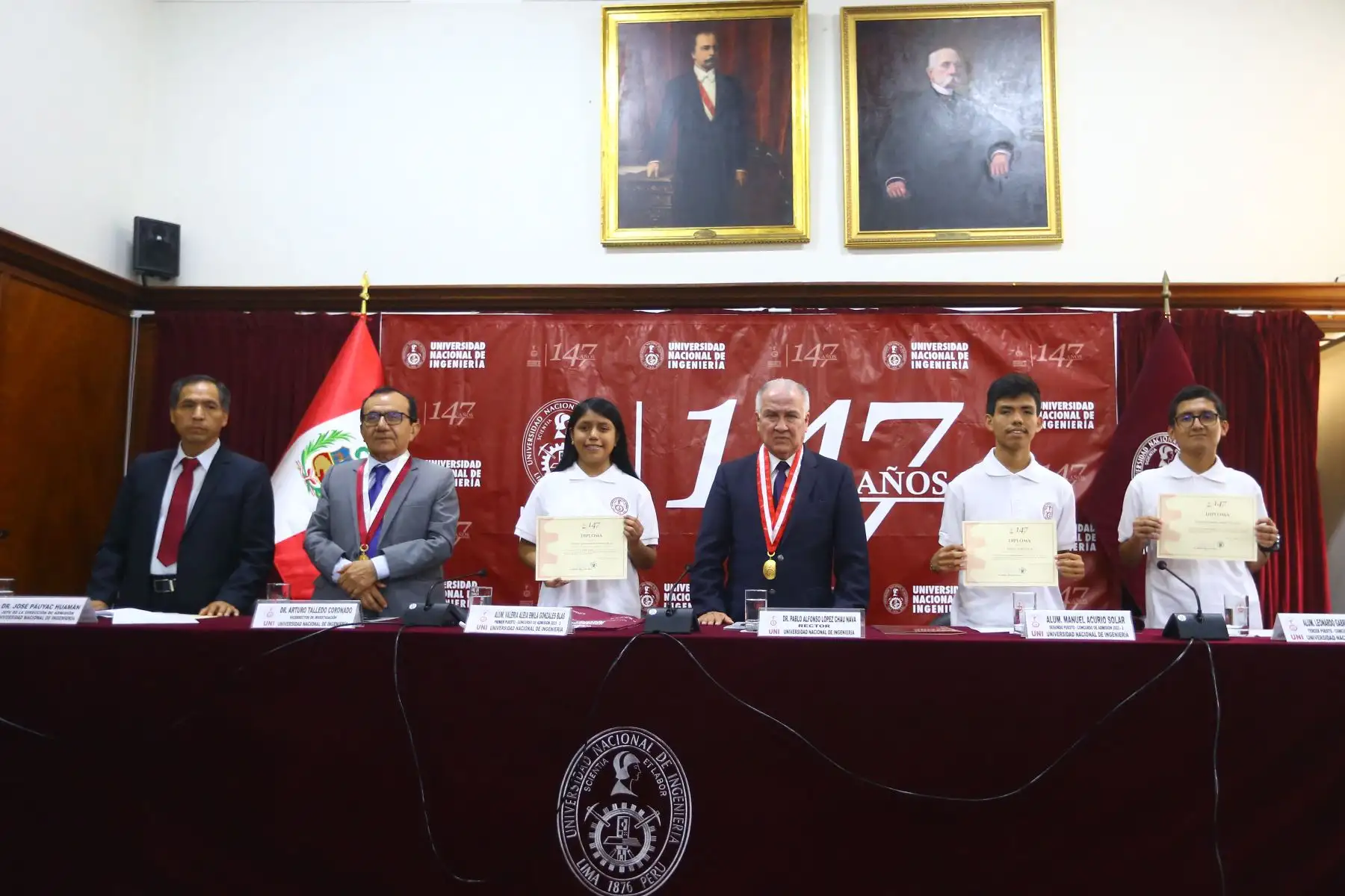 22/08/2023 Rector de la Universidad Nacional de Ingeniería, Dr. Alfonso López Chau , premia a los primeros puestos del ultimo examen 2023-II de admisión realizado por la UNI.