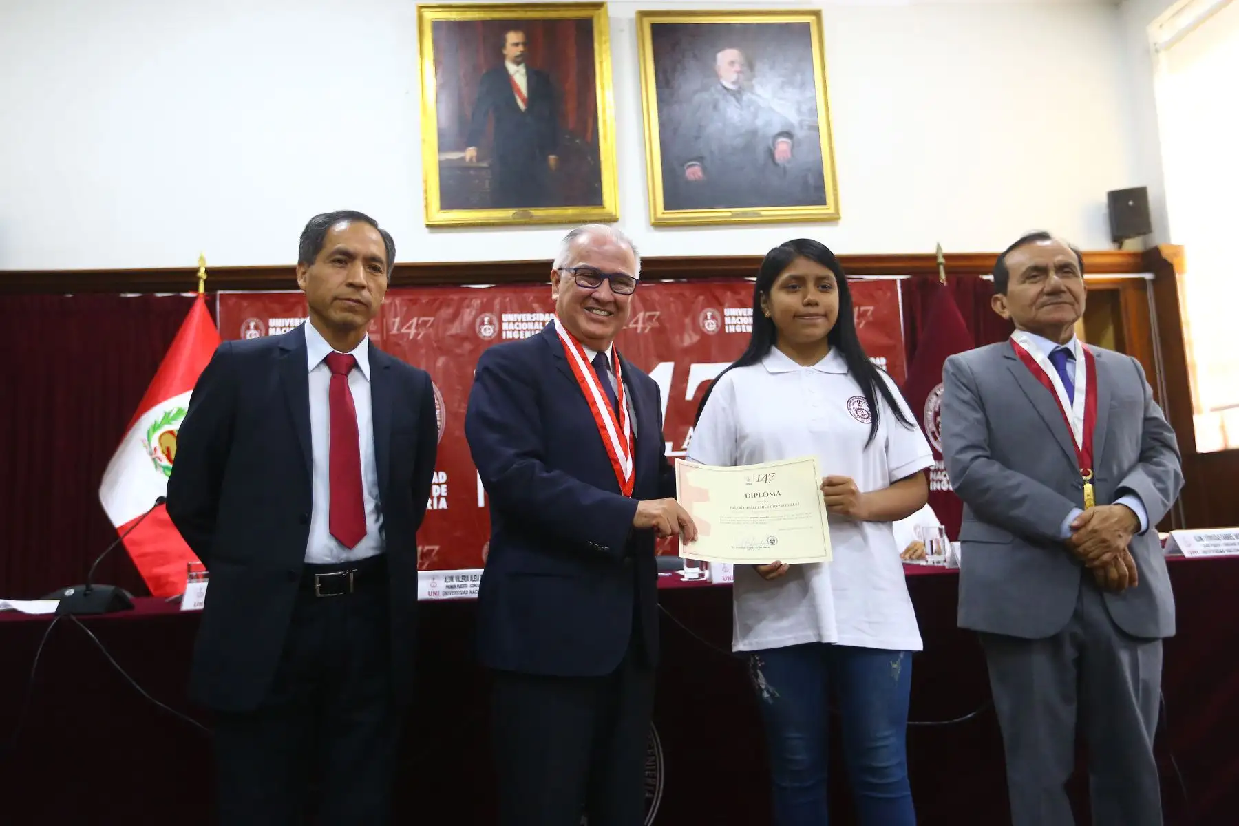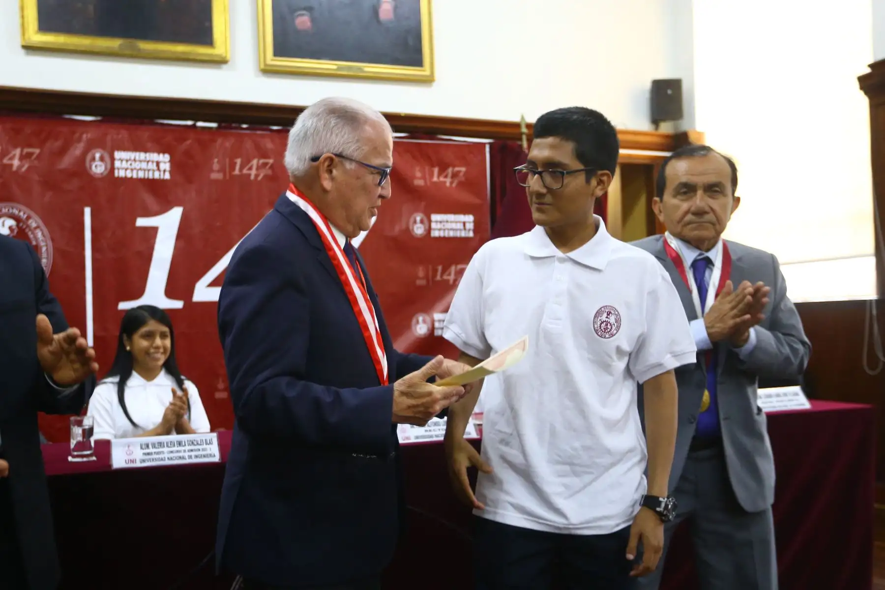 22/08/2023 Rector de la Universidad Nacional de Ingeniería, Dr. Alfonso López Chau , premia a la joven Valeria Aleia Emila Gonzáles Blas, quien logró un puntaje de 18.735. Ella estudiará la carrera de ingeniería mecatrónica.