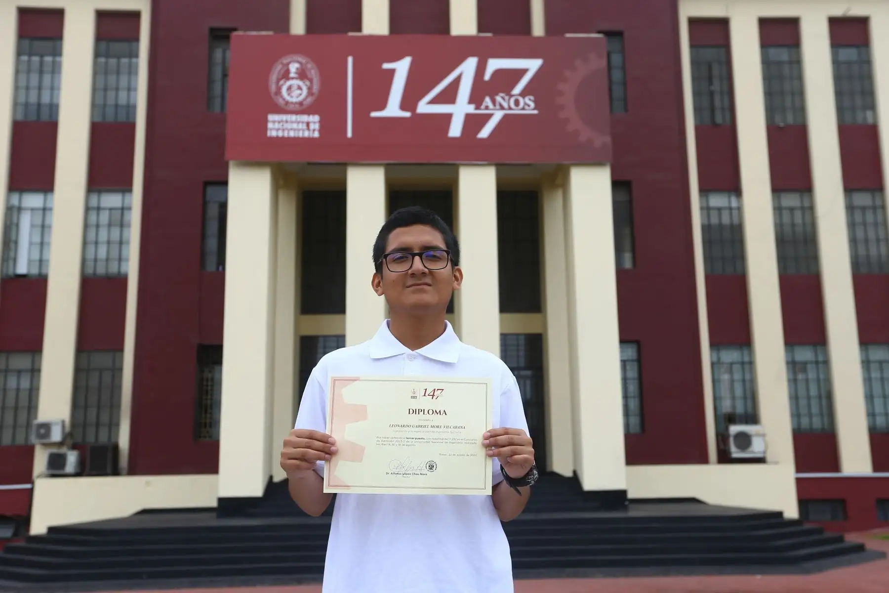 22/08/2023 El joven que ocupó el disputado tercer puesto es Leonardo Gabriel More Vilcabana, quien estudiará ingeniería química, Alcanzó un puntaje de 17.292.