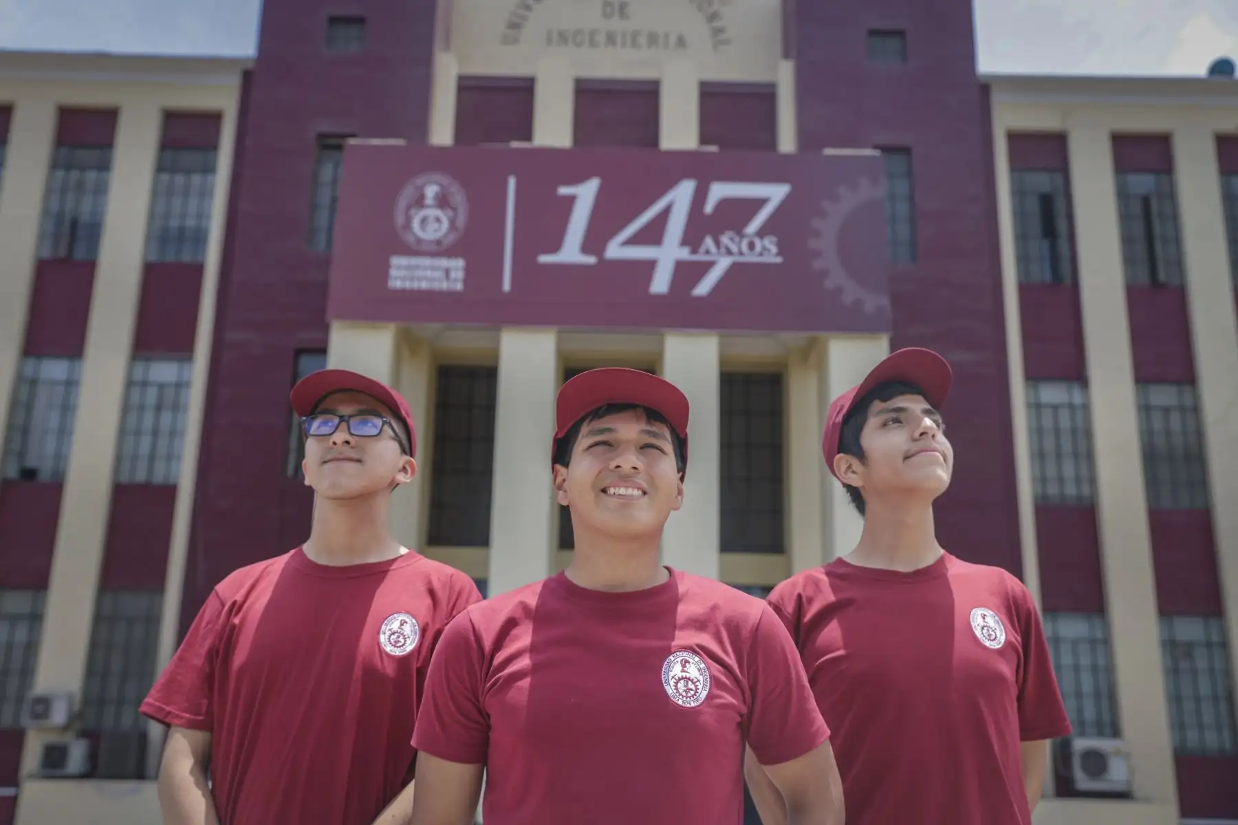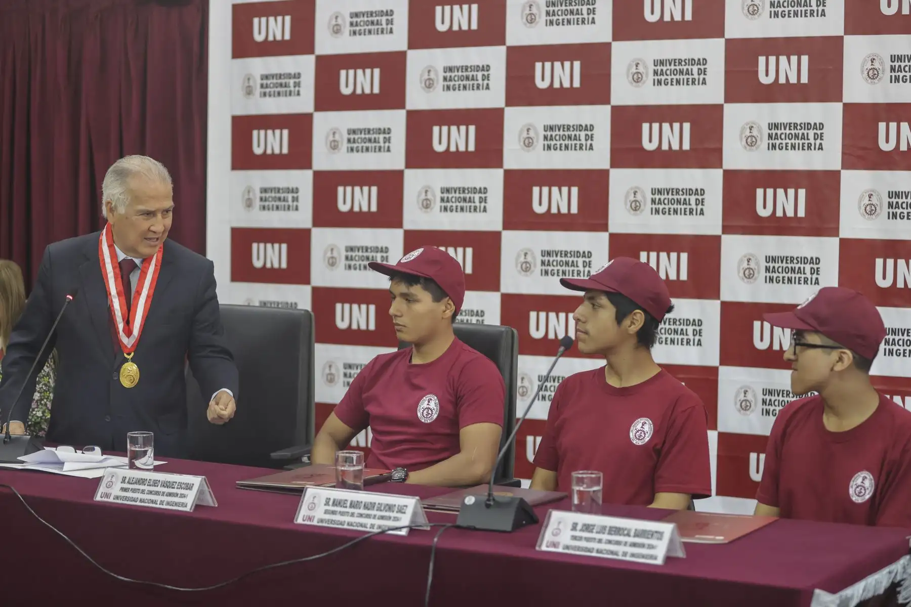 21/02/2024 La Universidad Nacional de Ingeniería presentó a los jóvenes estudiantes que obtuvieron los primeros puestos del concurso de admisión 2024-I. El primer puesto es Alejando Vásquez de 17 años en la carrera de Ingeniería Civil, el segundo lugar es Mario Gilvonio de 17 años en la carrera de Ingeniería Física y el tercero, Jorge Berrocal de 18 en la carrera de Ingeniería de Ciberseguridad, quienes están muy agradecidos con sus padres por ser los principales impulsores de su triunfo.