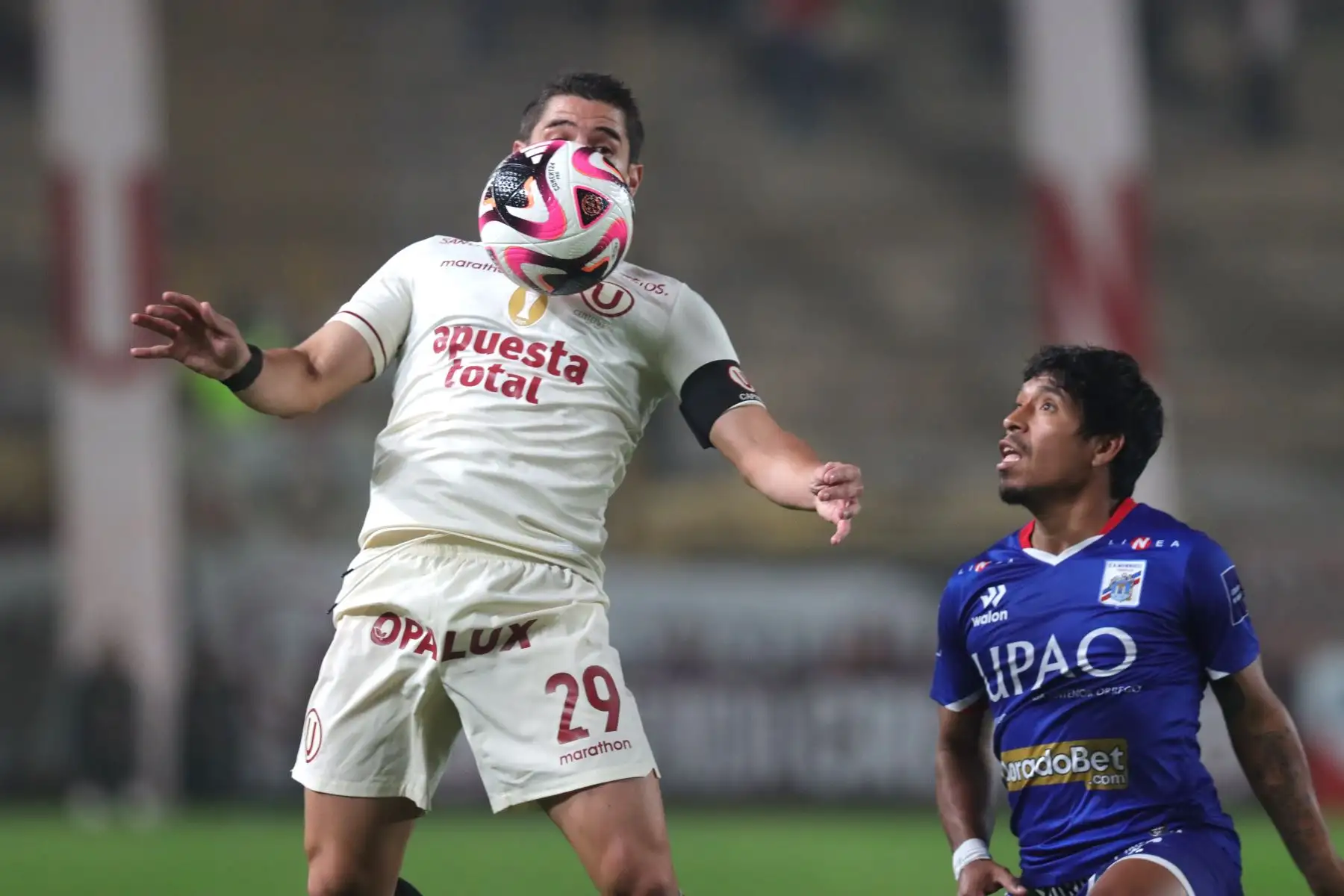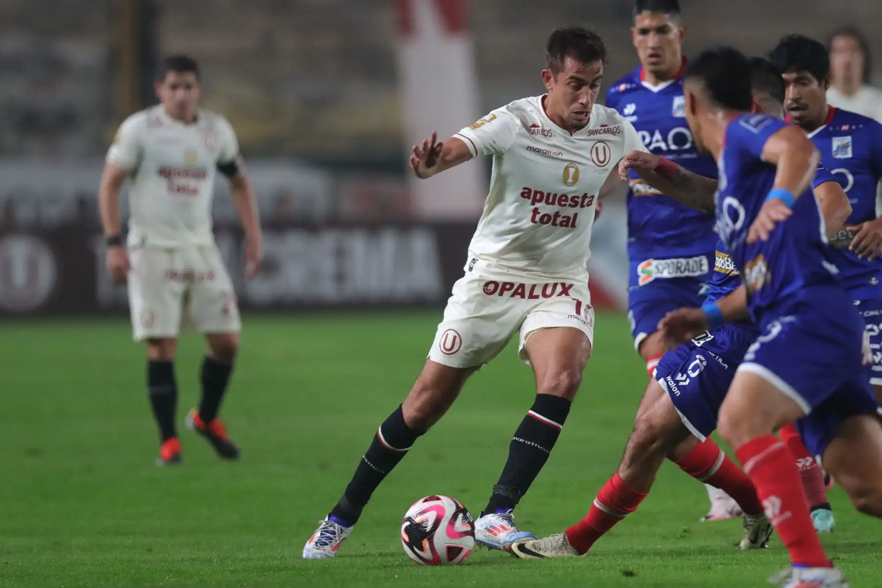14/07/2024 Universitario de Deportes juega ante Mannucci durante el primer partido del Torneo Clausura 2024 en el Estadio Monumental. En la imagen el jugador de Universitario, Martín Perez Guedes.