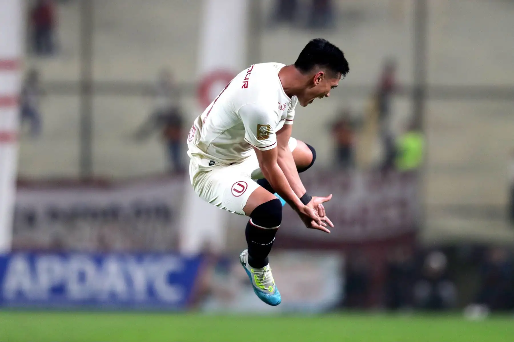 14/07/2024 Universitario de Deportes juega ante Mannucci durante el primer partido del Torneo Clausura 2024 en el Estadio Monumental. En la imagen, el jugador de Universitario, Alex Valera, celebra su gol.